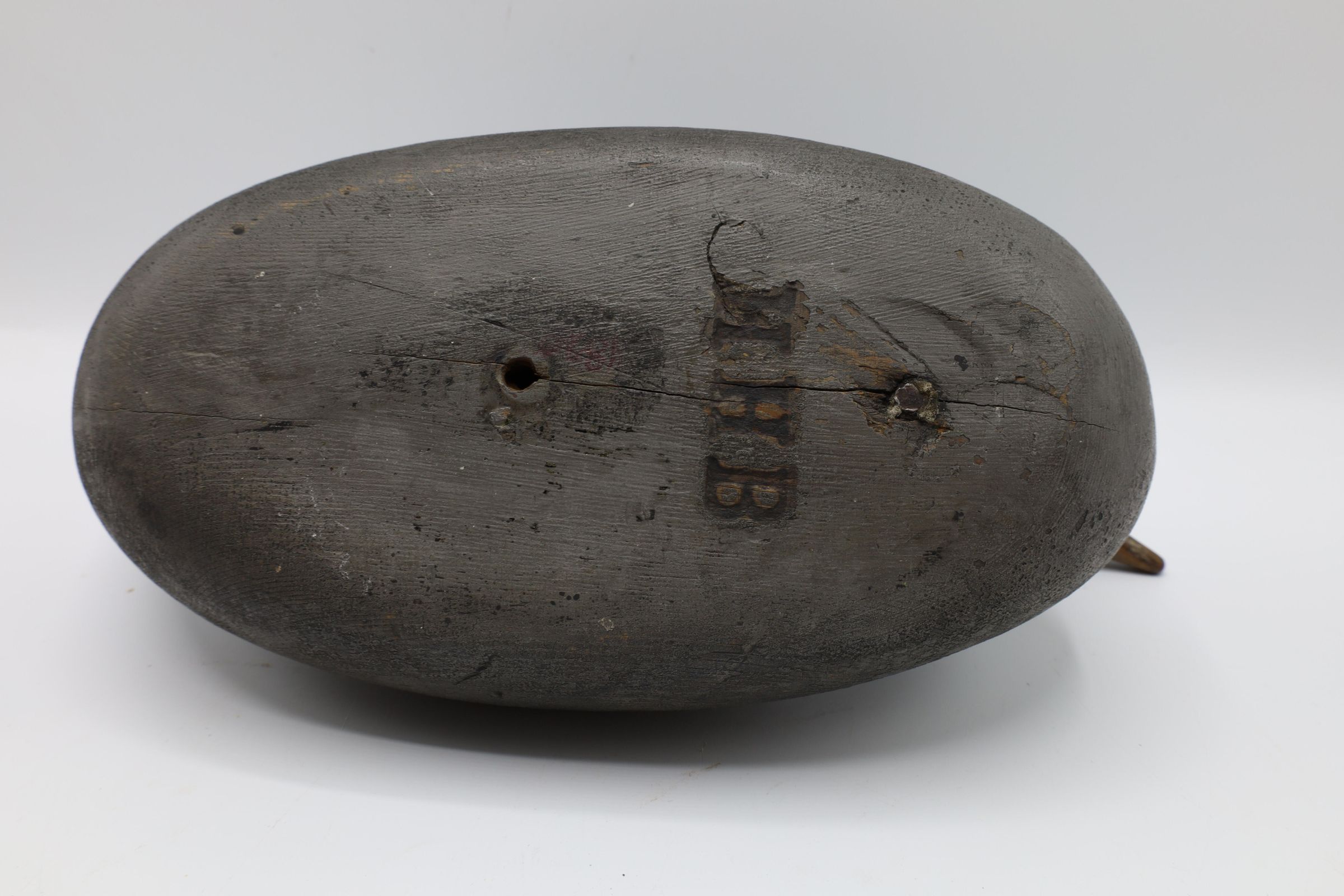 One of three major decoy manufacturers in Detroit, Michigan, the Mason Decoy Factory began as a simple operation in William Mason's shed but grew quickly. In operation from 1888-1894 and 1903-1924, Mason decoys can still be found in use today and are highly collectible. This example from the twentieth century is a coot repainted as a gallinule. The decoy includes a stamp of the initials HHB on the bottom.Use