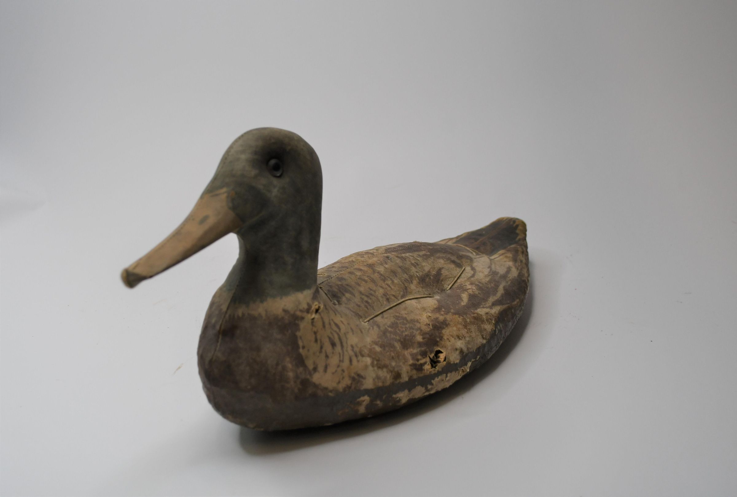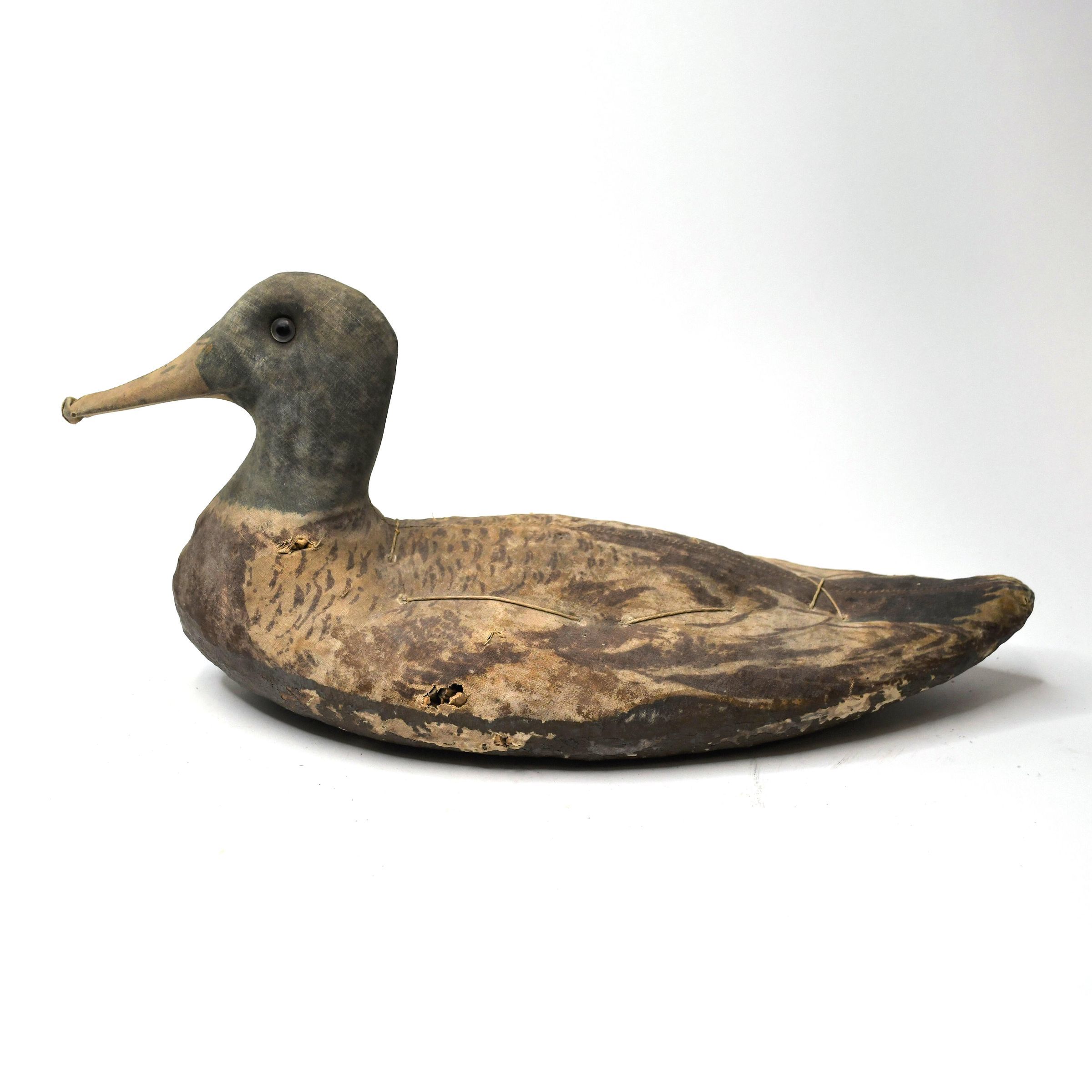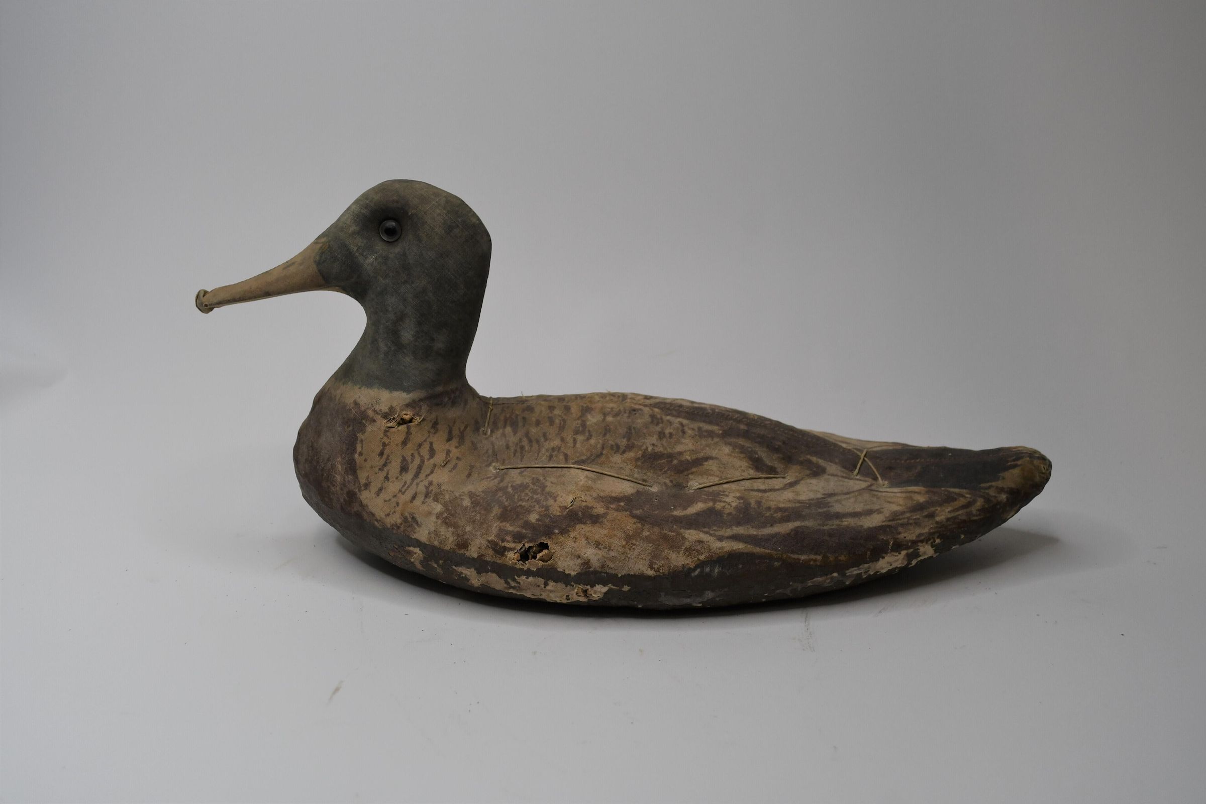 Used in Muddy Creek Bay in the early 1930s, this Mallard drake is made of canvas over straw. Despite its age, the details of feathers in the painting job are still visible. It is thought to have been made by Armstrong Decoys, which was active through 1945.Location