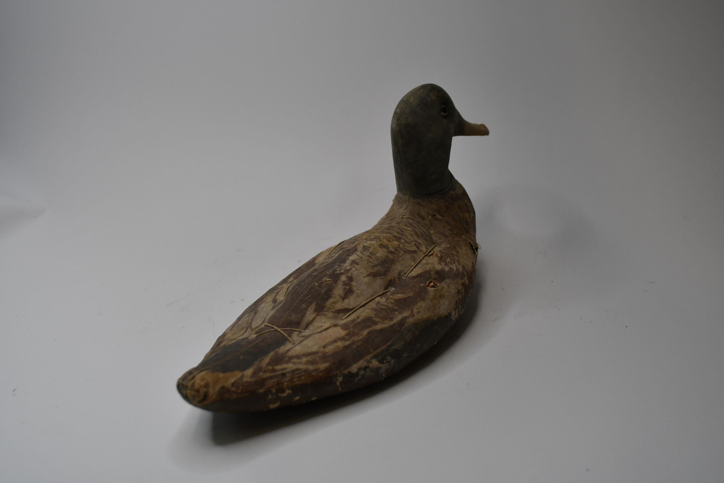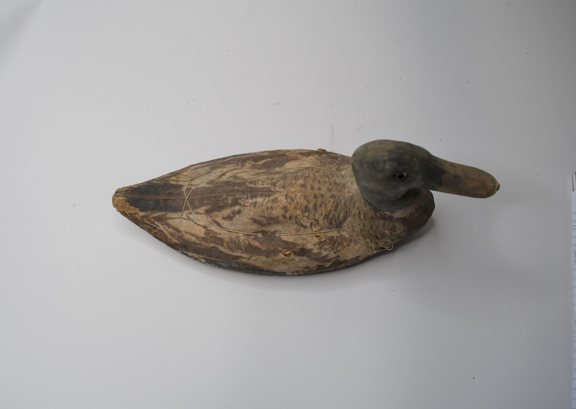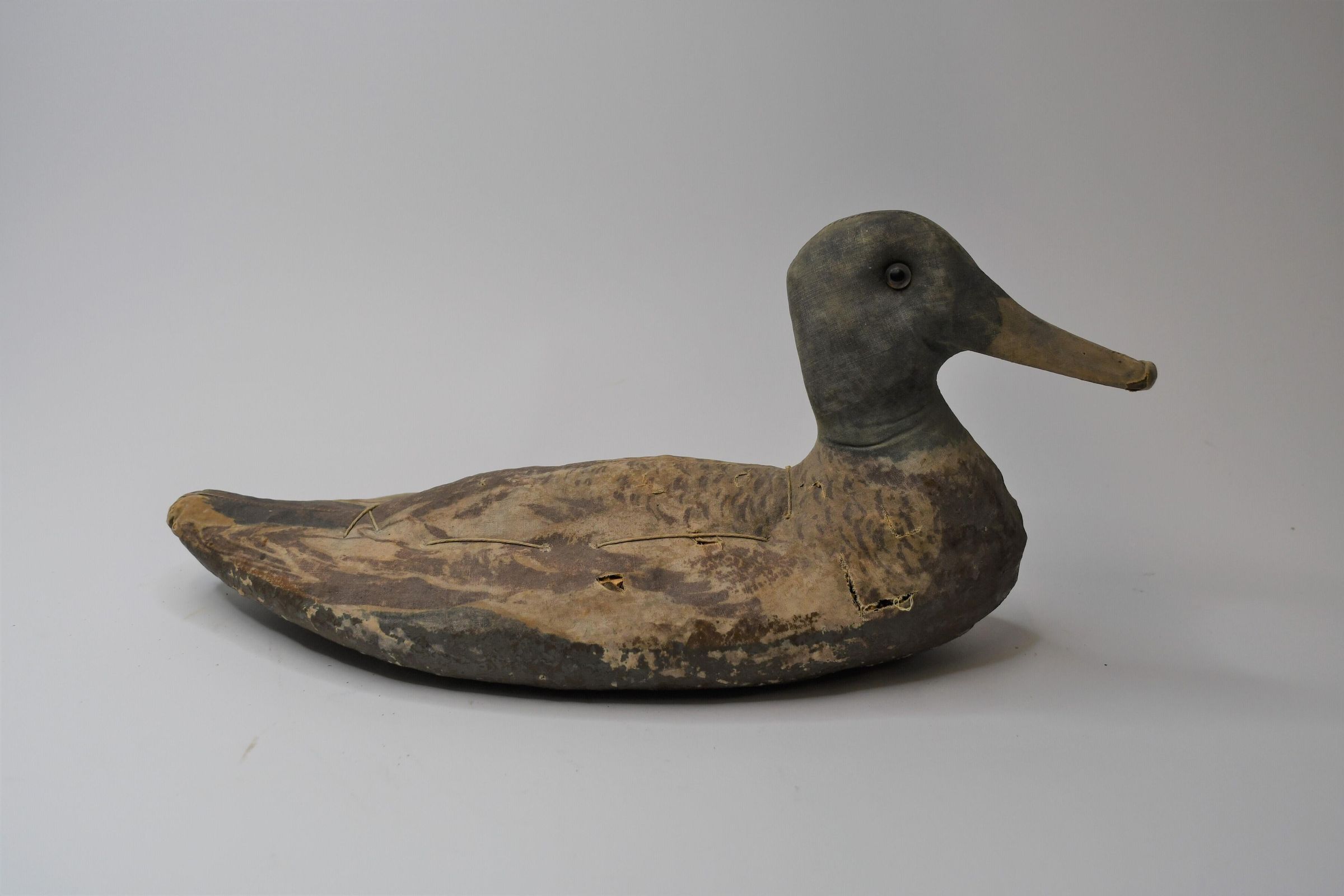 Used in Muddy Creek Bay in the early 1930s, this Mallard drake is made of canvas over straw. Despite its age, the details of feathers in the painting job are still visible. It is thought to have been made by Armstrong Decoys, which was active through 1945.Location