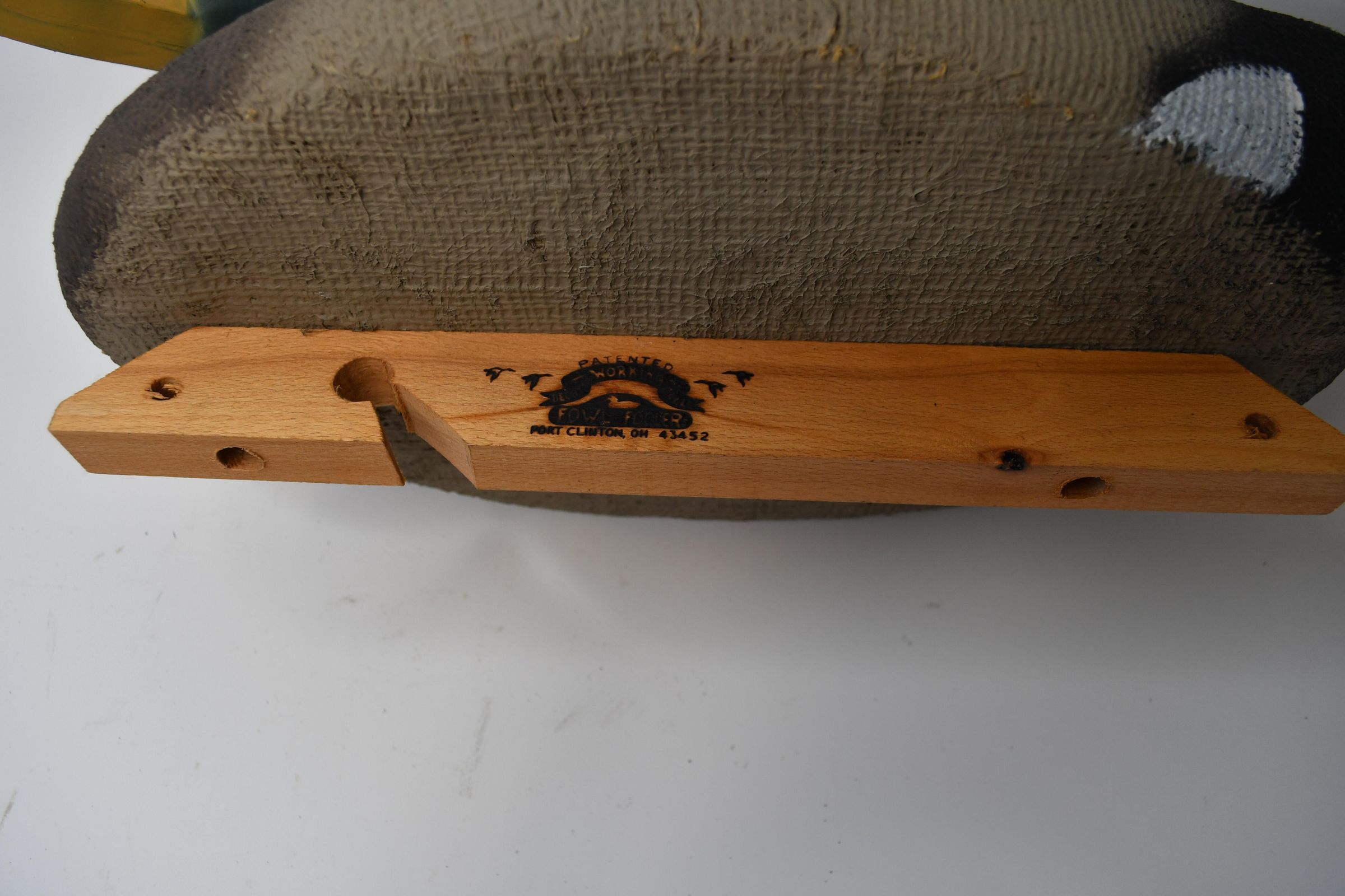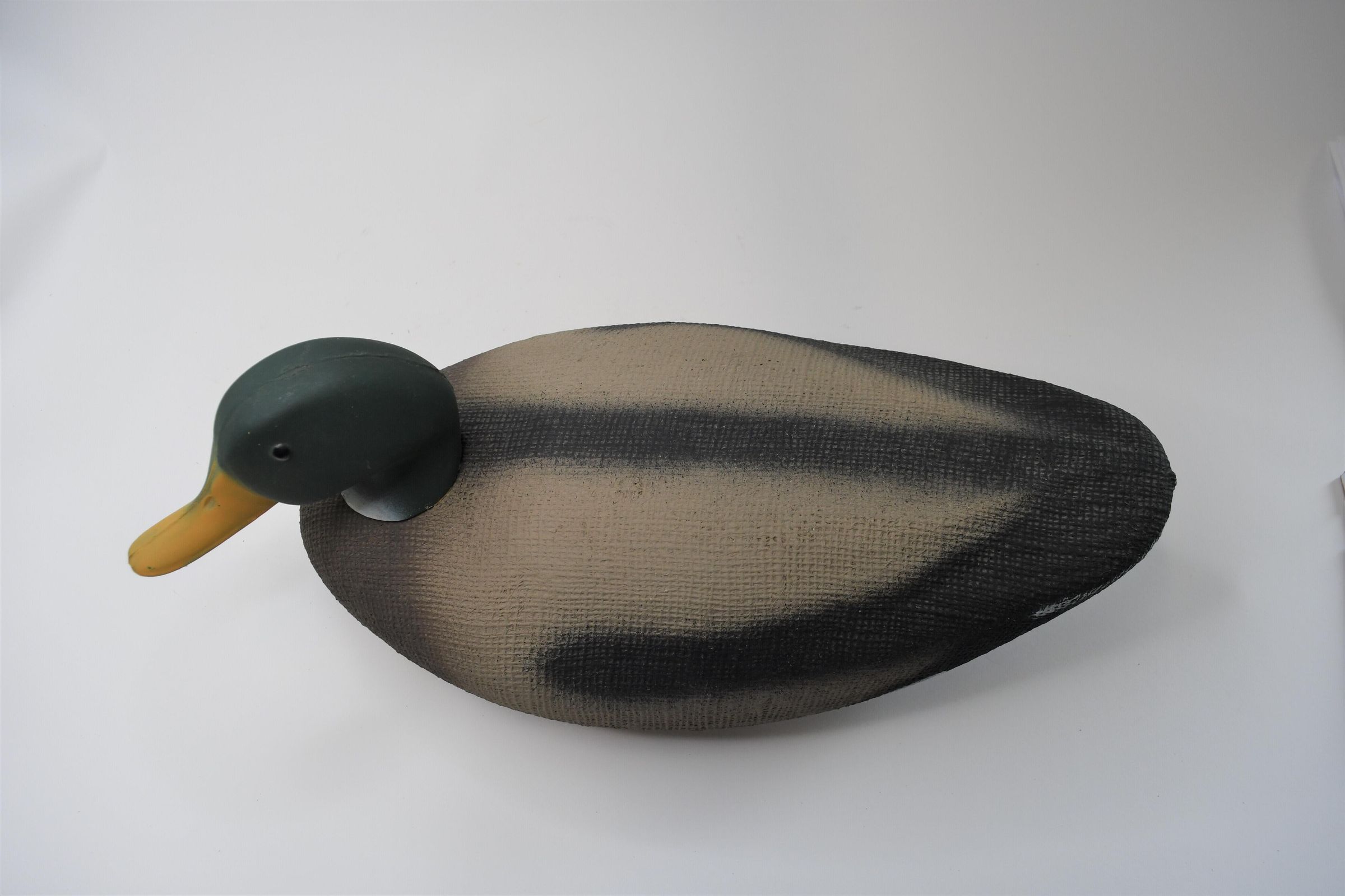 Made by Fowl Foolers of Port Clinton, Ohio, this Mallard drake is oversized styrene with a stylized paint job. Bigger decoys are used because they are more noticeable to flocks of ducks passing at higher altitudes.Location