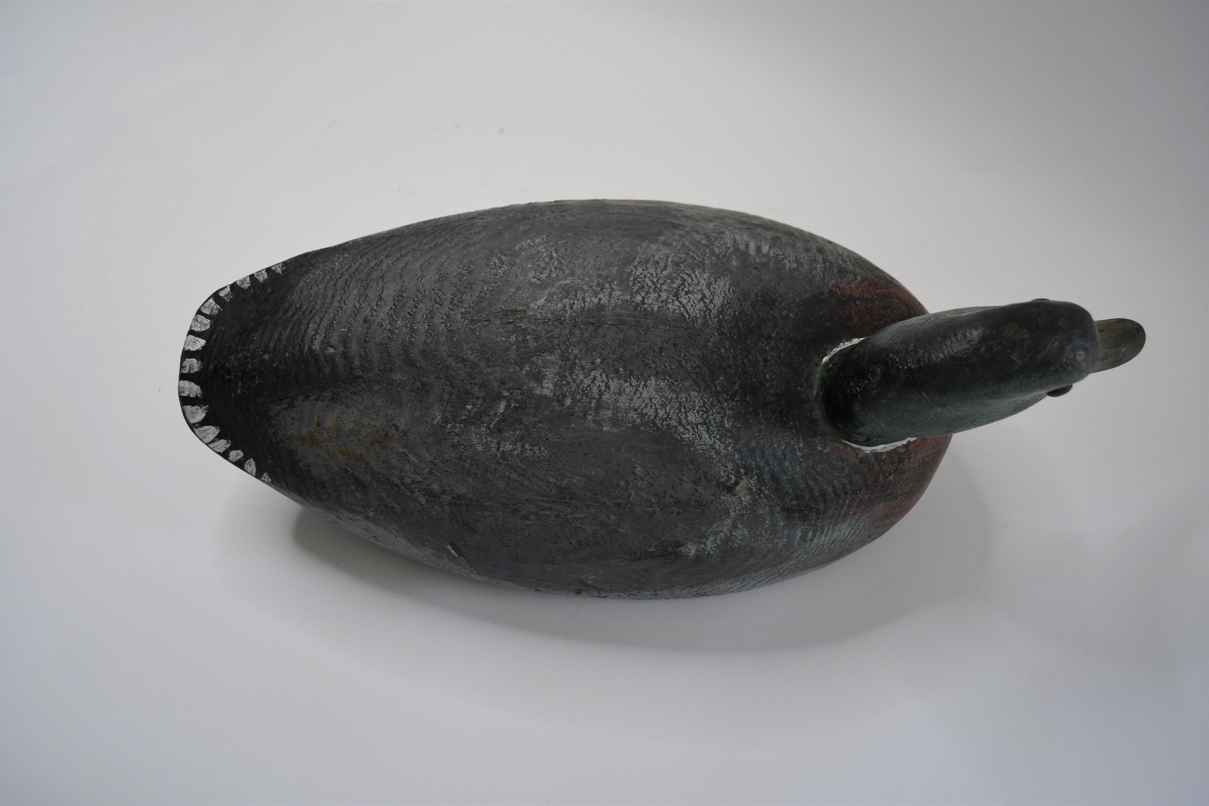 Harold Hopfinger of Port Clinton, Ohio carved this cedar decoy circa 1940. The wood grain shows through the paint in a feather-like pattern. The paint job also clearly identifies this as a Mallard drake, one of the most populous ducks in North America.Location