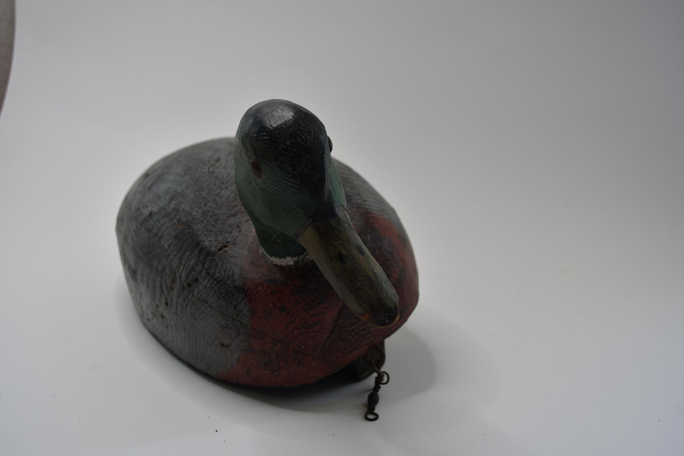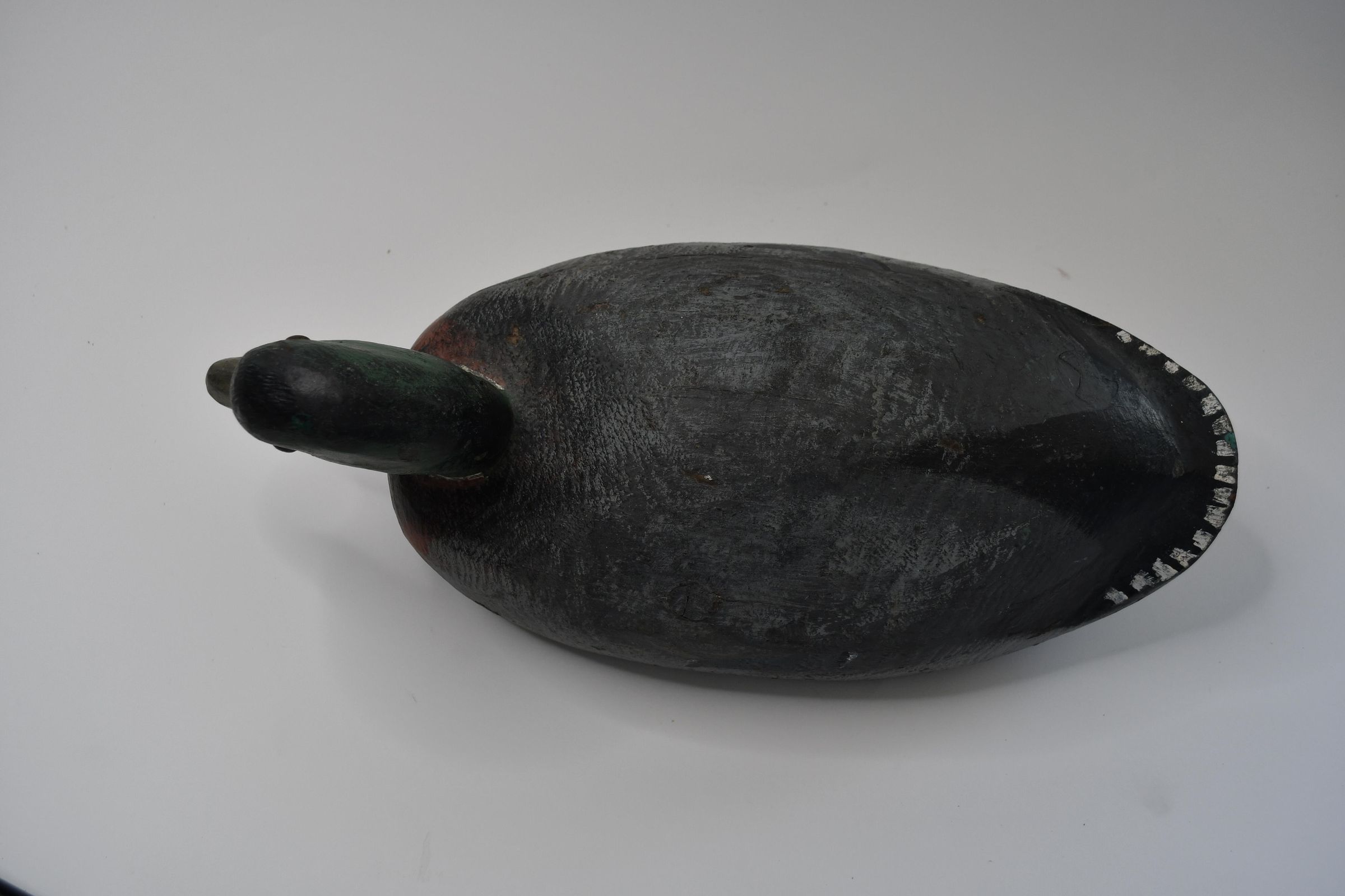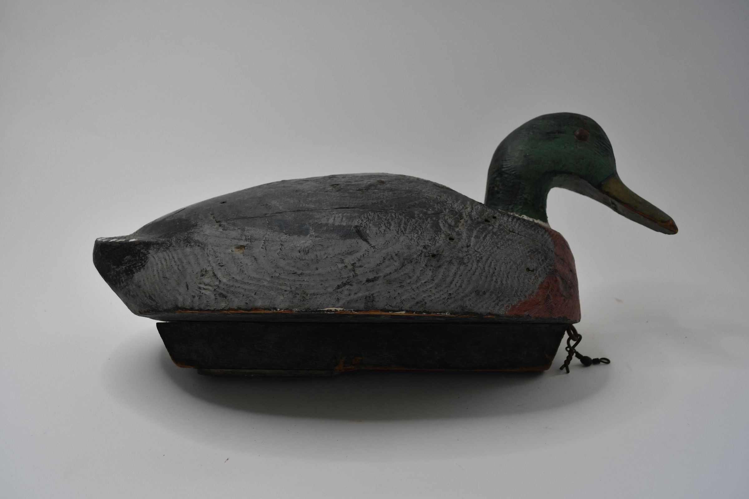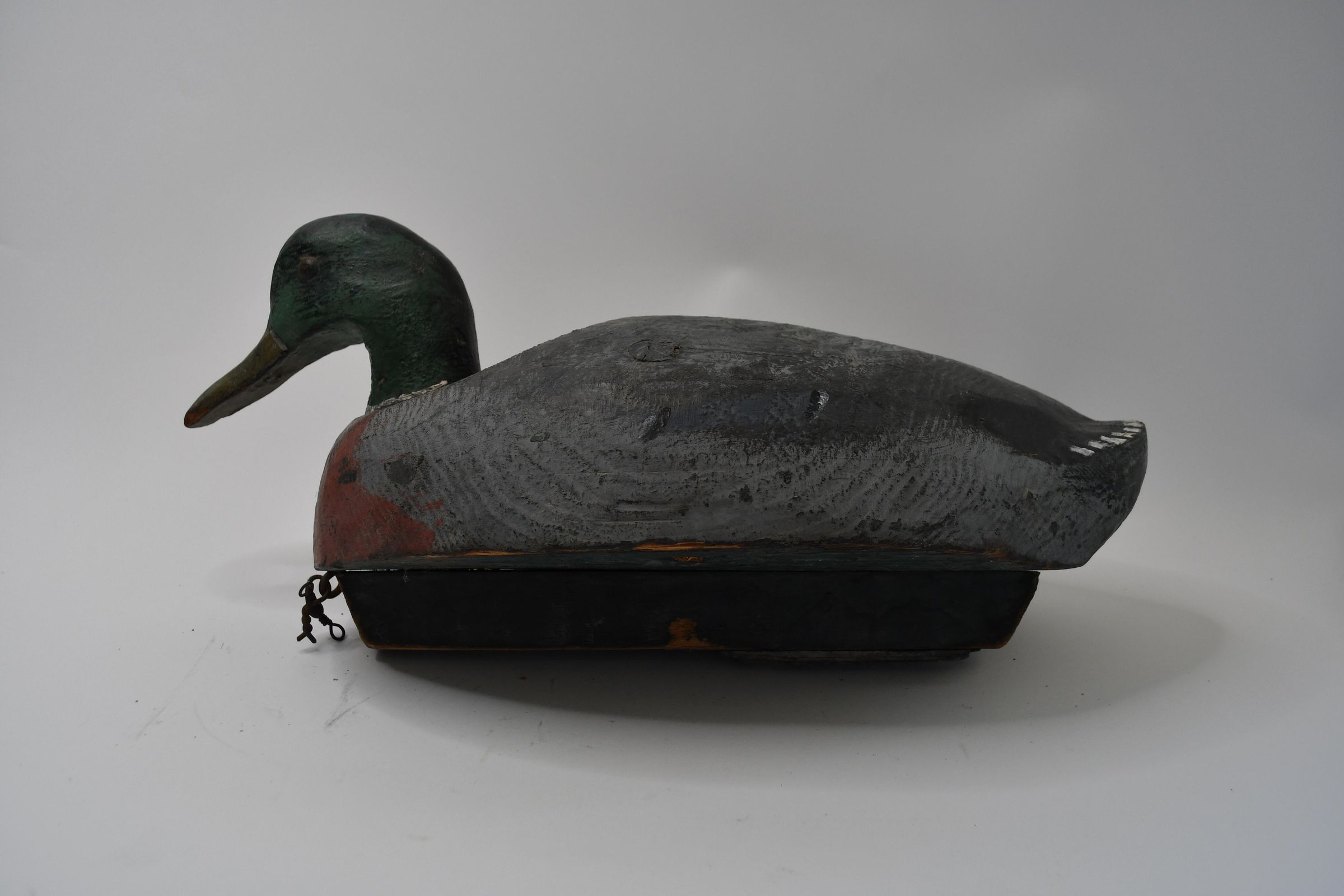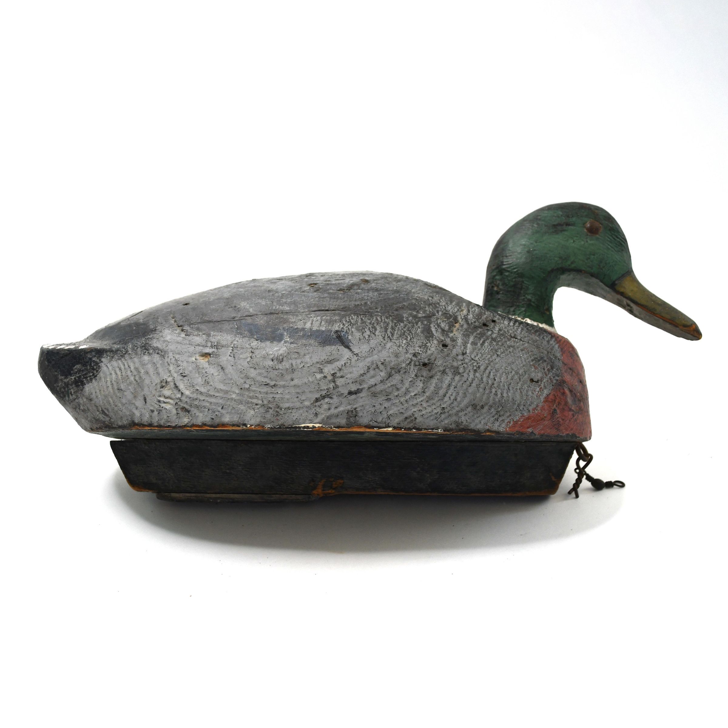 The paint work on this decoy clearly displays the green head, white neck ring, and yellowish bill of a Mallard drake. Mallard ducks are common throughout North America, Asia, and Europe, and have been introduced into other parts of the world where they were not originally found. Mallards are also the ancestor species to many domesticated duck varieties.Location