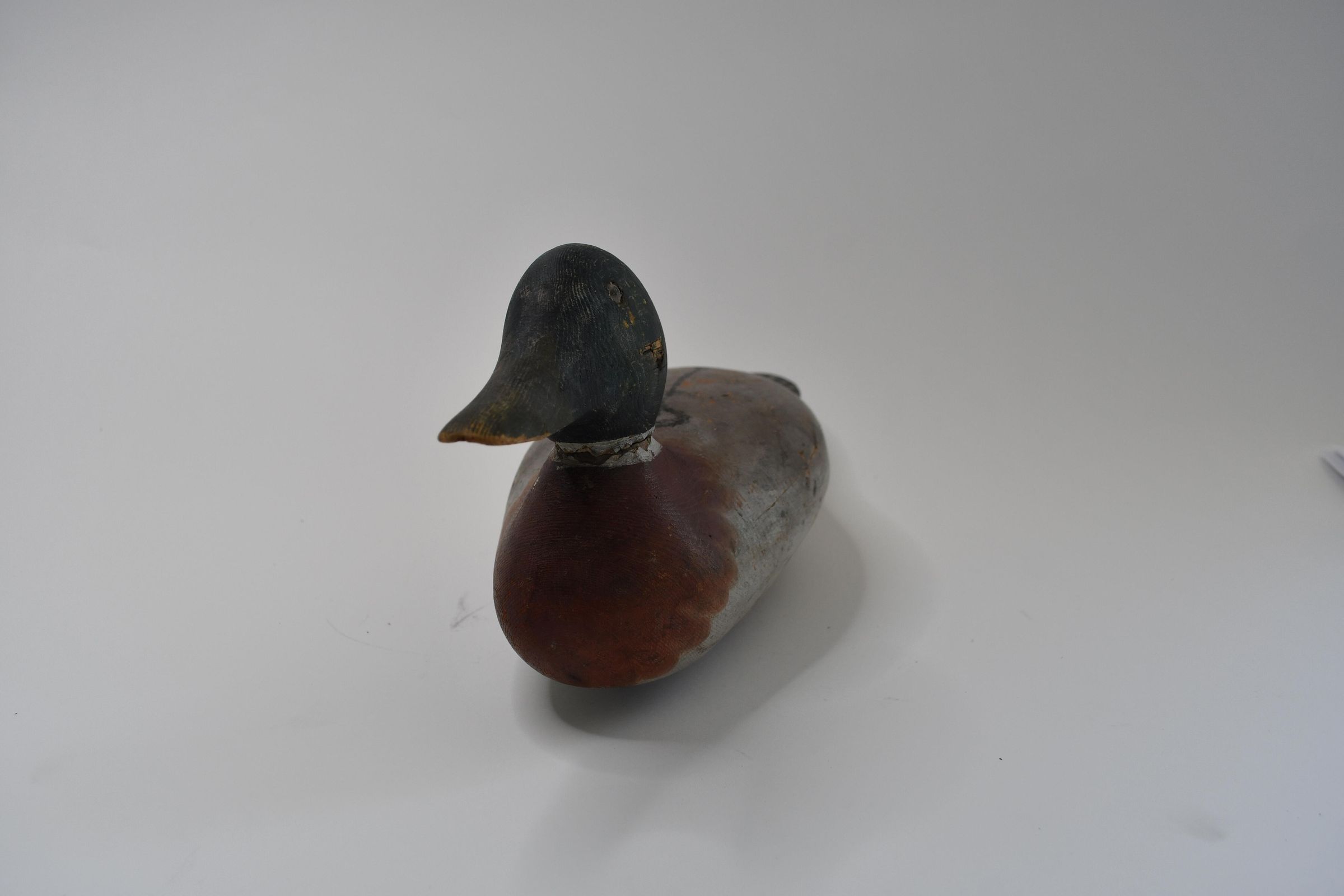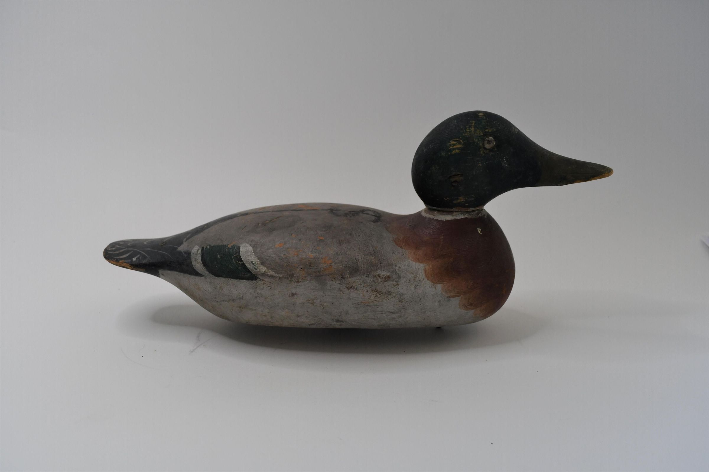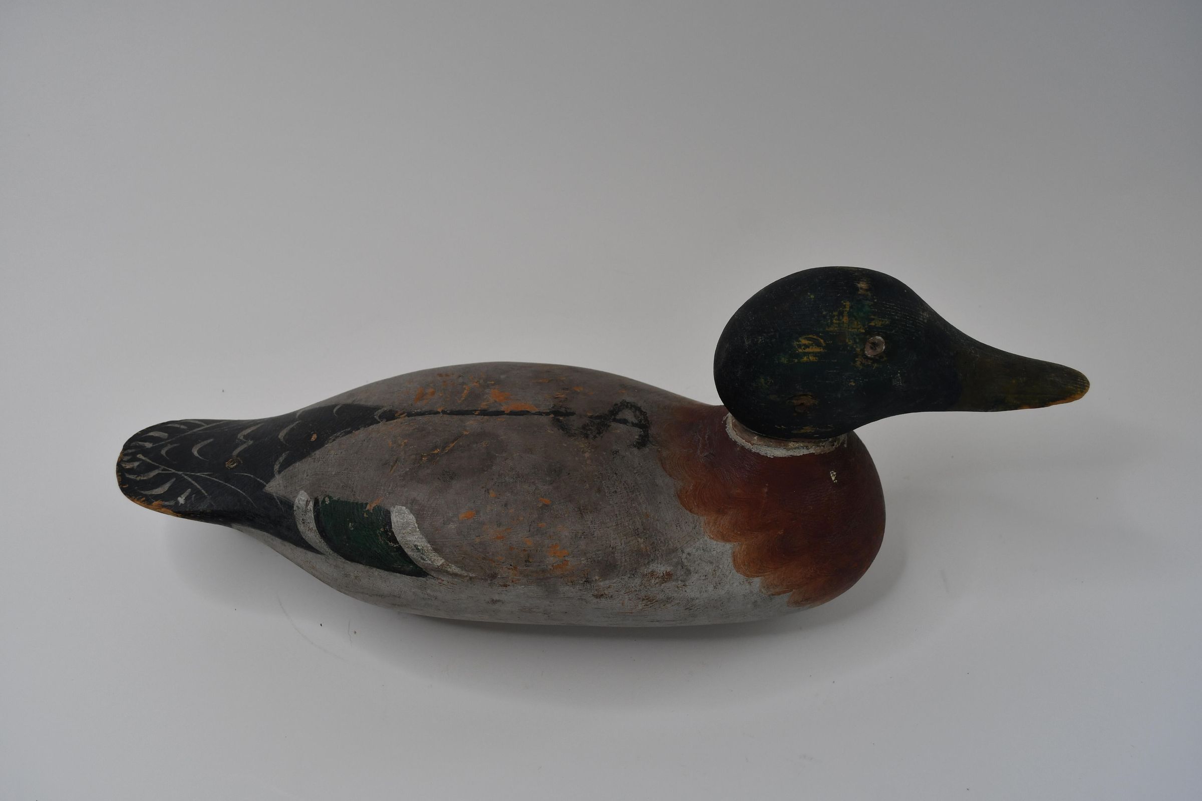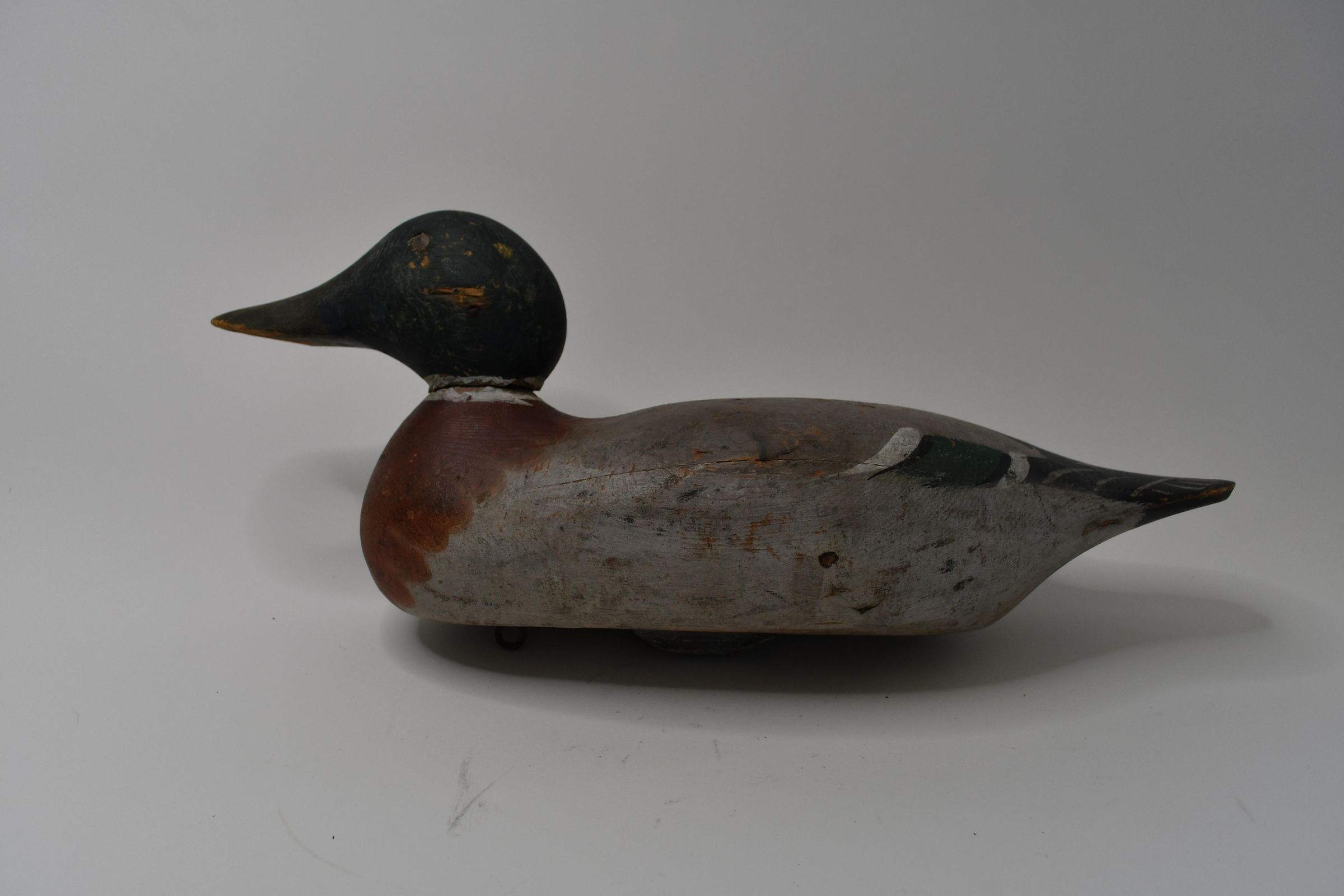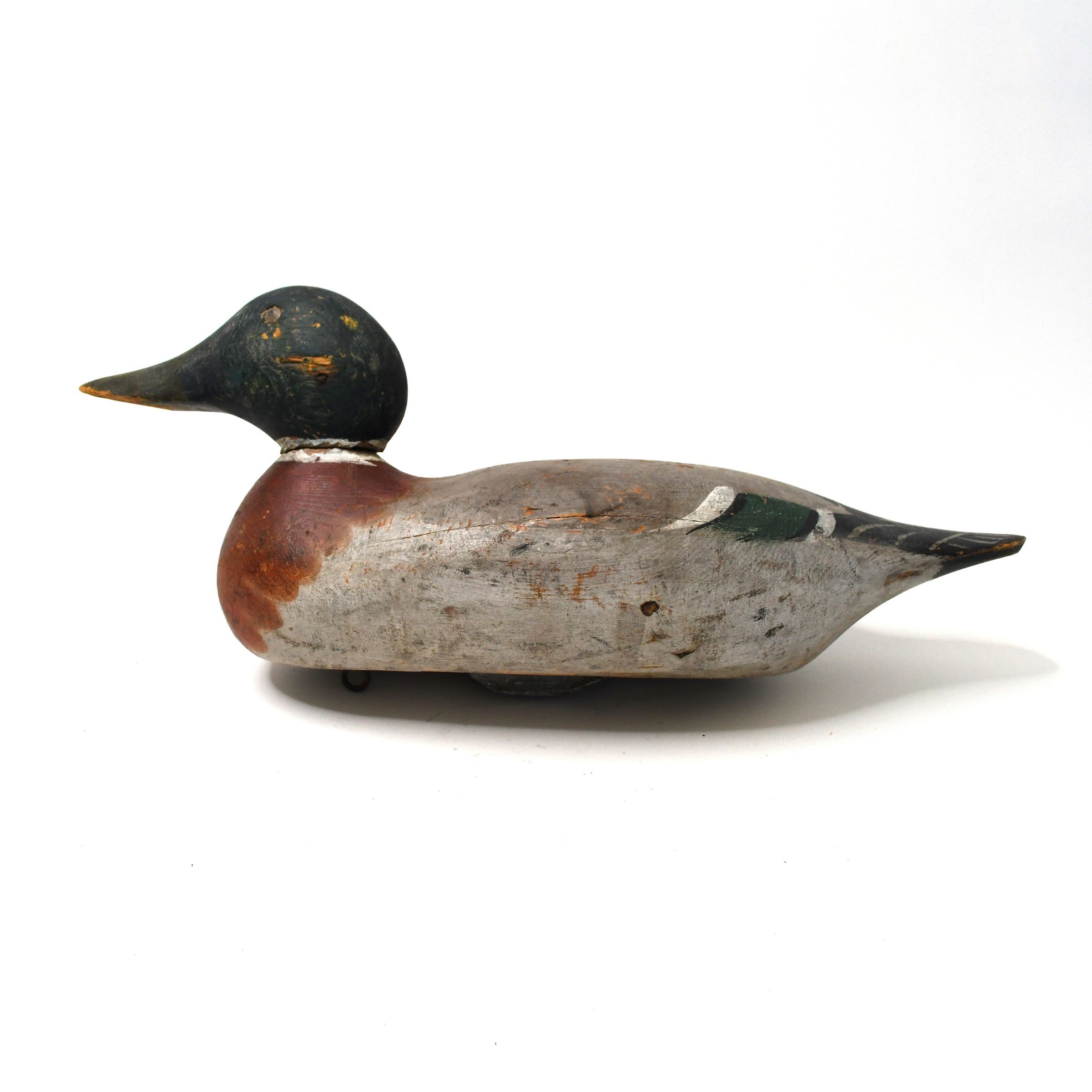 The Mason Decoy Factory of Detroit, Michigan is considered by many the standard for factory production of decoys in the early years of the twentieth century. Their first decoys were hand carved, but they transitioned to lathe-turned pieces with different grades of detail and finish work. This Mallard drake has glass eyes, which indicate it was in one of the higher priced categories.Location