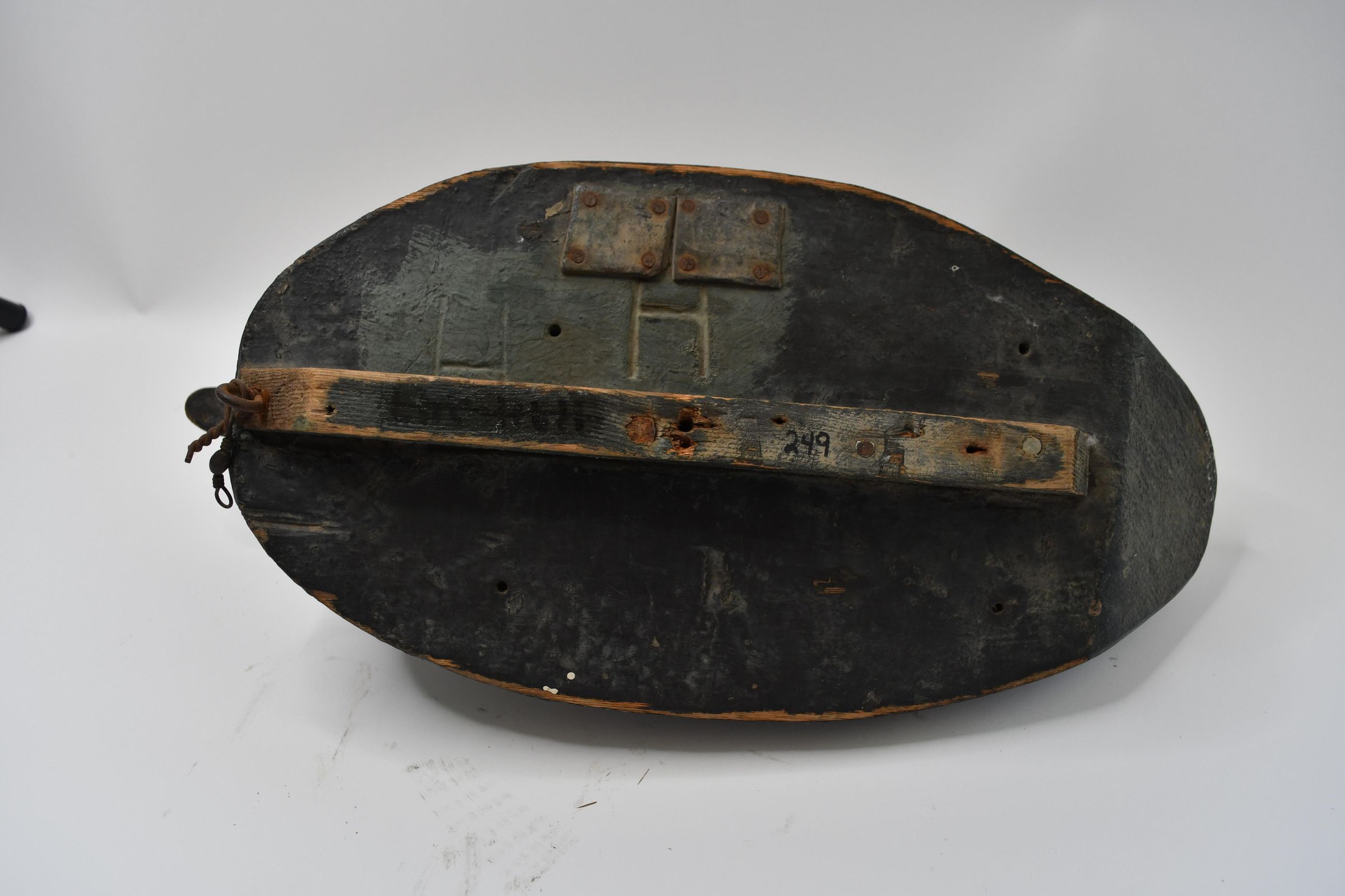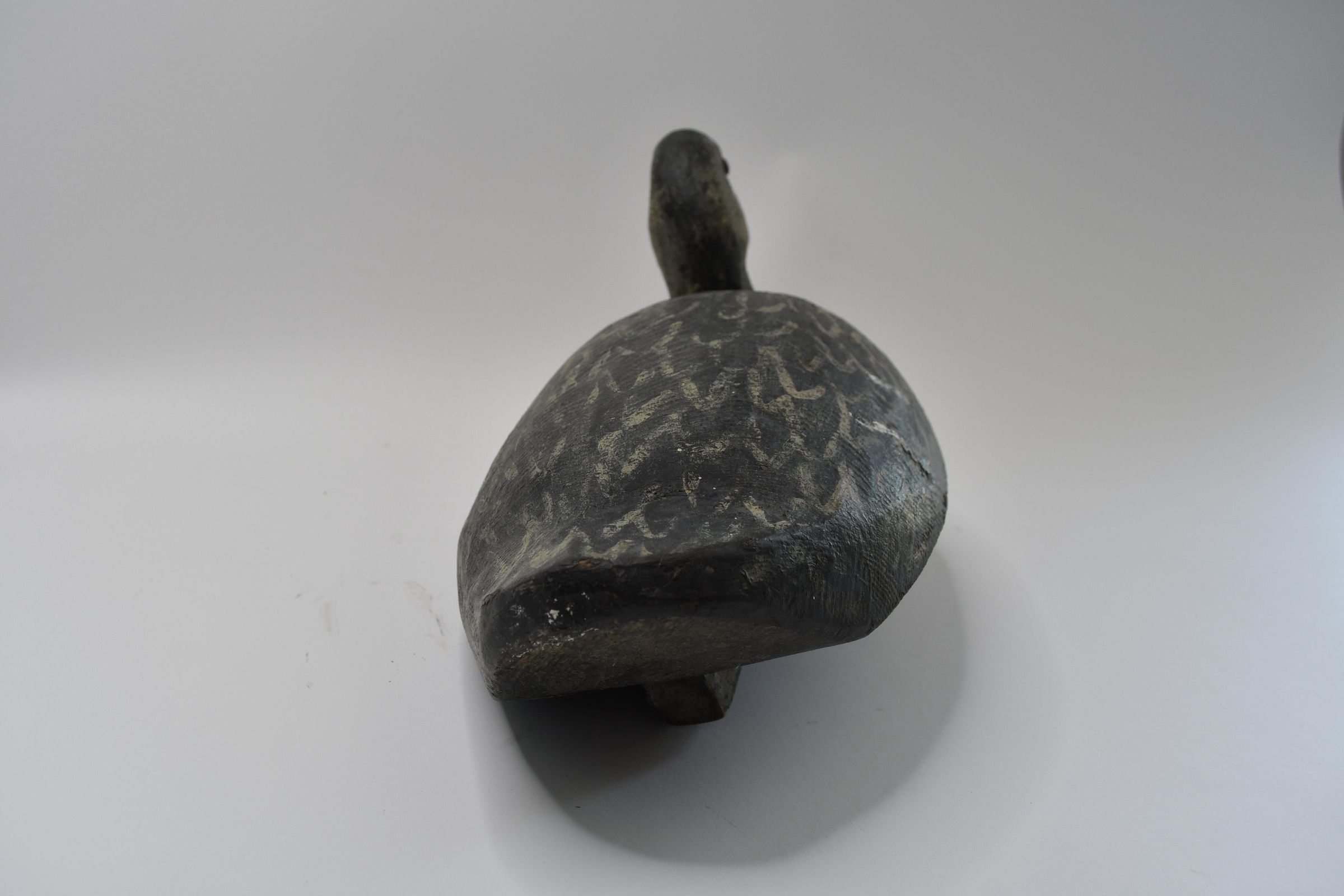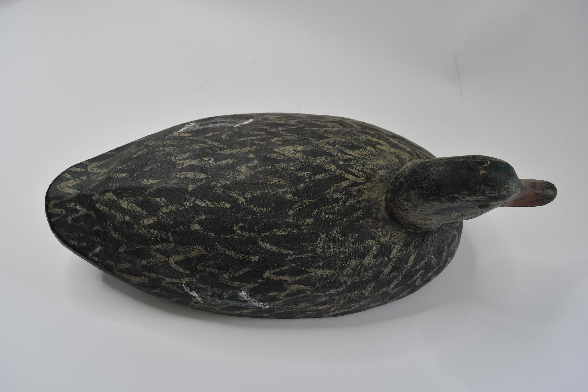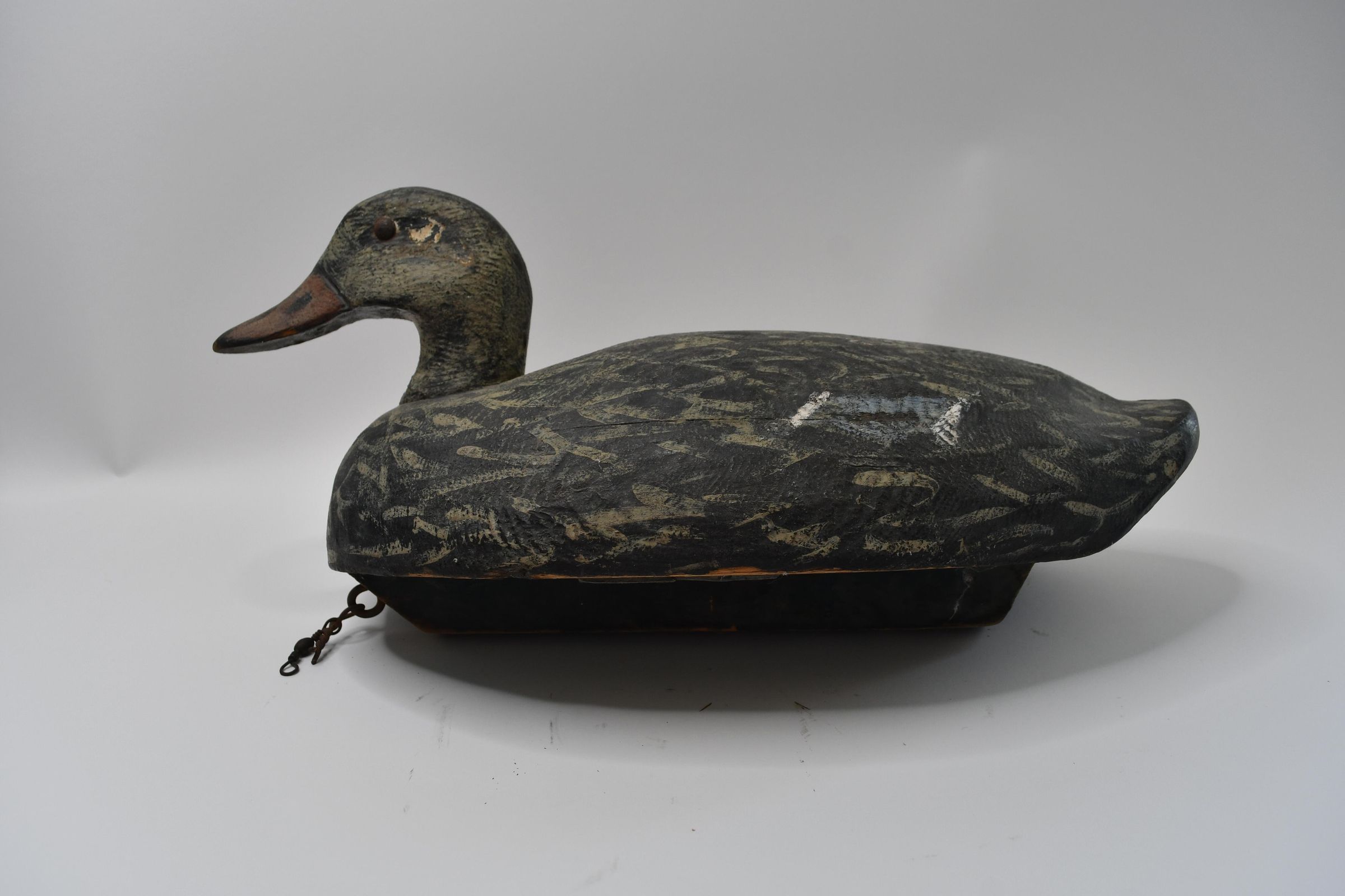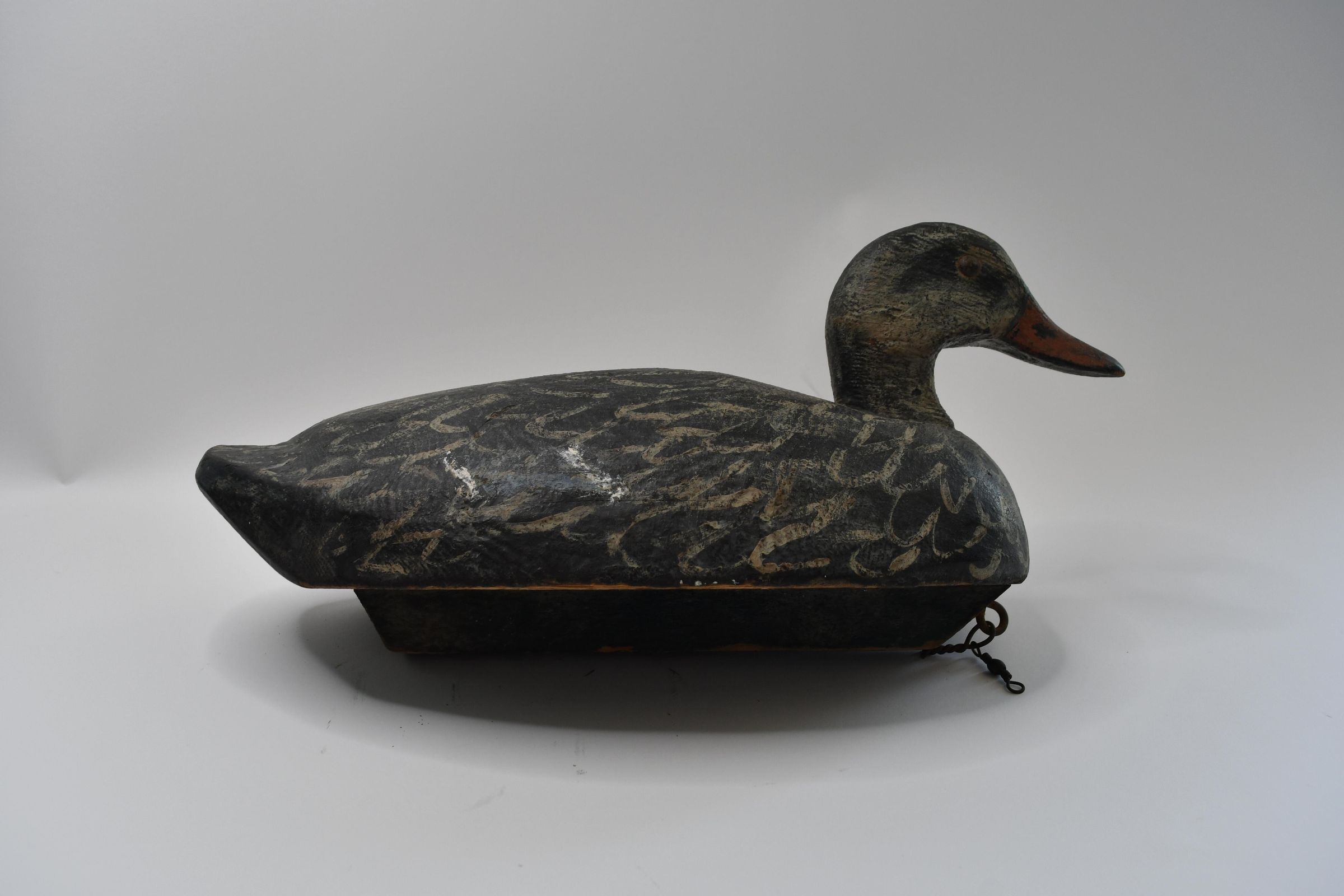 Attributed to Harold Hopfinger of Port Clinton, Ohio during the mid-twentieth century, this decoy has retained much of its paint job. Mallard ducks adapt to many environments which is why they are common, even in more urban areas. They are also omnivores, willing to eat tadpoles, crustaceans, and worms alongside waste grain and a wide variety of plants.Location