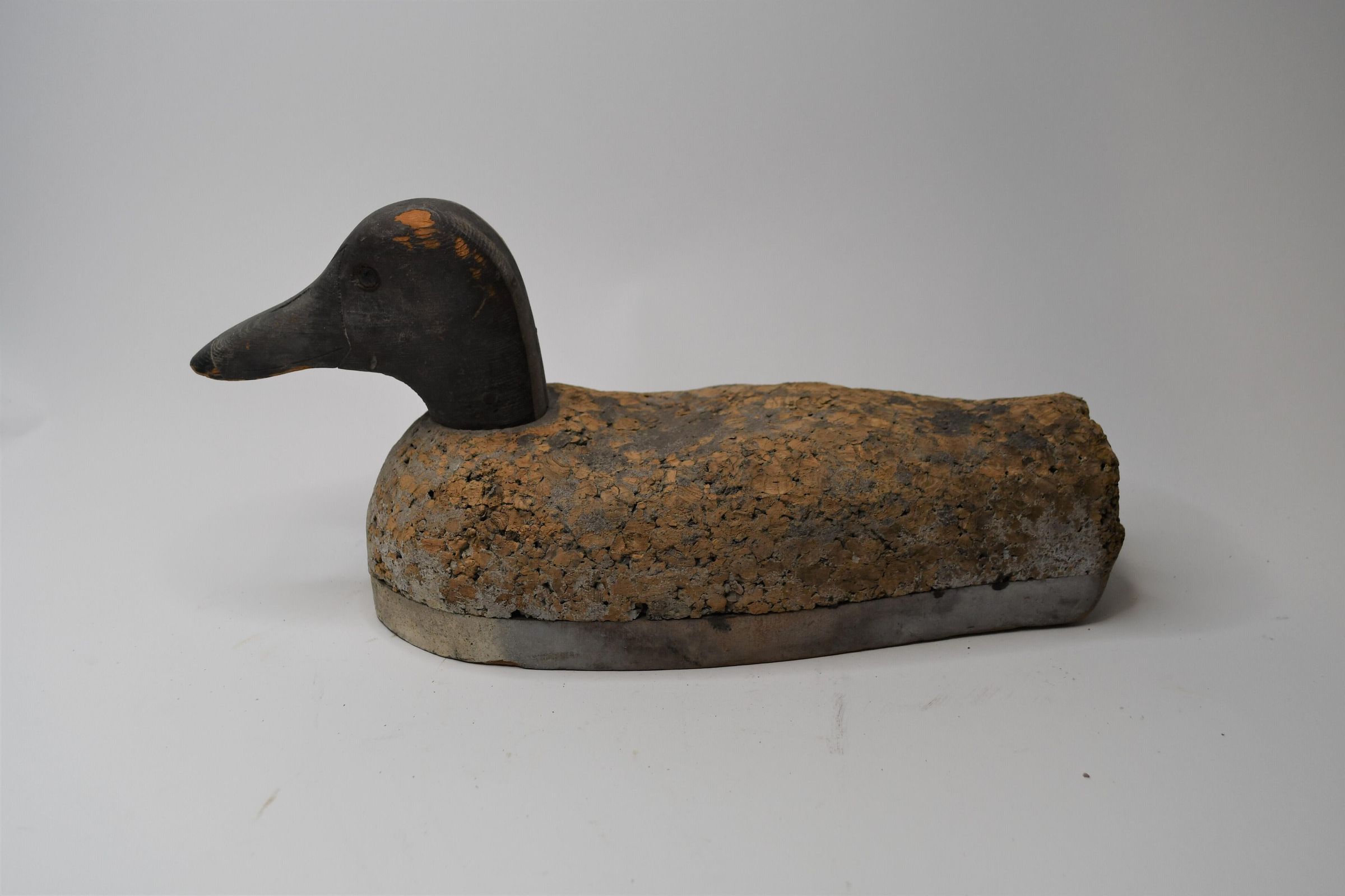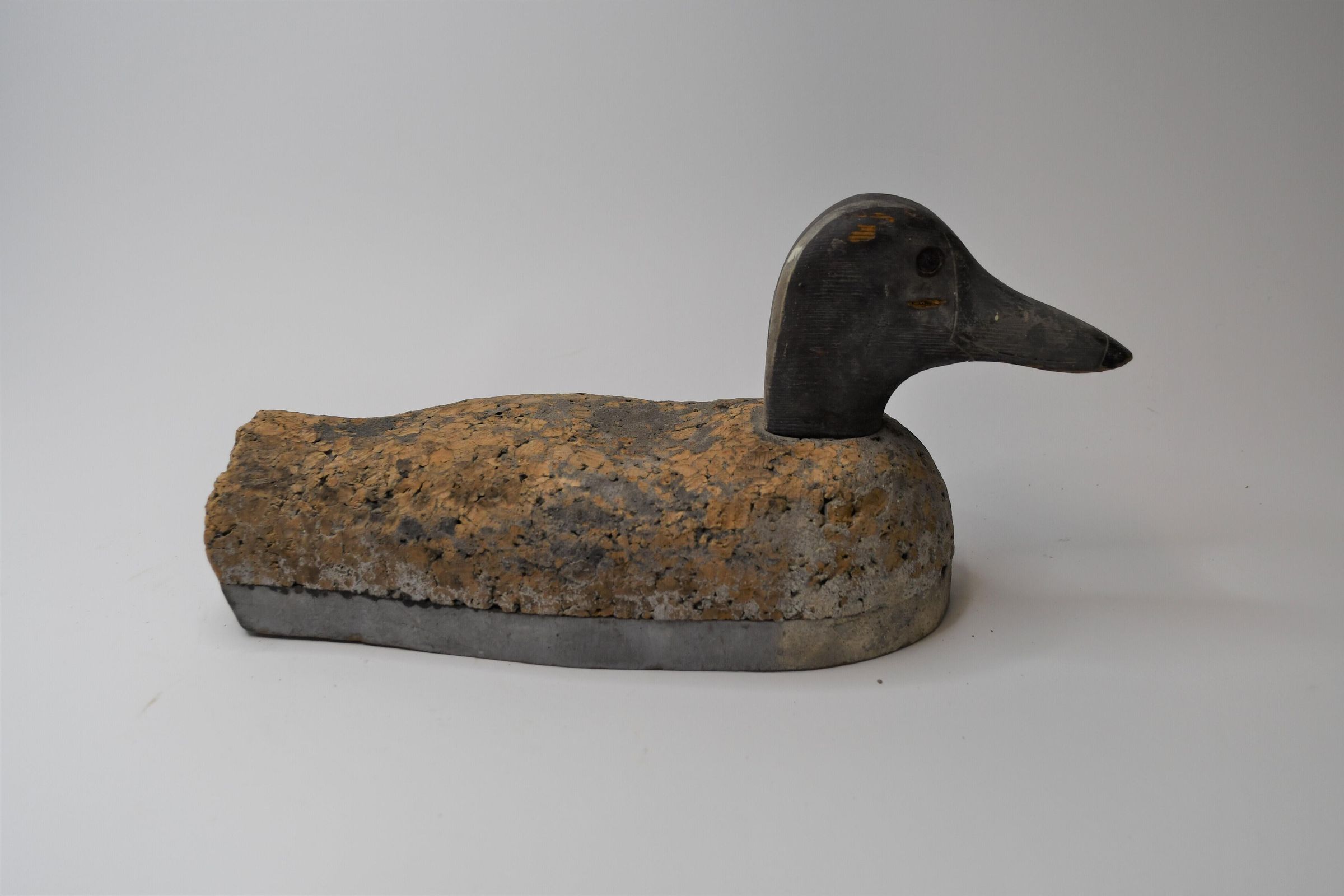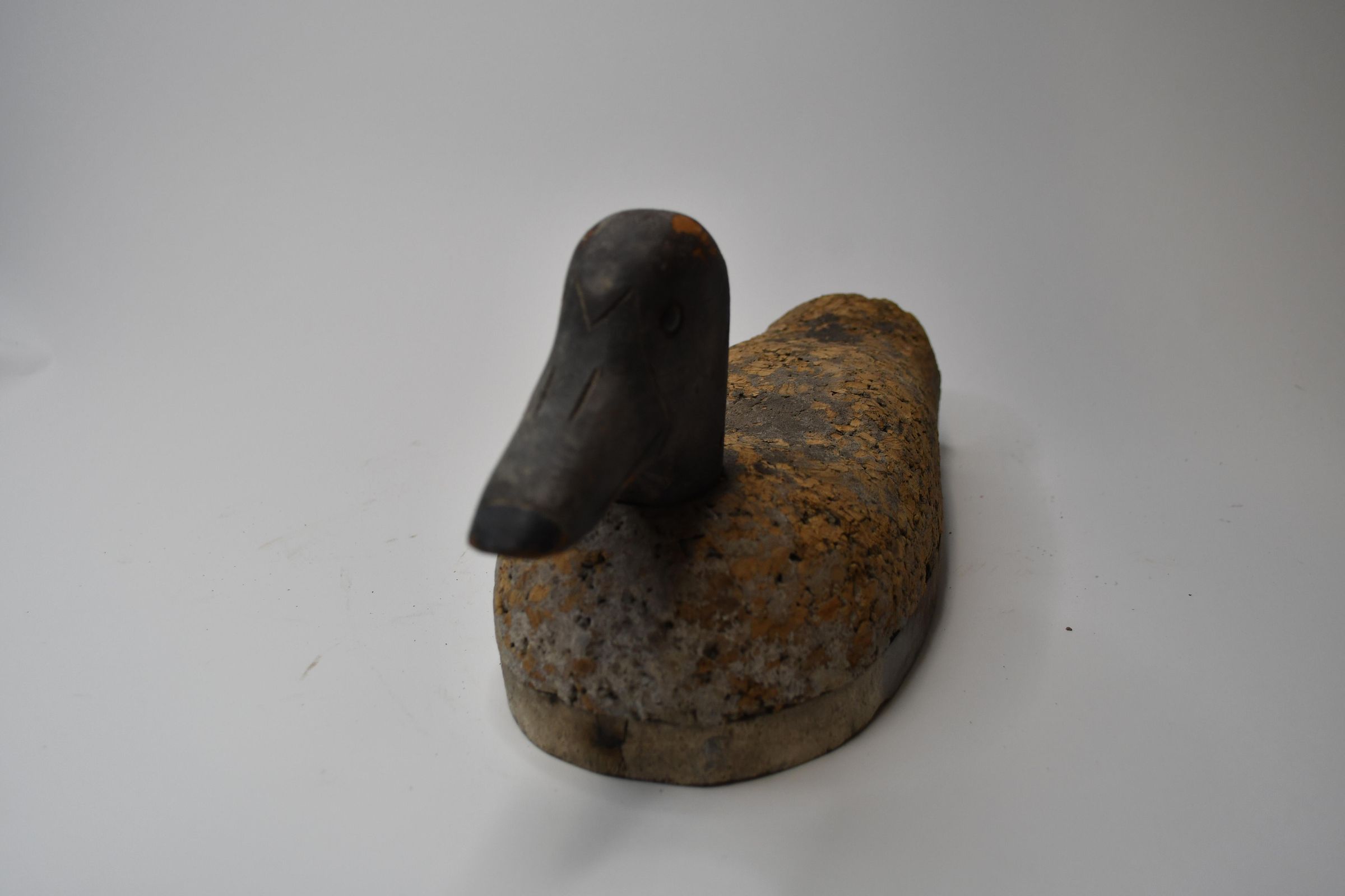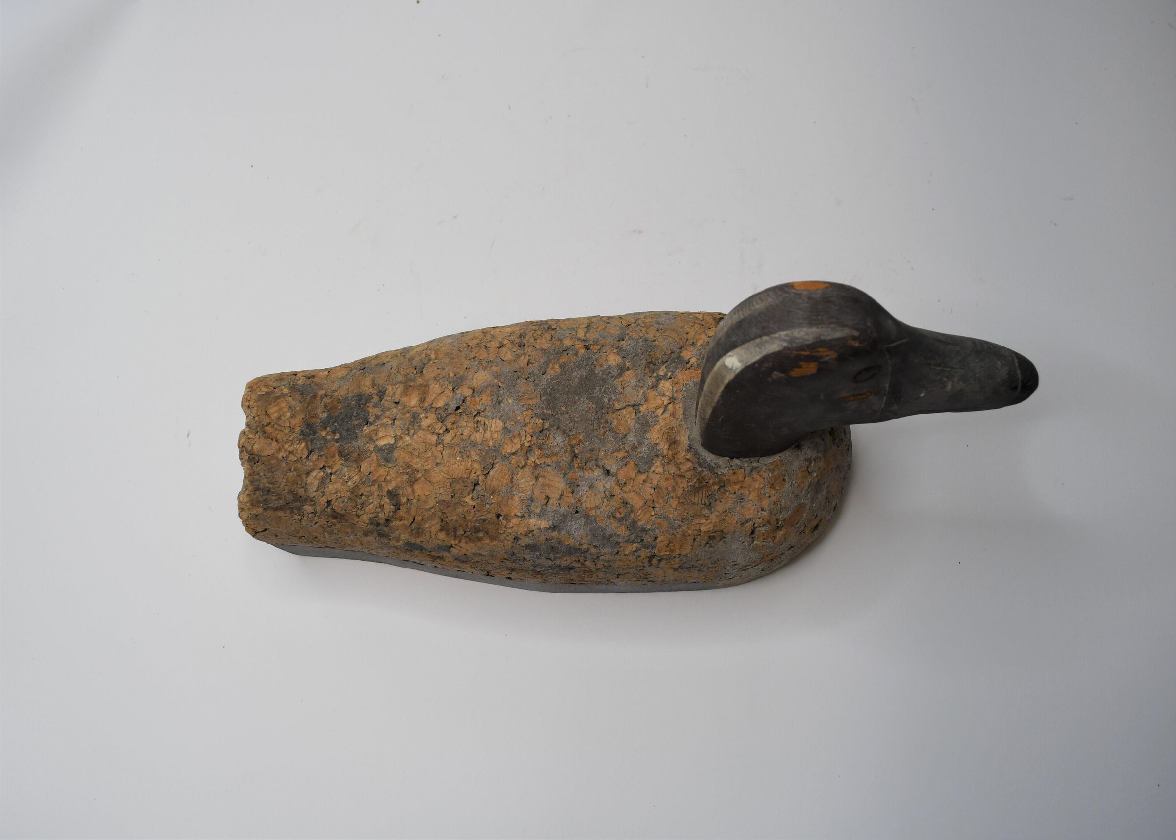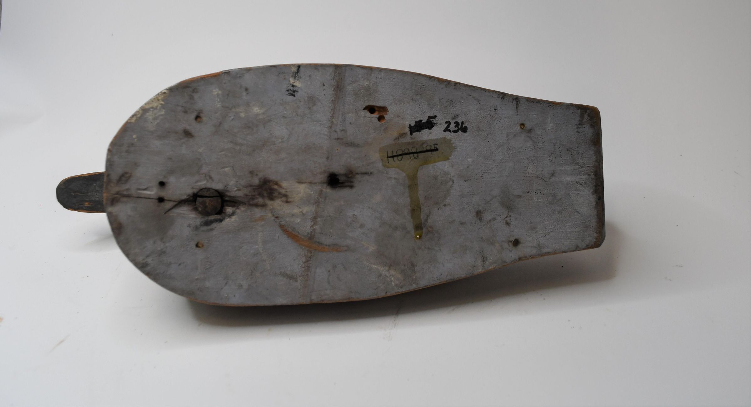 Look closely and you can see the white lines on the back of this decoy's head, which indicate it is a Northern Pintail drake. The paint loss on this clearly shows that the body is made of cork, a common construction method for Herter's decoys.