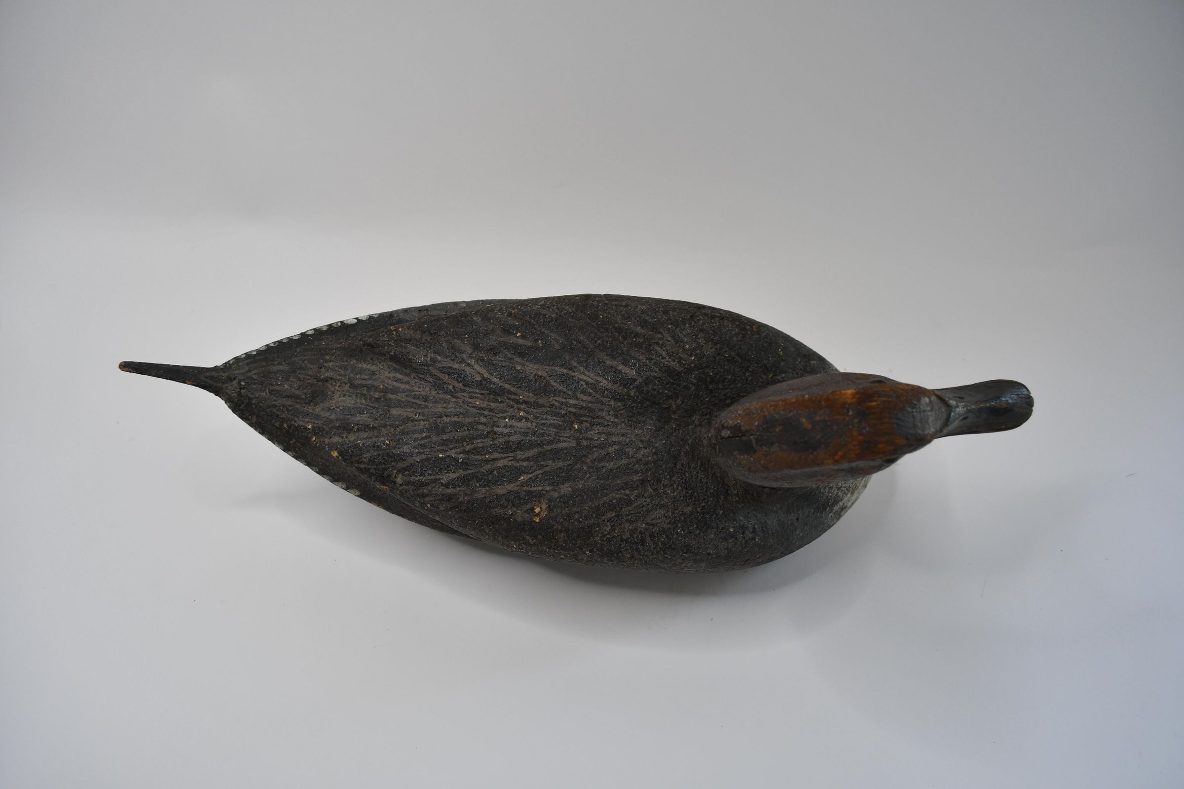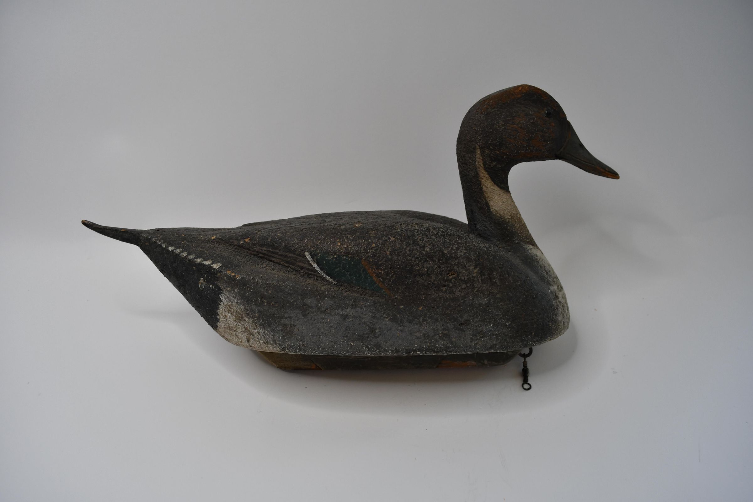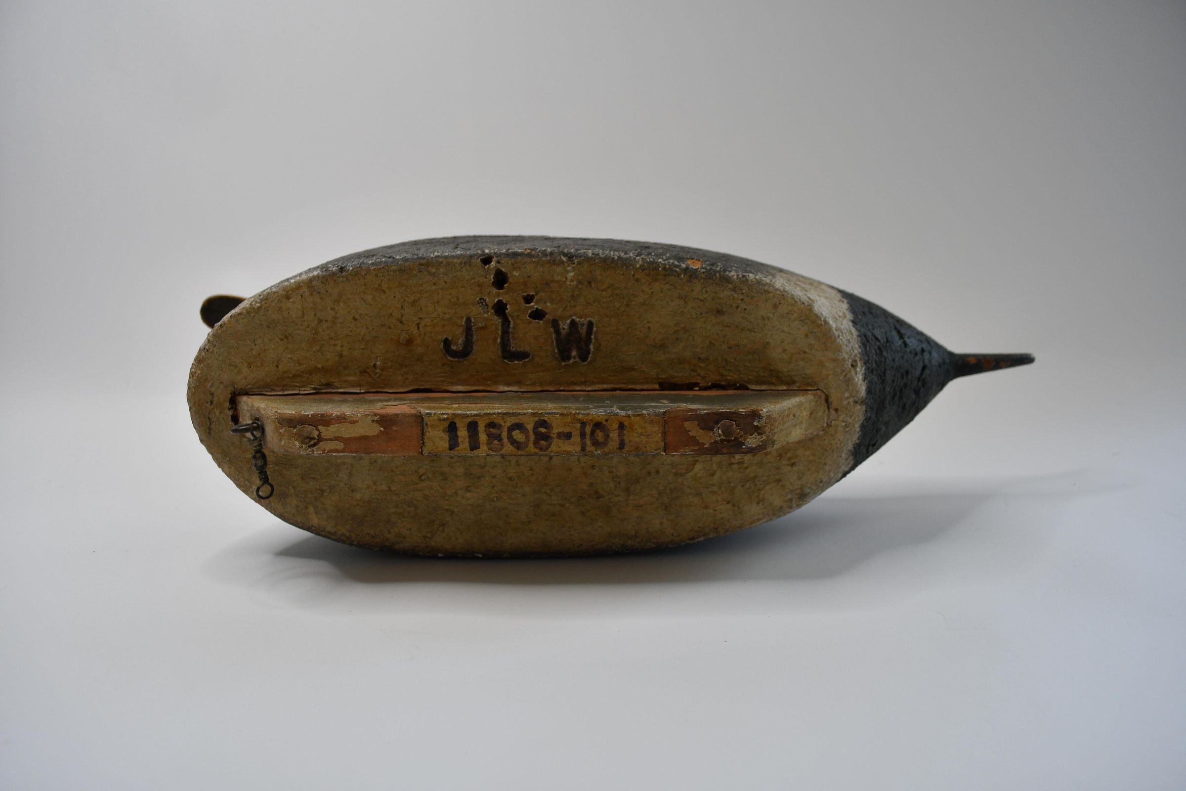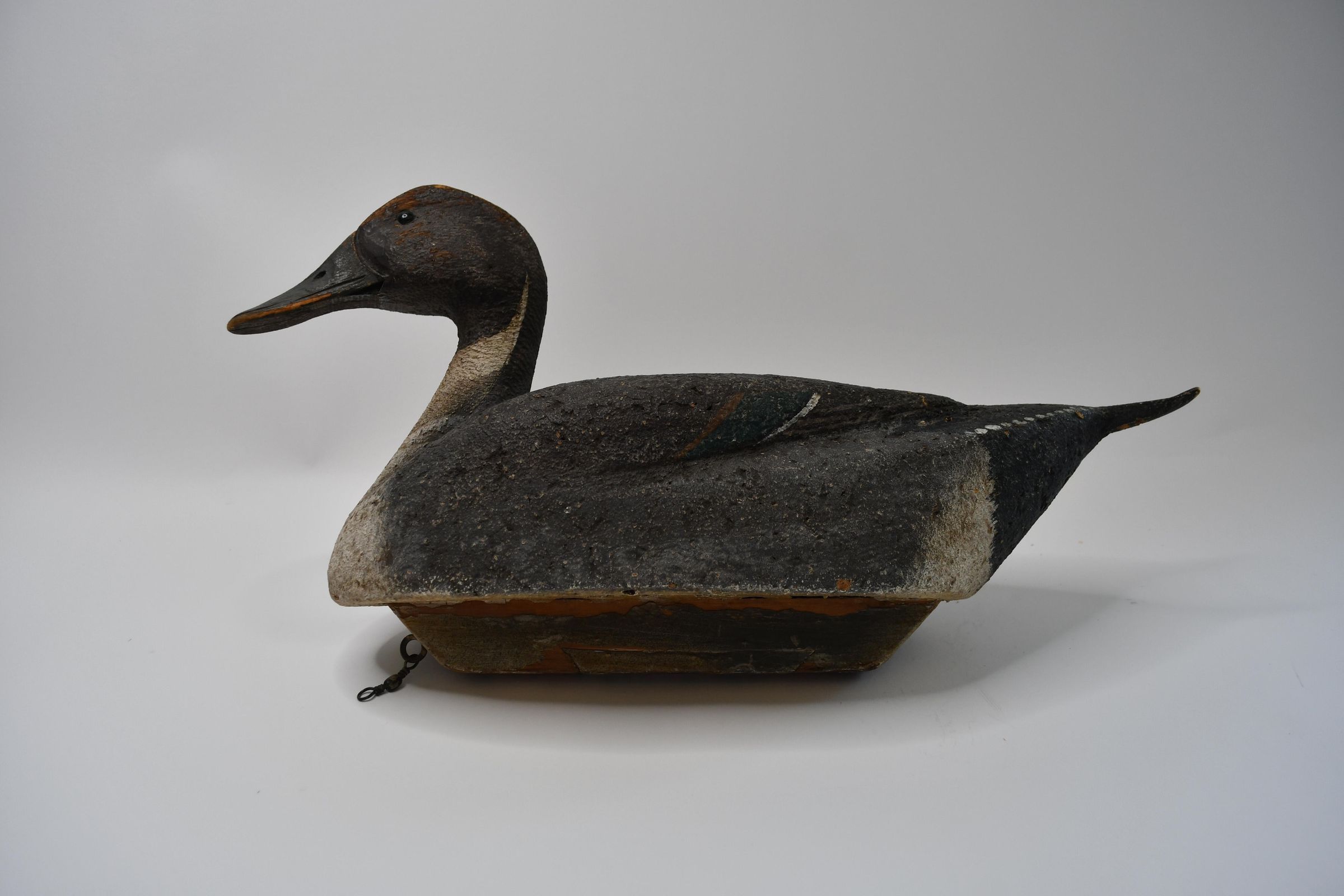 William Enright, an award-winning decoy carver from Toledo, Ohio, carved this Pintail drake in 1948. As was Enright's preference, the body of the decoy is cork, and the head is pine. A unique feature of this decoy is the tail which is an attachment to the duck rather than carved from the cork. The tail and the ring on the neck make the Pintail duck distinctive.Collection
