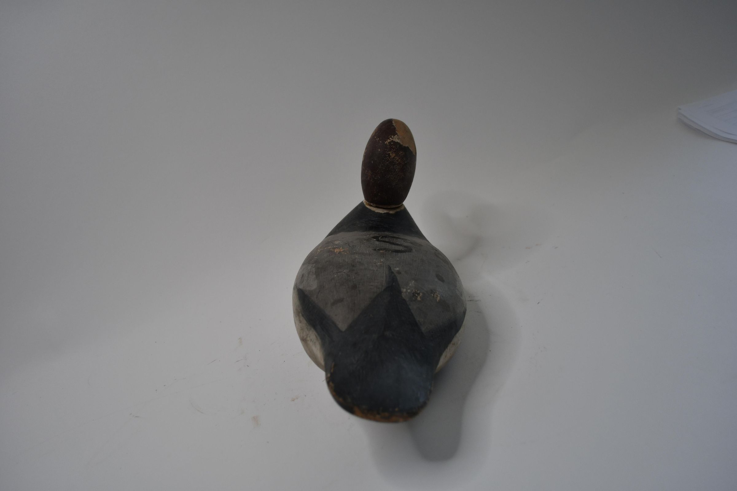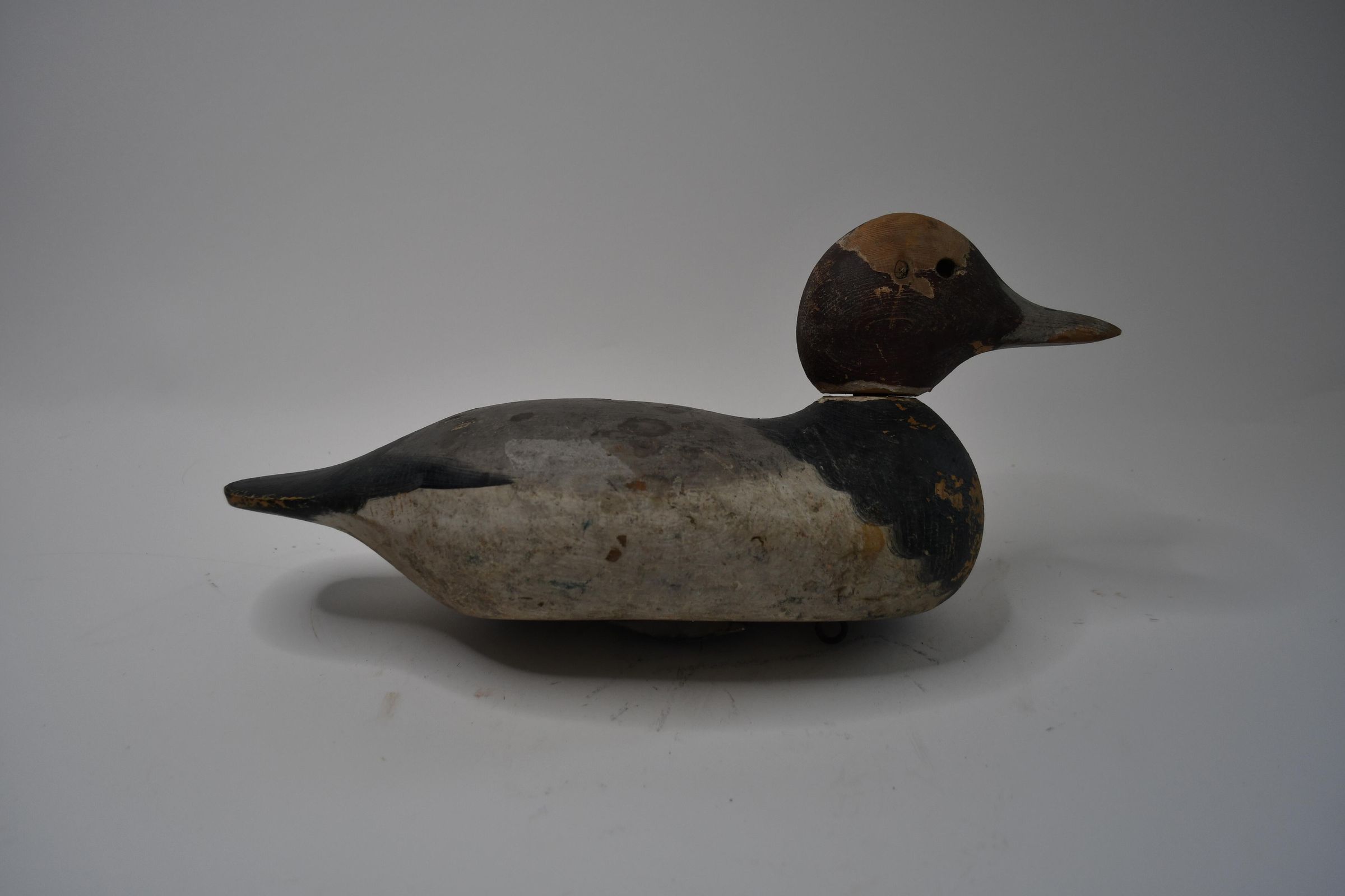 This decoy is attributed to the Mason Decoy Factory of Detroit, Michigan. This company produced hundreds of thousands of decoys from the late 1800s until after World War 1. Although this is not the original paint, the Redhead Drake decoy pictured here still shows signs of wear.Location