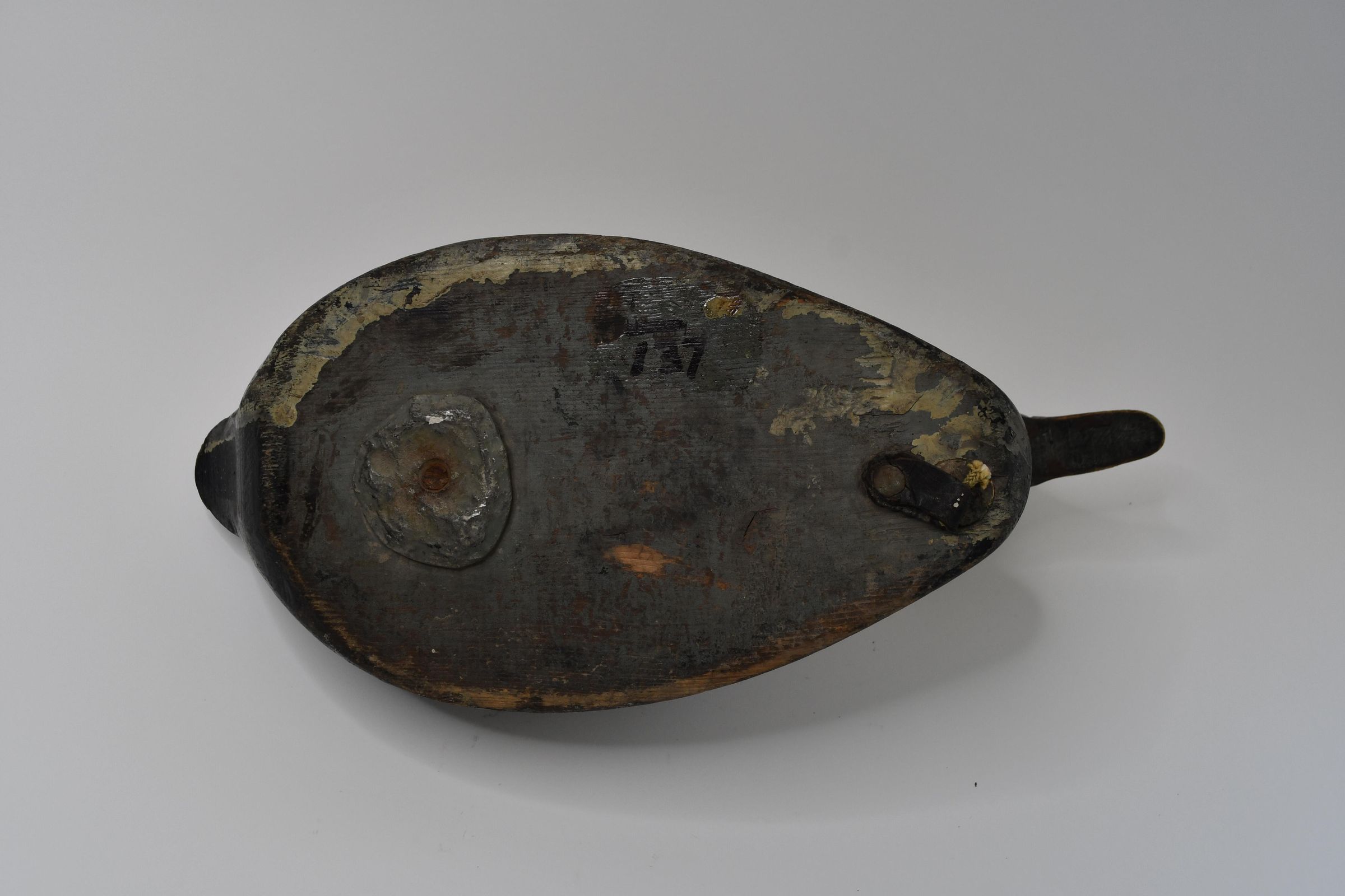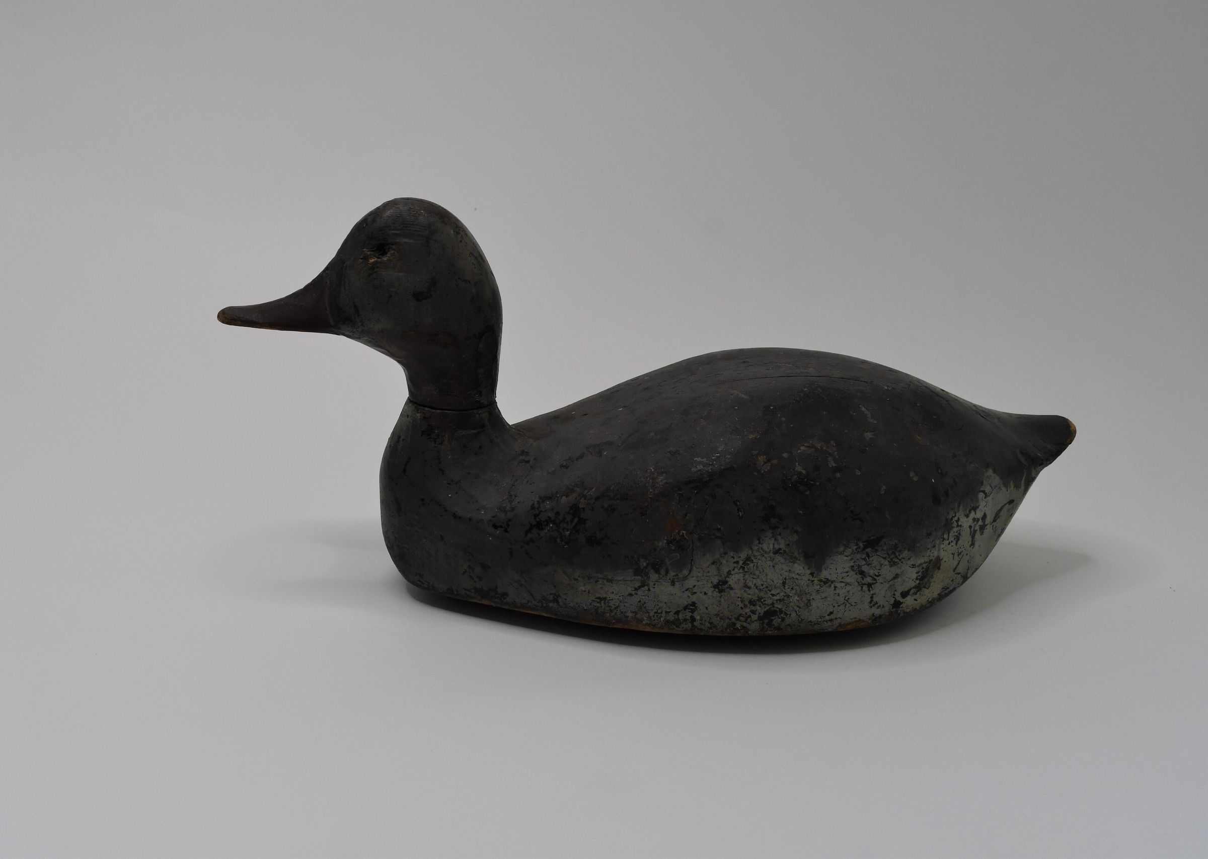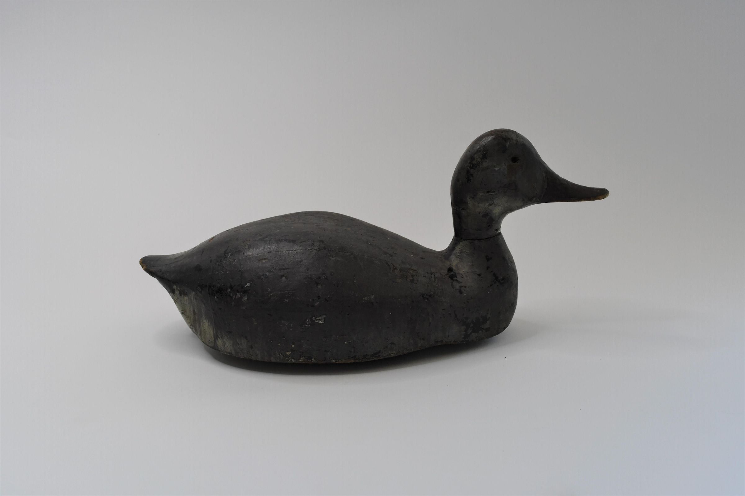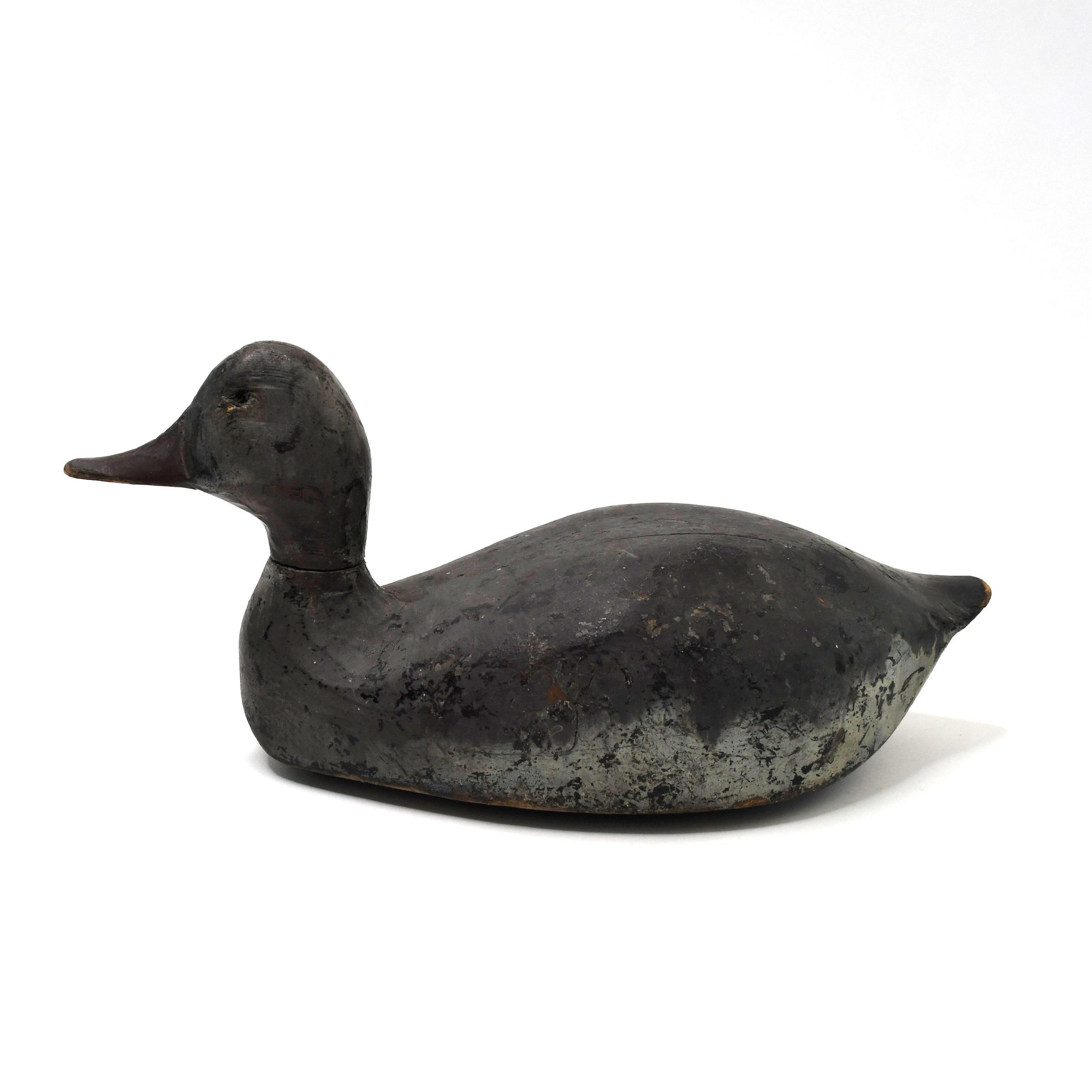 Redhead ducks can form flocks in the thousands when they are not in the breeding season. Females have the recognizable dusky red head, although it is faded on this example. This decoy dates from circa 1880 to circa 1920, and it is believed Adam Hartung of Sandusky, Ohio carved it.Location
