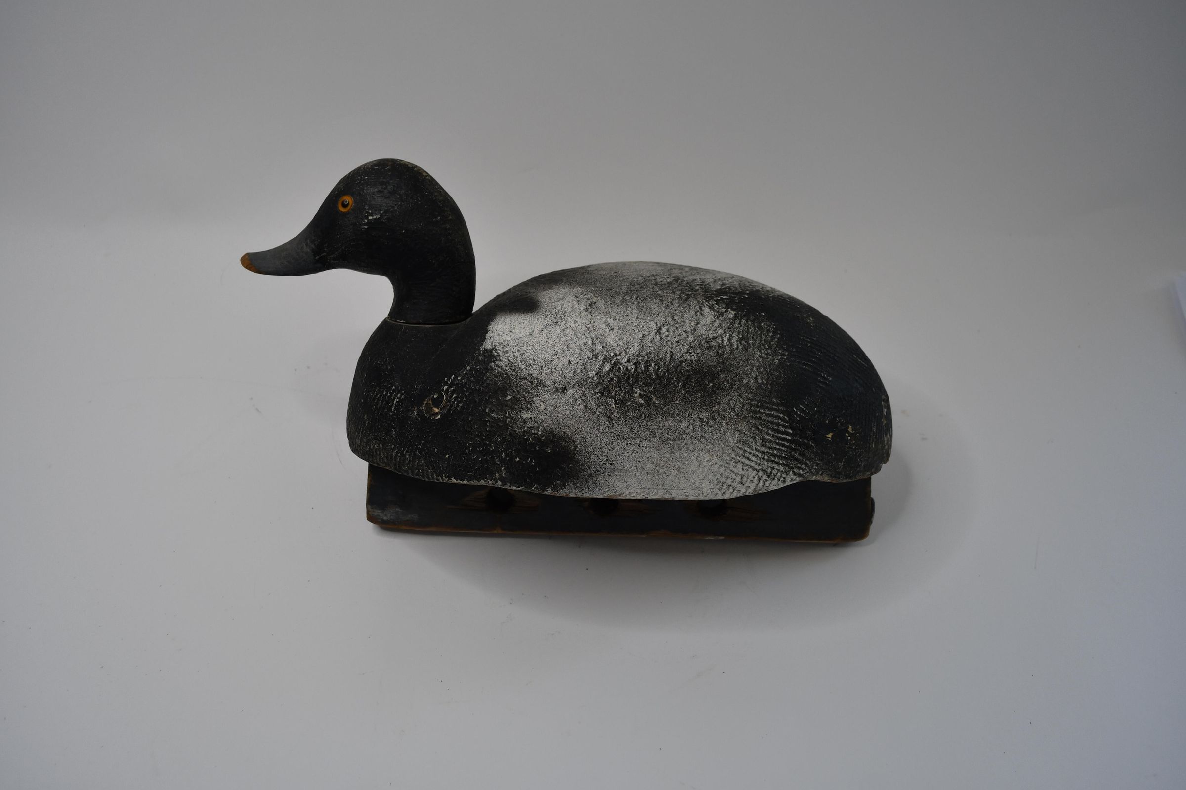 Deployed in the East Harbor area, this Scaup decoy has a deep keel to help stabilize it. Though there is some debate on who carved it, this decoy is from cedar and dates to around 1945.Location