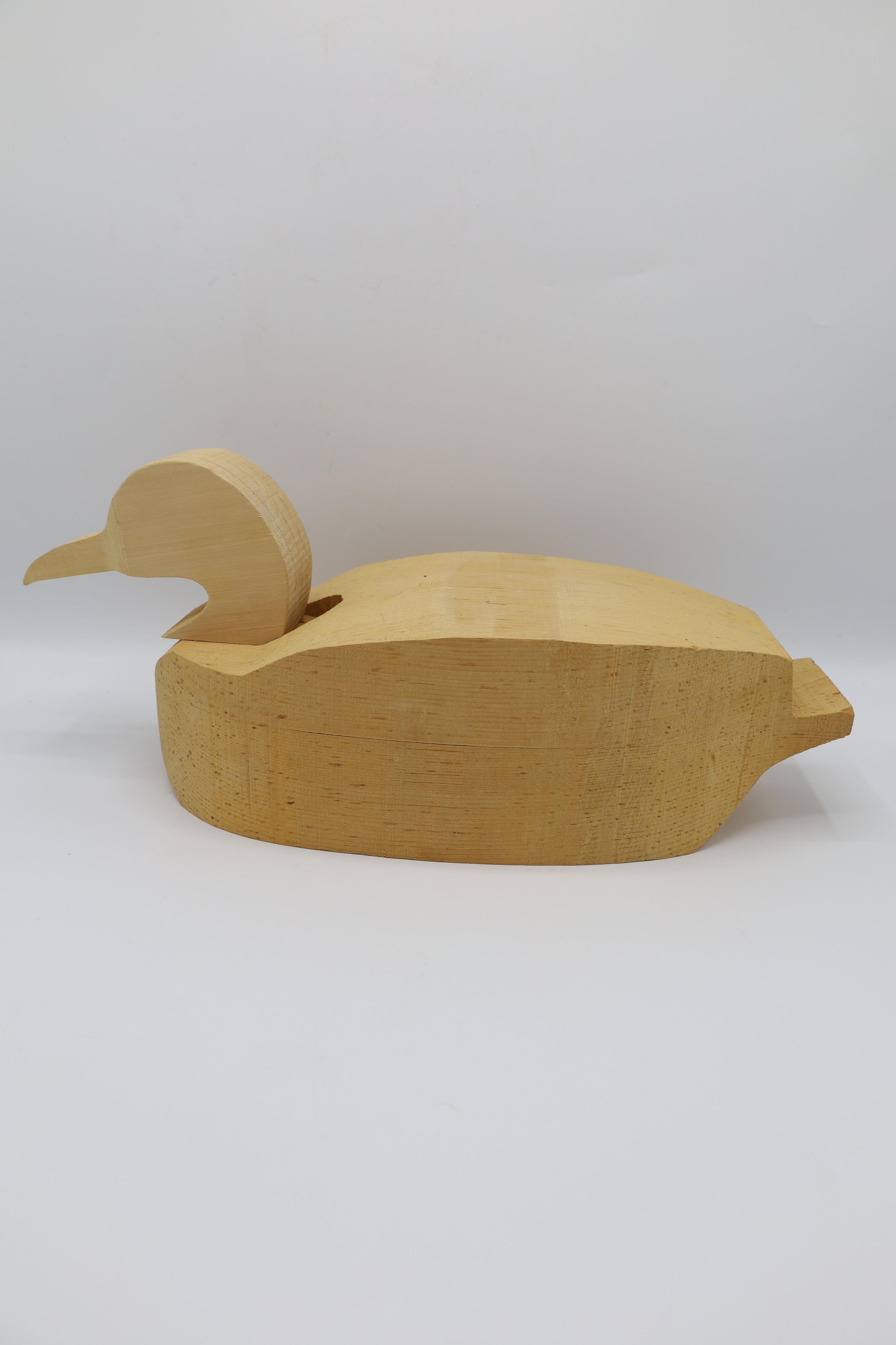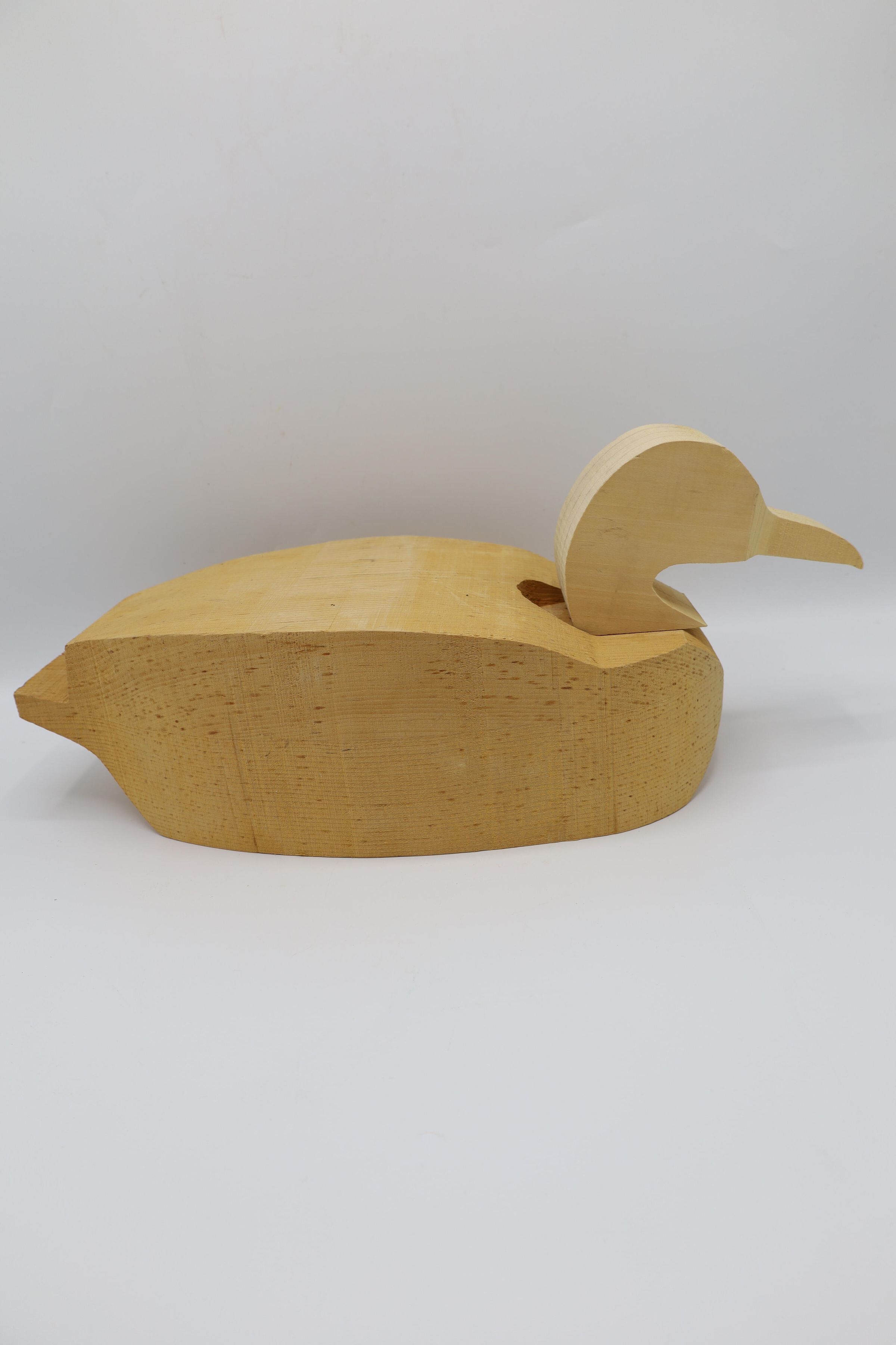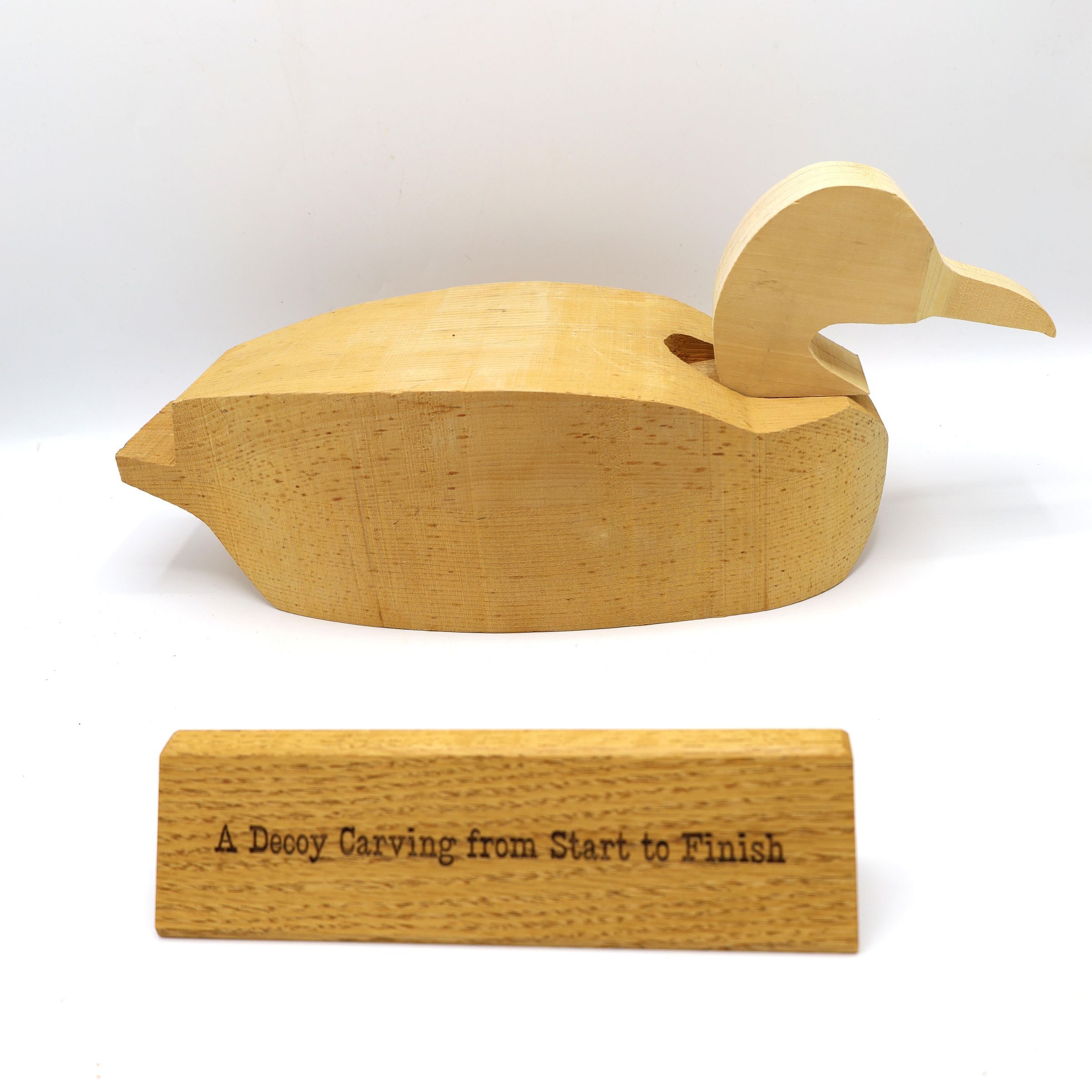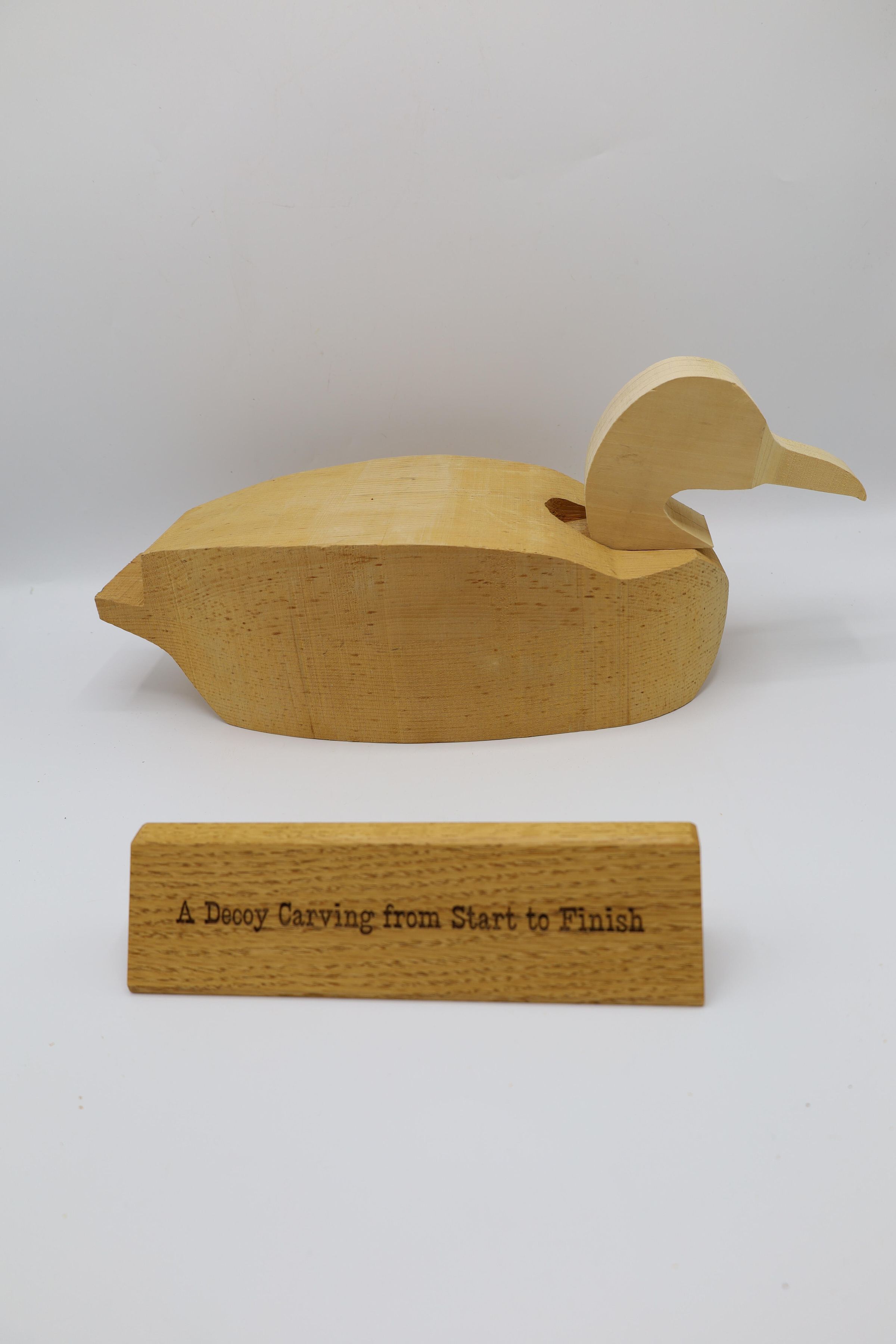 The process of carving a decoy begins with a blank. The blank is most often wood or a combination of wood and cork in the general shape of the bird that is being carved. There are no clear distinguishing characteristics of the specific bird that will be the finished product. Artists carved these blanks from wood blocks, although blanks can be bought from some art suppliers.Collection