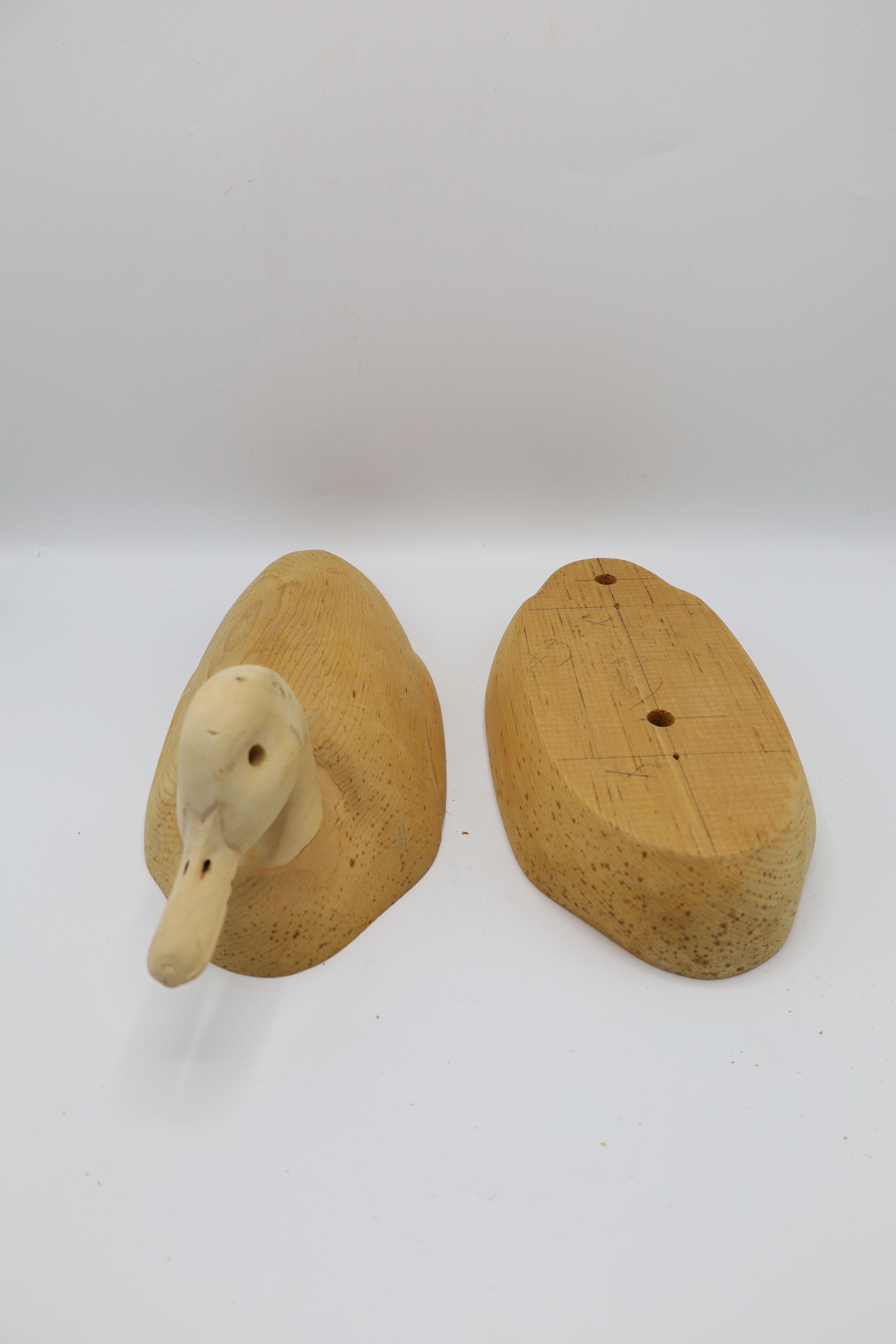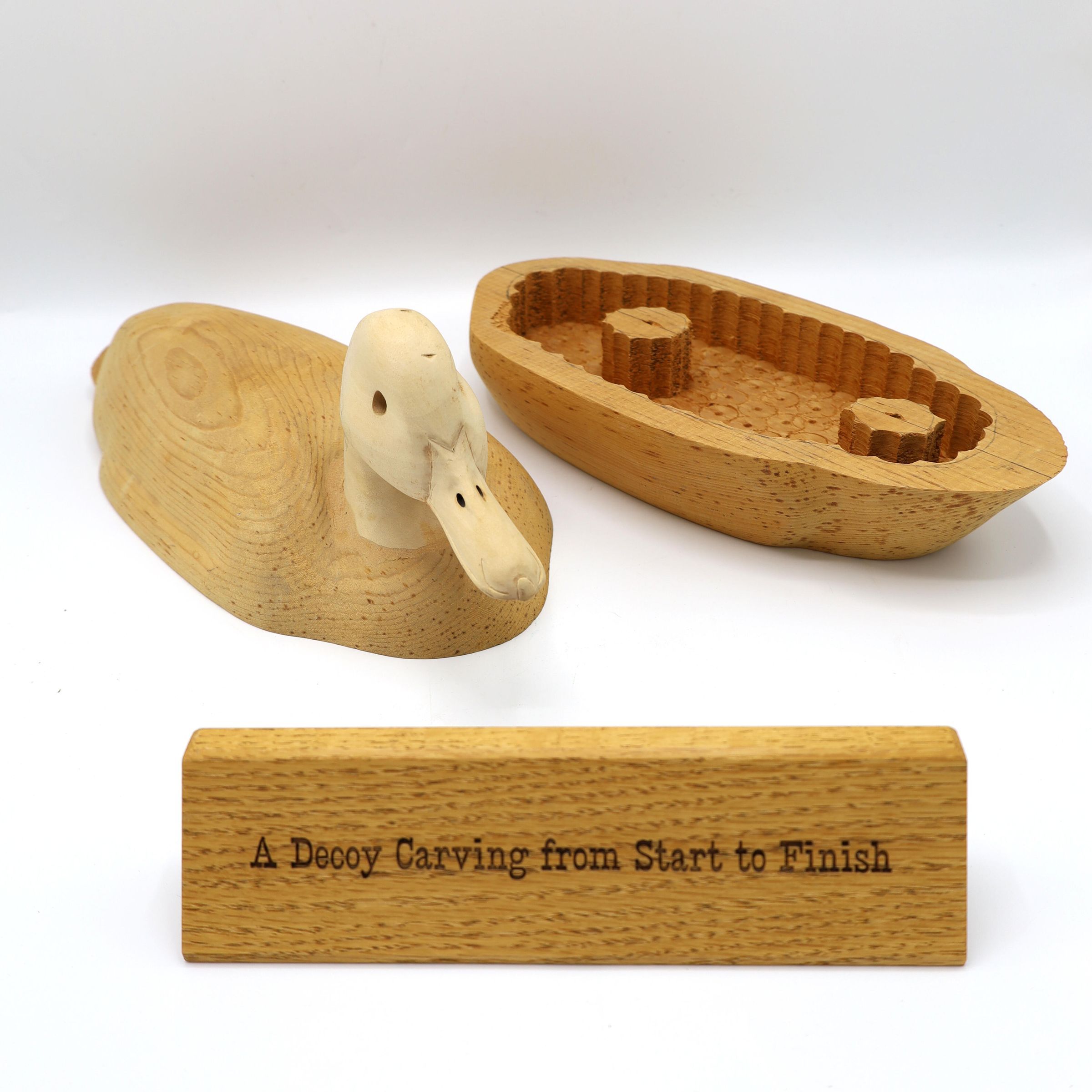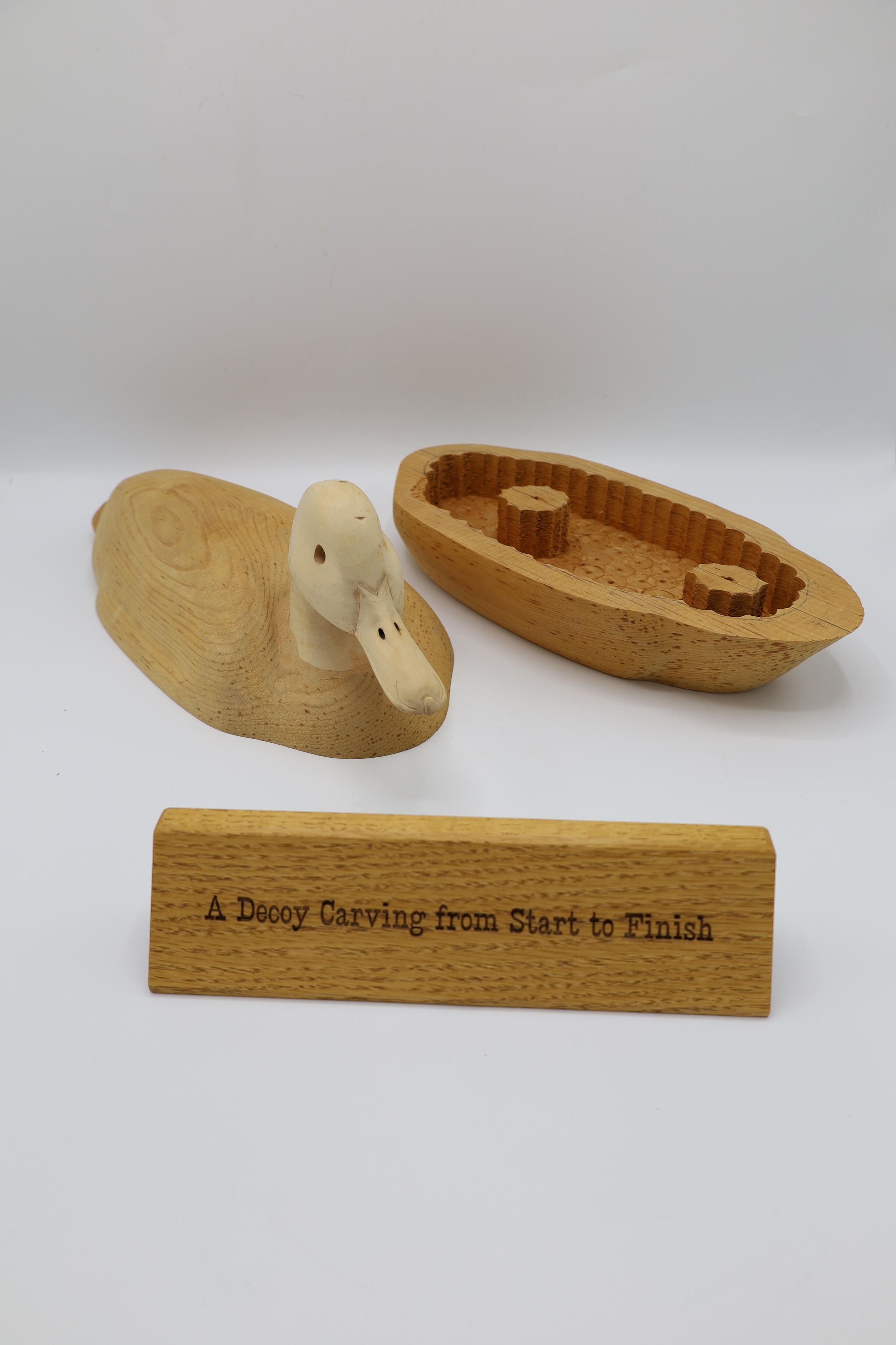 The third step of carving a decoy includes hollowing out the body to keep the decoy light and hollowing out the eyes and nostrils of the bird's head.Collection