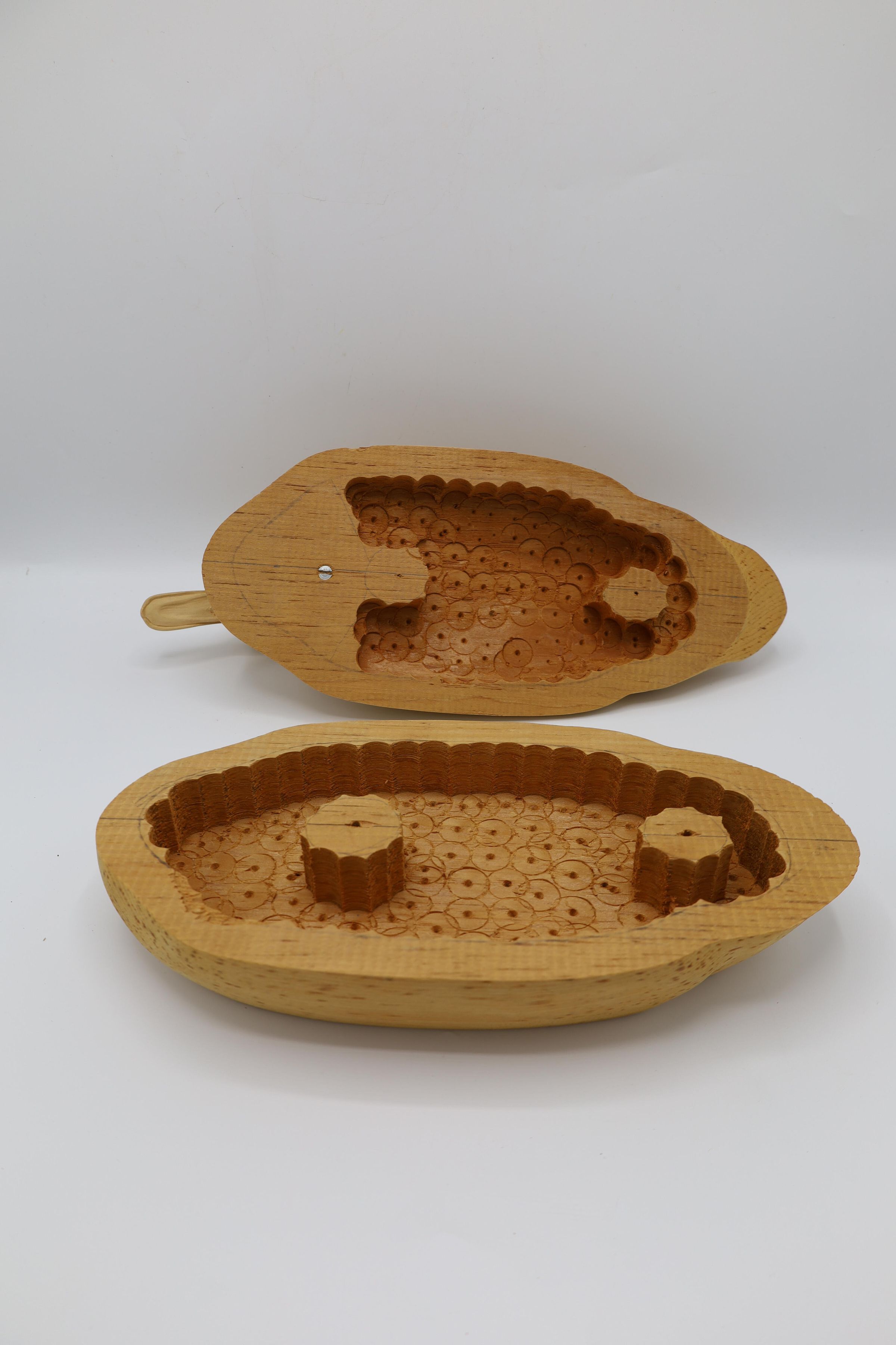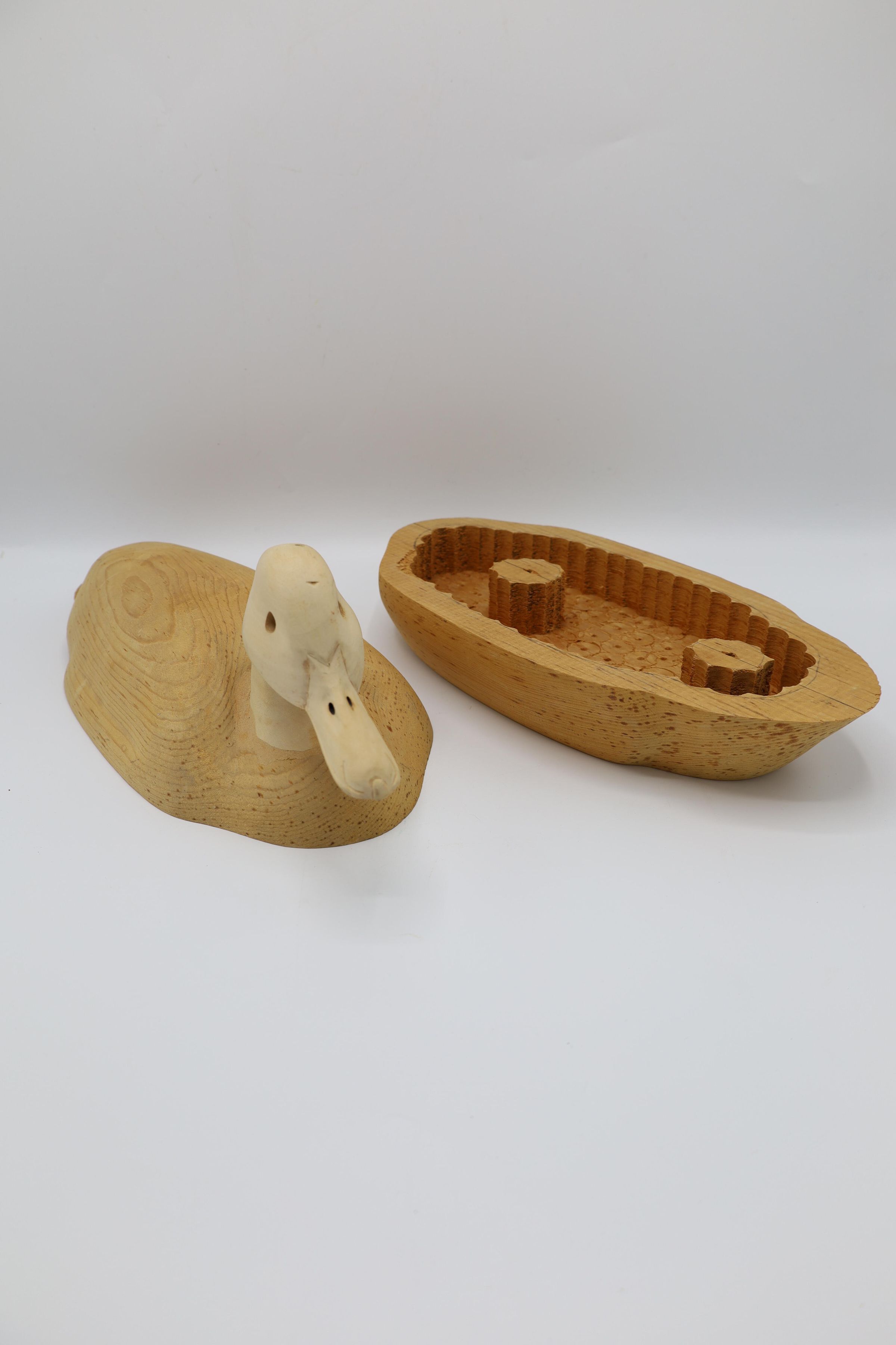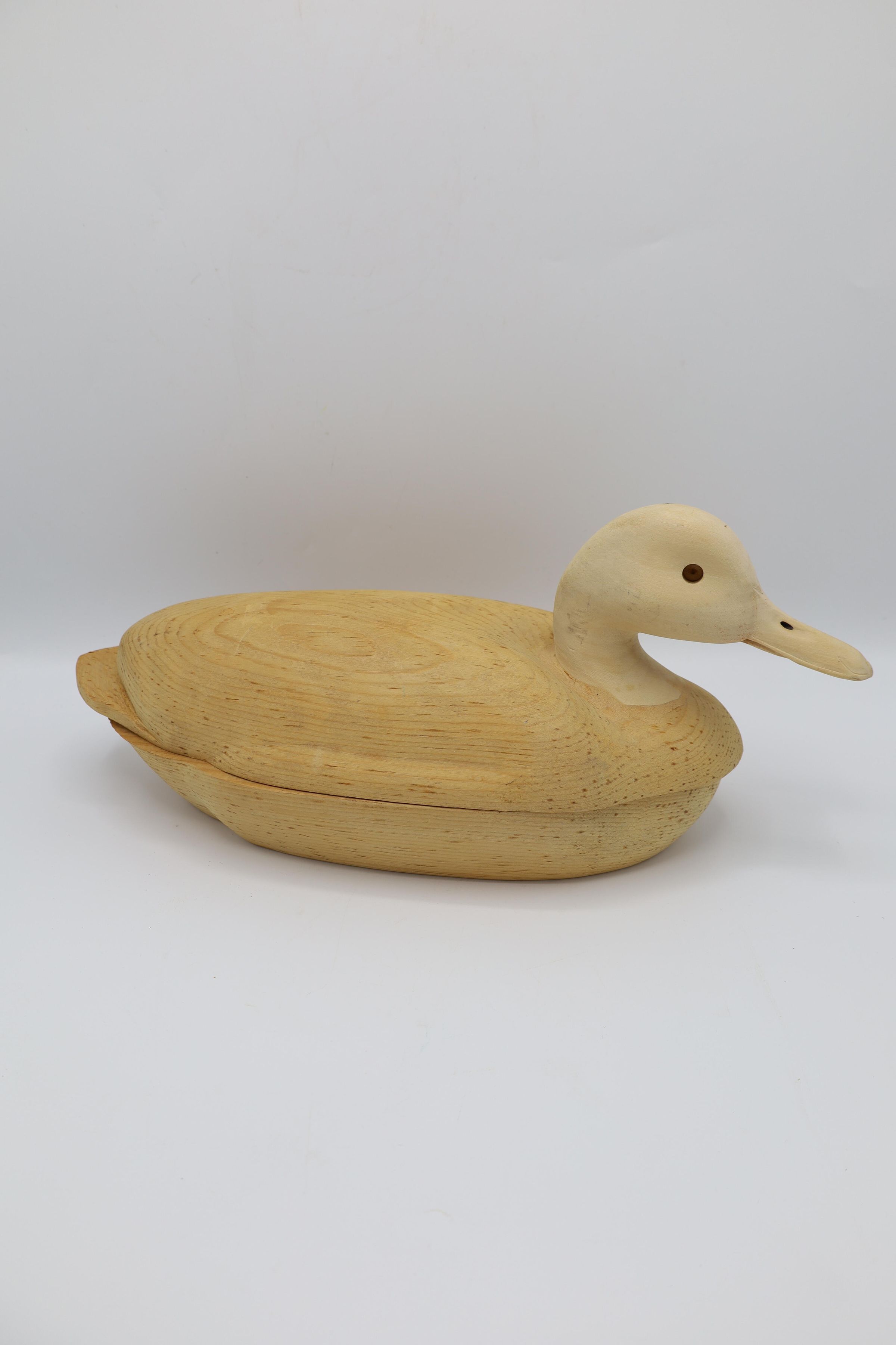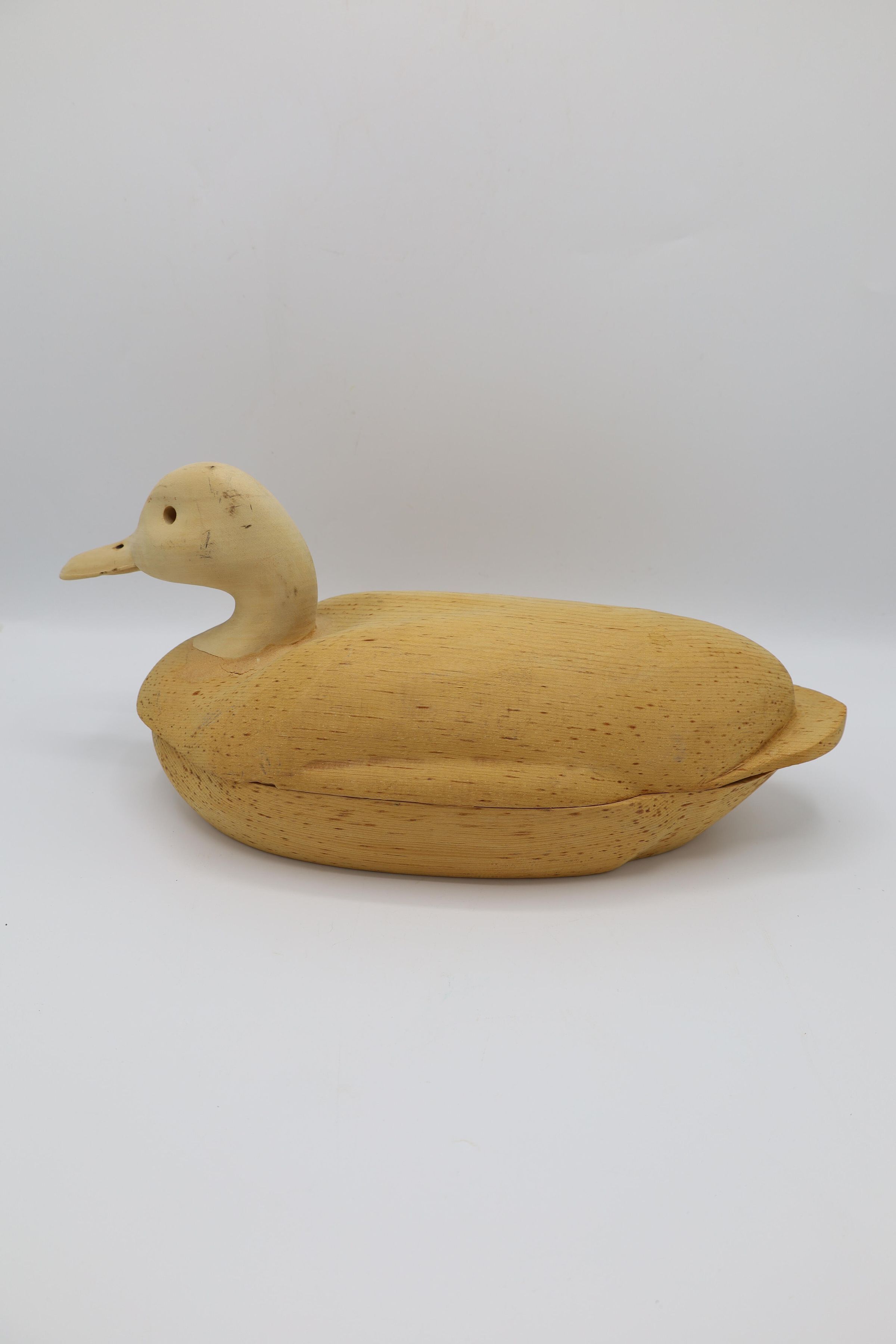 The third step of carving a decoy includes hollowing out the body to keep the decoy light and hollowing out the eyes and nostrils of the bird's head.Collection