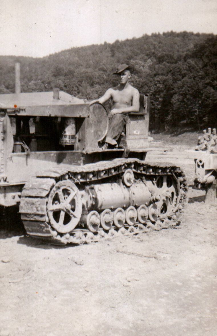 Walter Lawson of Company 503 sits in the driving seat of a bulldozer. The Civilian Conservation Corps (CCC) allowed enrollees to gain experience in a variety of trades, like operating construction equipment, to boost their chances of employment after their period of service concluded.