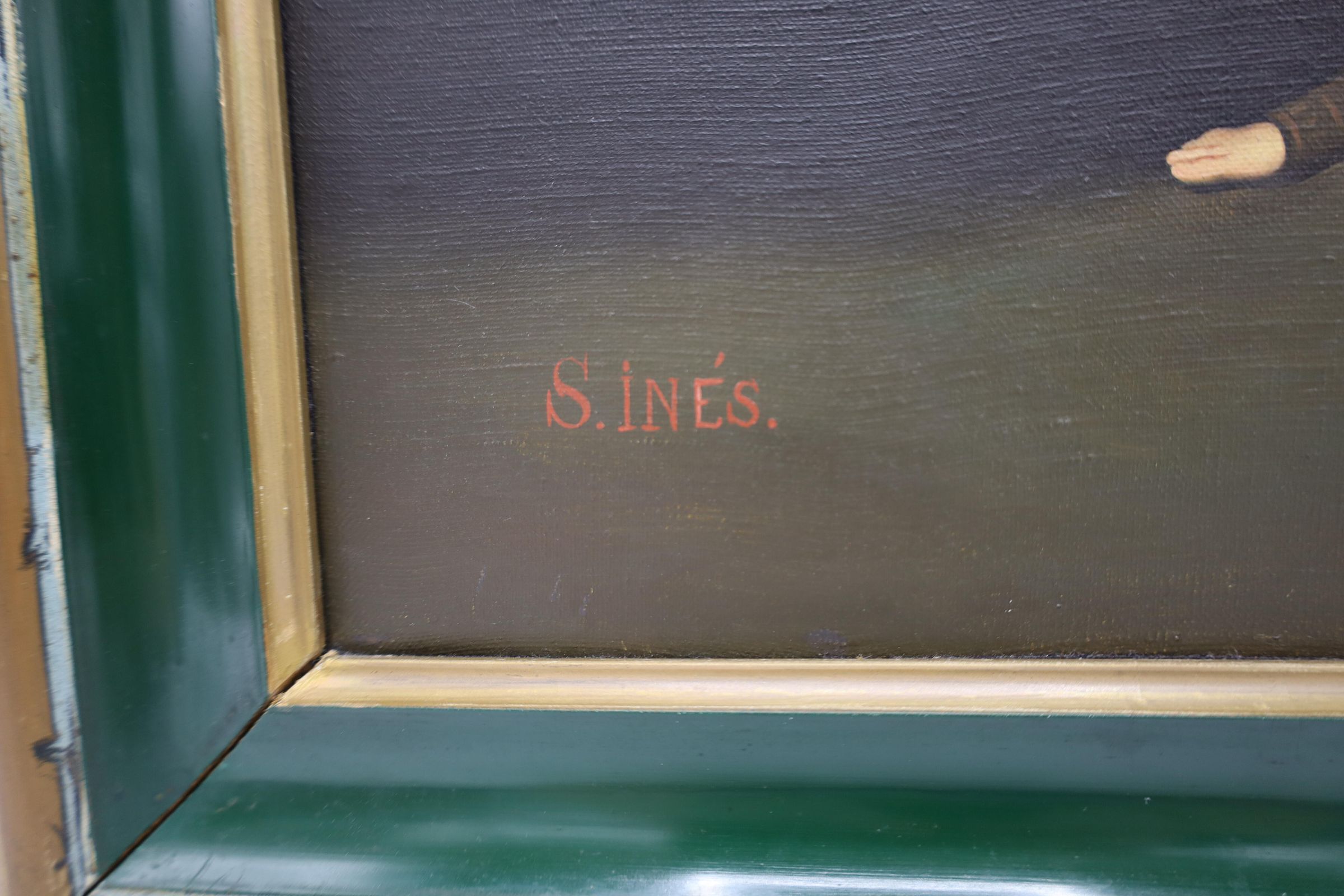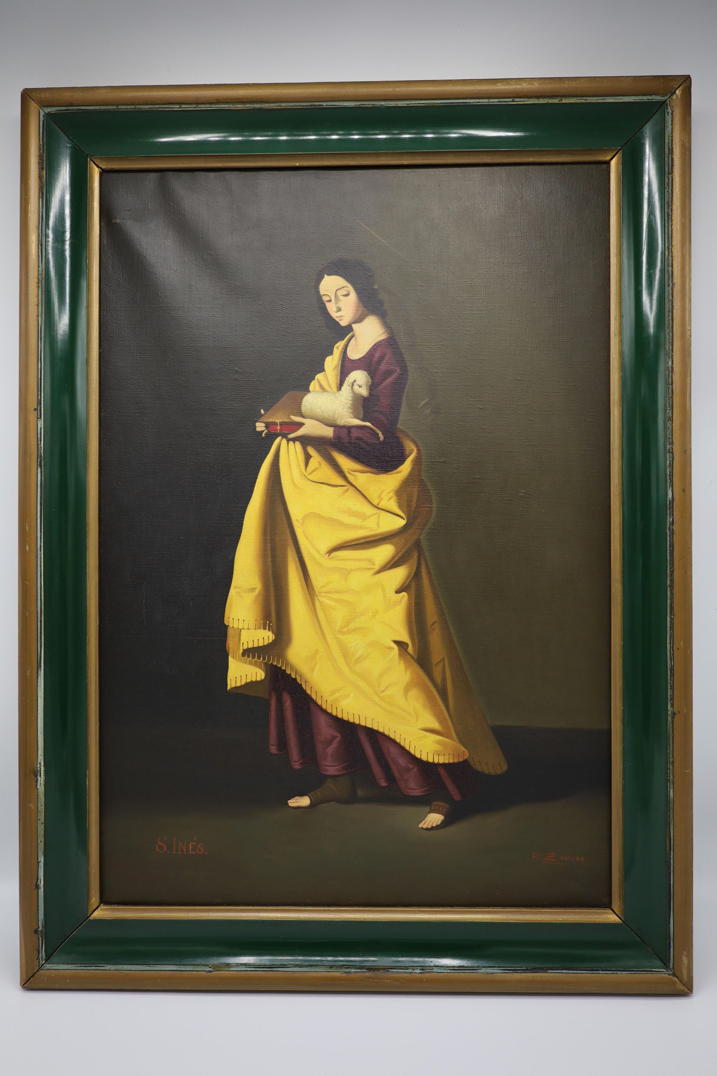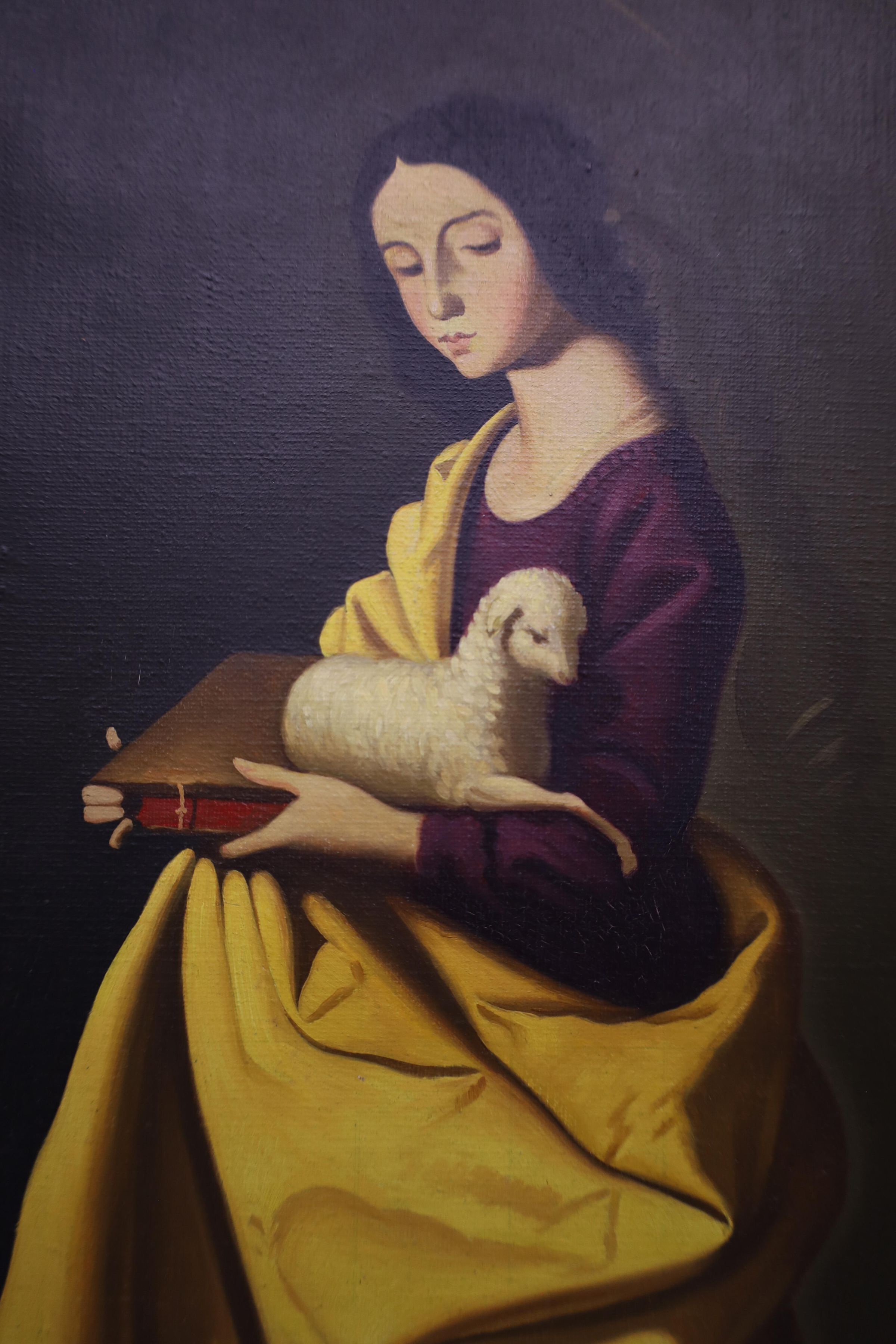 One of the eight paintings in Jose de Zamora's series The Eight Ladies in Waiting, this painting depicts Saint Ines, or Agnes of Rome. She is shown here with a lamb, a symbol of her purity. Zamora's series recreate those of Baroque artist Francisco de Zubaron.