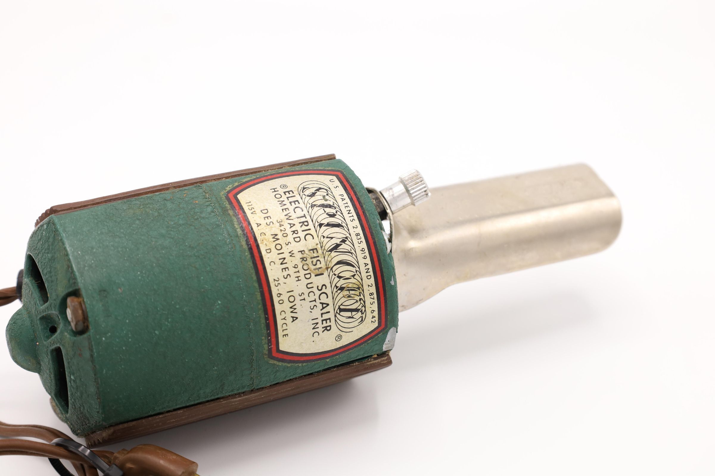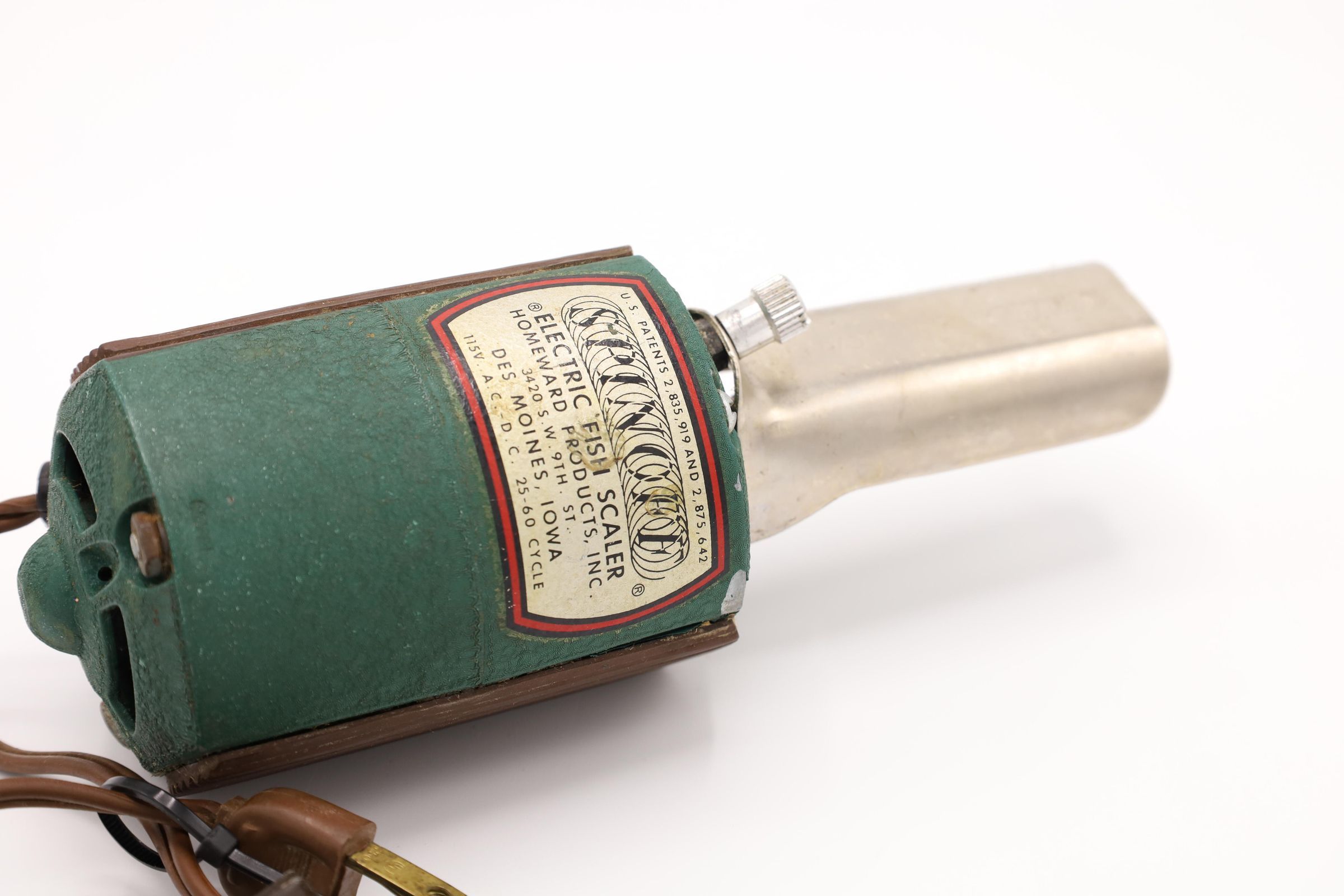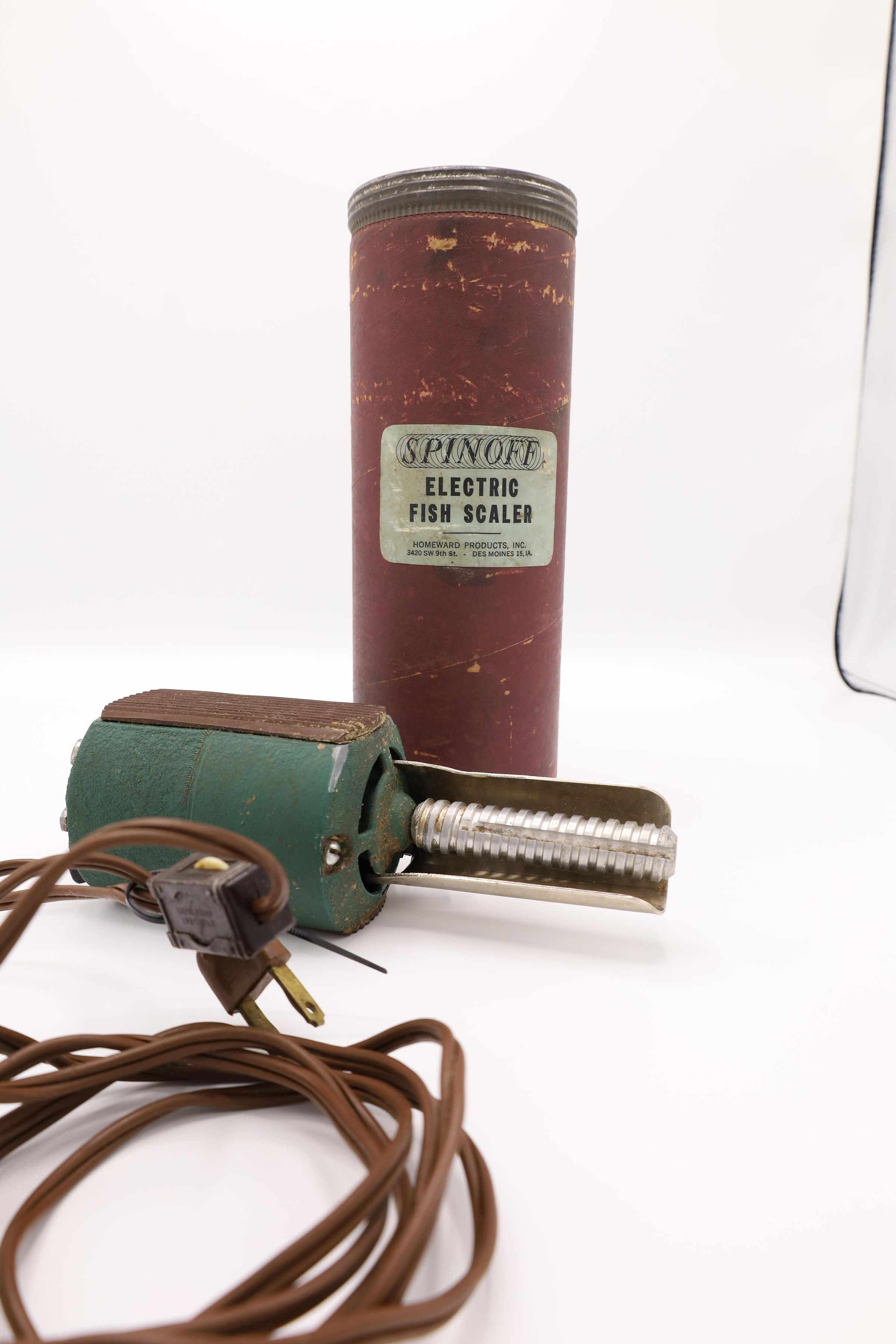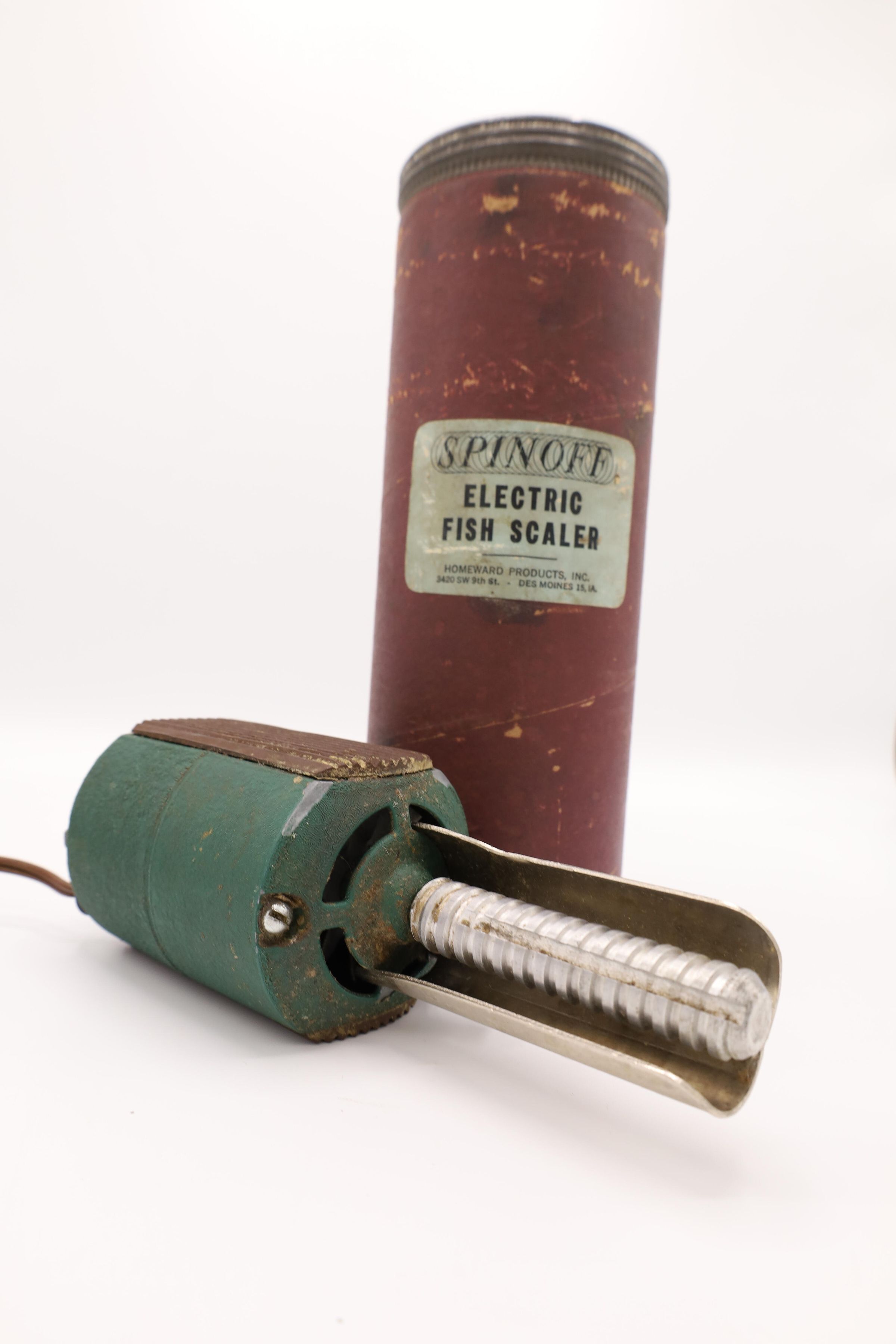 This electric fish scaler measures about 7 1/2" long and was manufactured by Homeward Products Inc. in Des Moines, IA. Homeward Products Inc was founded in 1954.Location