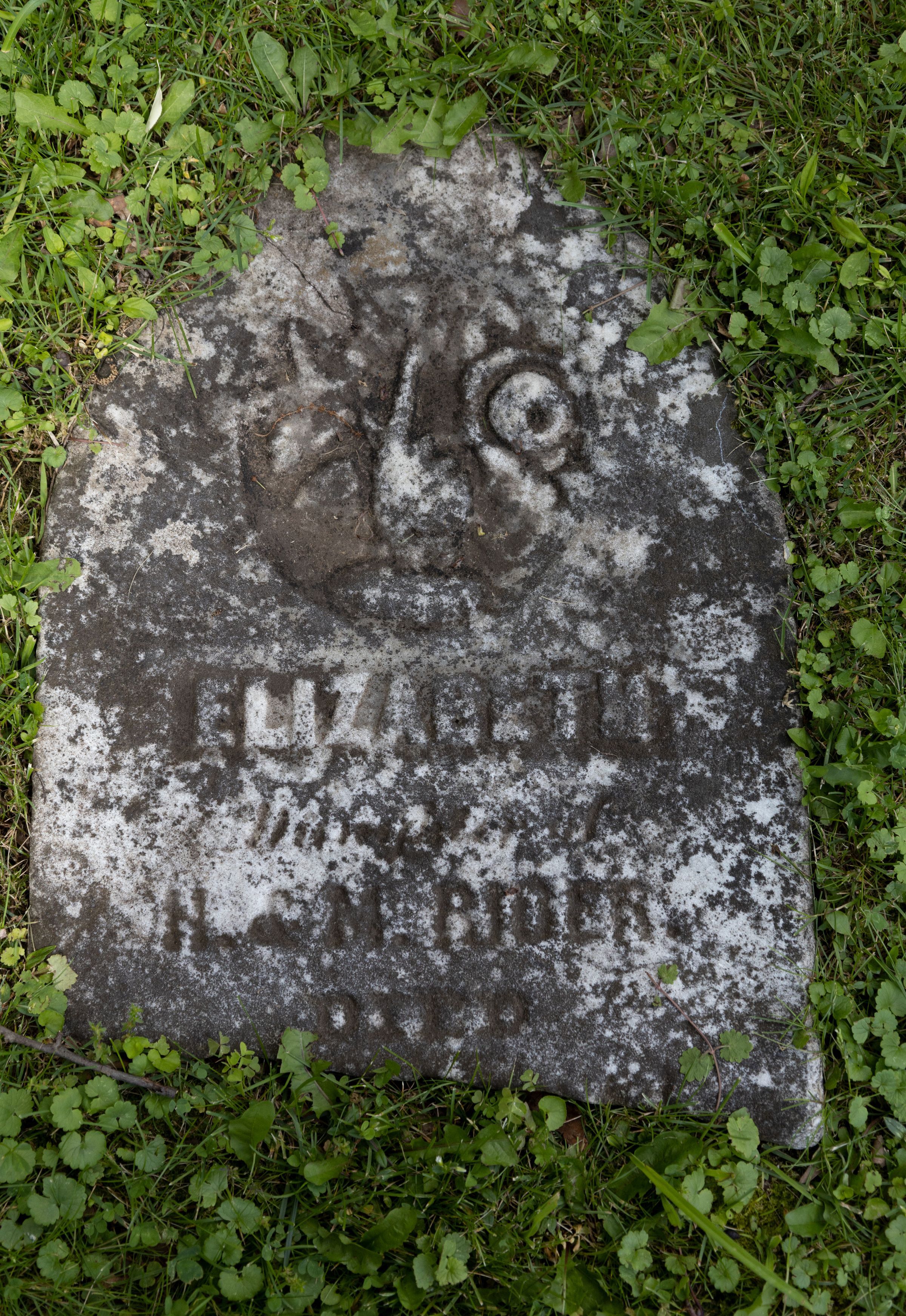 Elizabeth is the daughter of Henry Rider and Mary Ann Zimmerman Rider. Henry Rider and Mary Ann came to this county about A. D. 1823; Mr. Rider entered a quarter-section of land in the southeastern part of Monroe Township, which he improved and cultivated and on which he continued to reside as long as he lived; Henry died Jan. 15, 1867; Mary Ann died June 26, 1870; they are buried in the Schrack graveyard in Monroe Township. - This information was taken from https://archive.org/details/historyofrichlan00grah/page/n939/mode/2up?q=schrack
