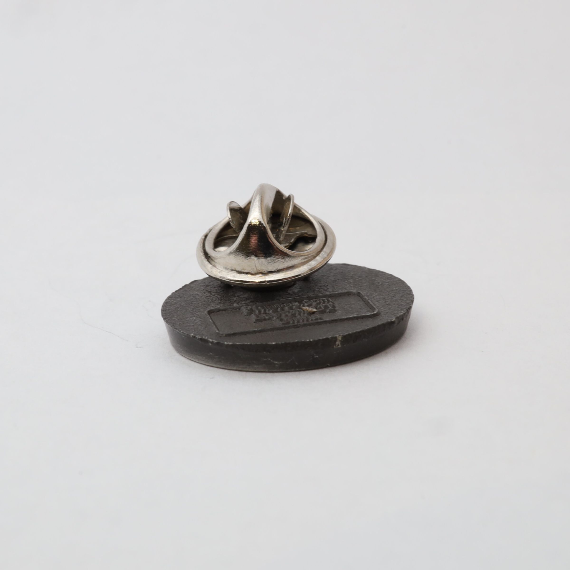 The back of this replica pin is darker and stamped CHINA, and the front of this pin is much shinier and a little larger than the original.Context