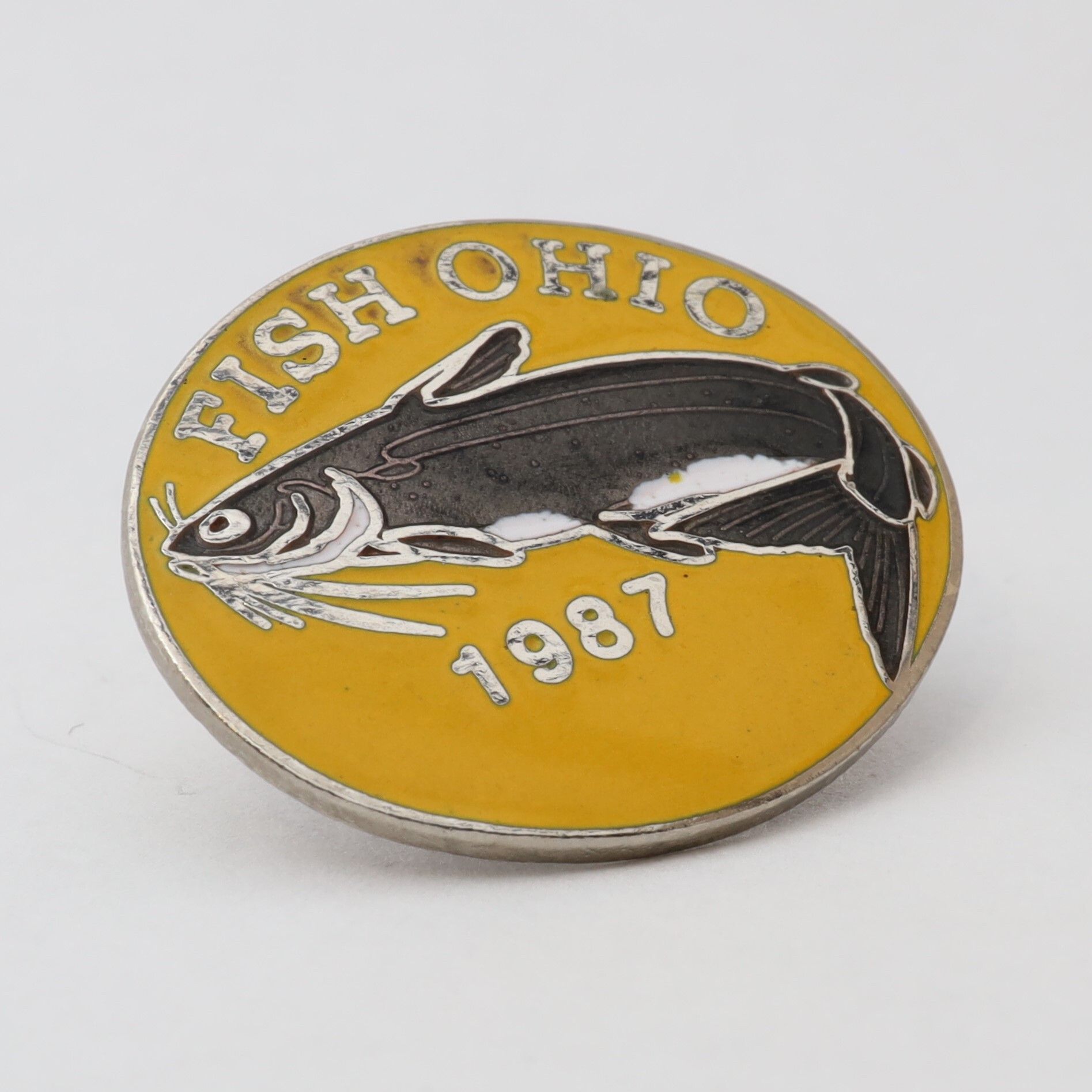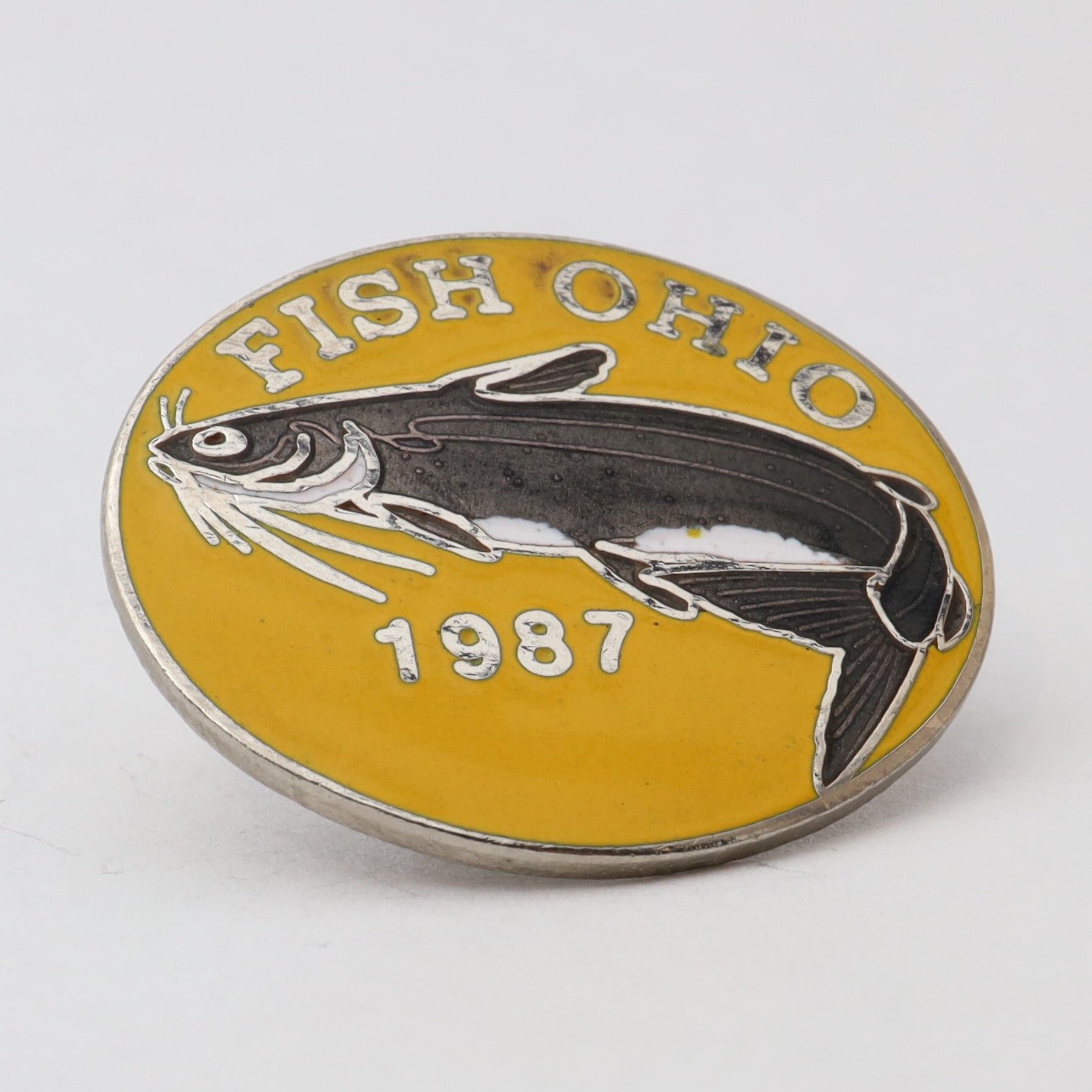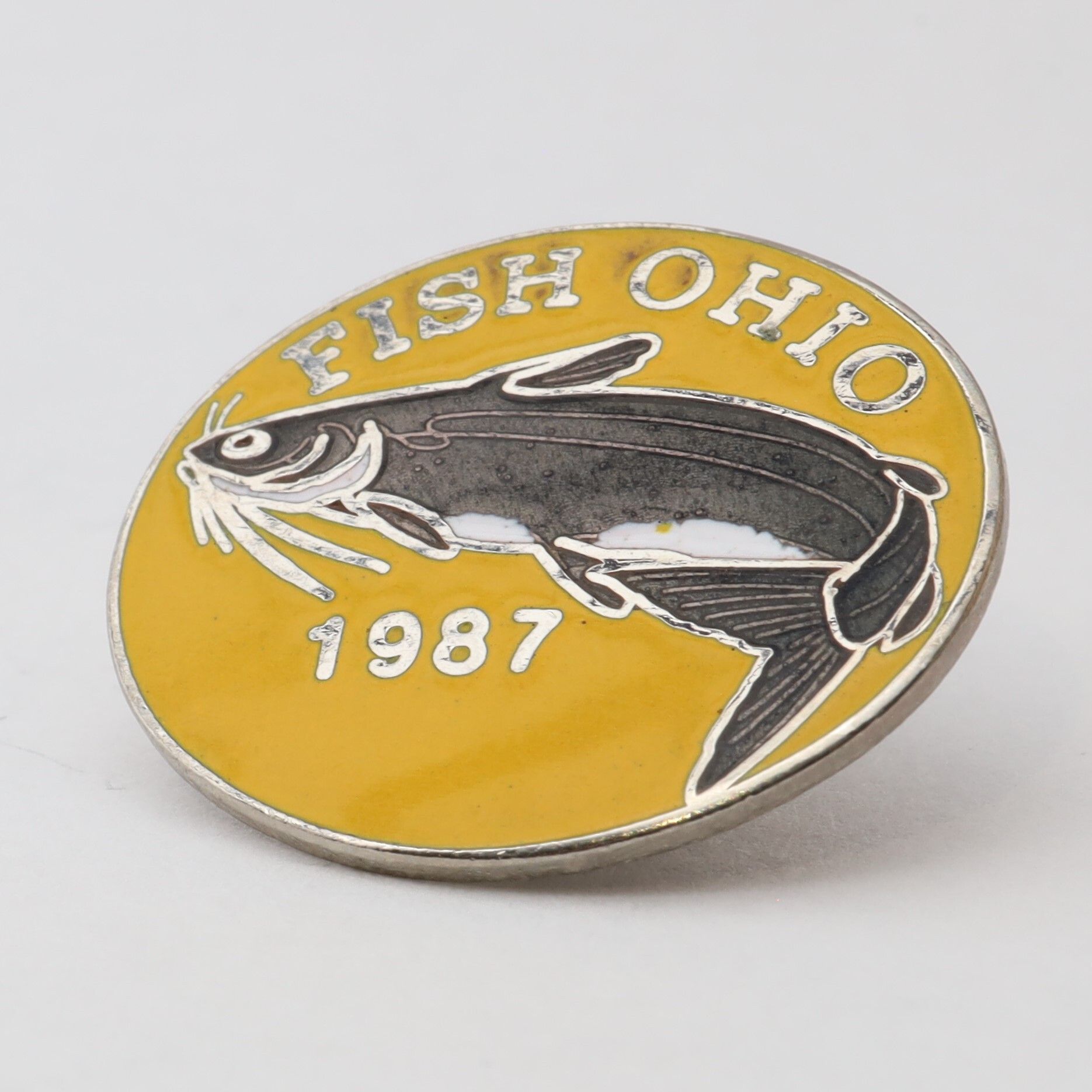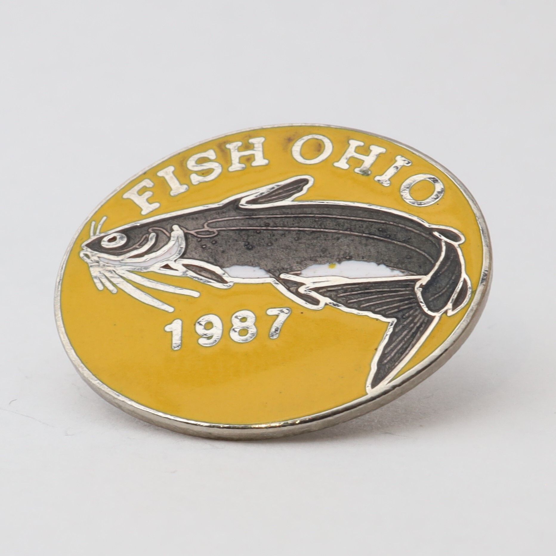 Variation of 1987 Fish Ohio pin featuring channel catfish.Context