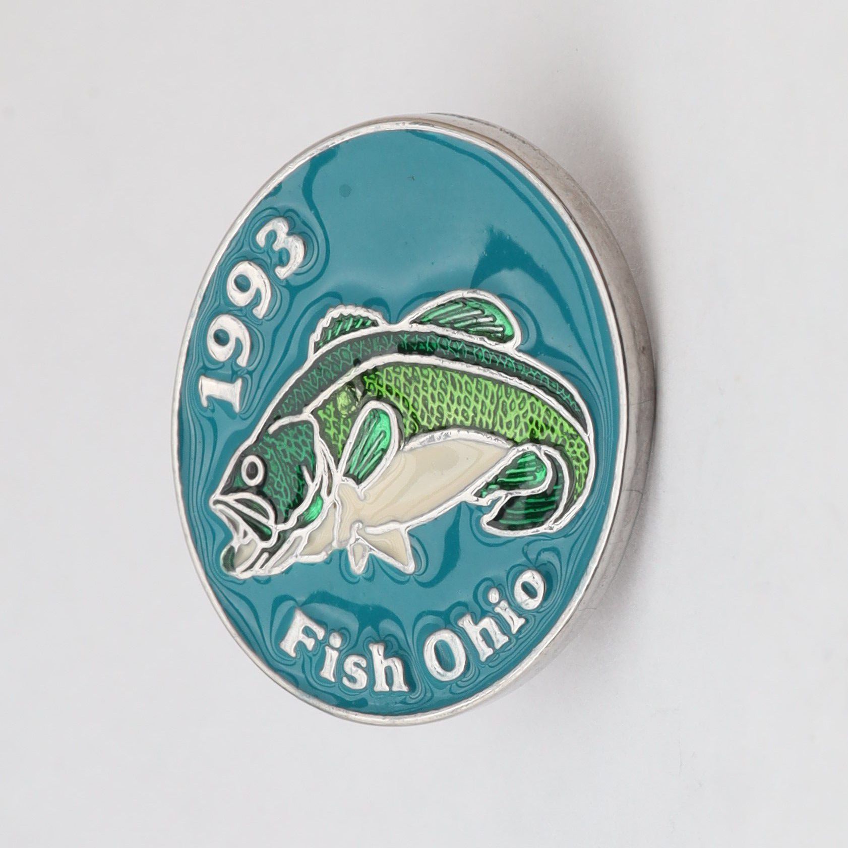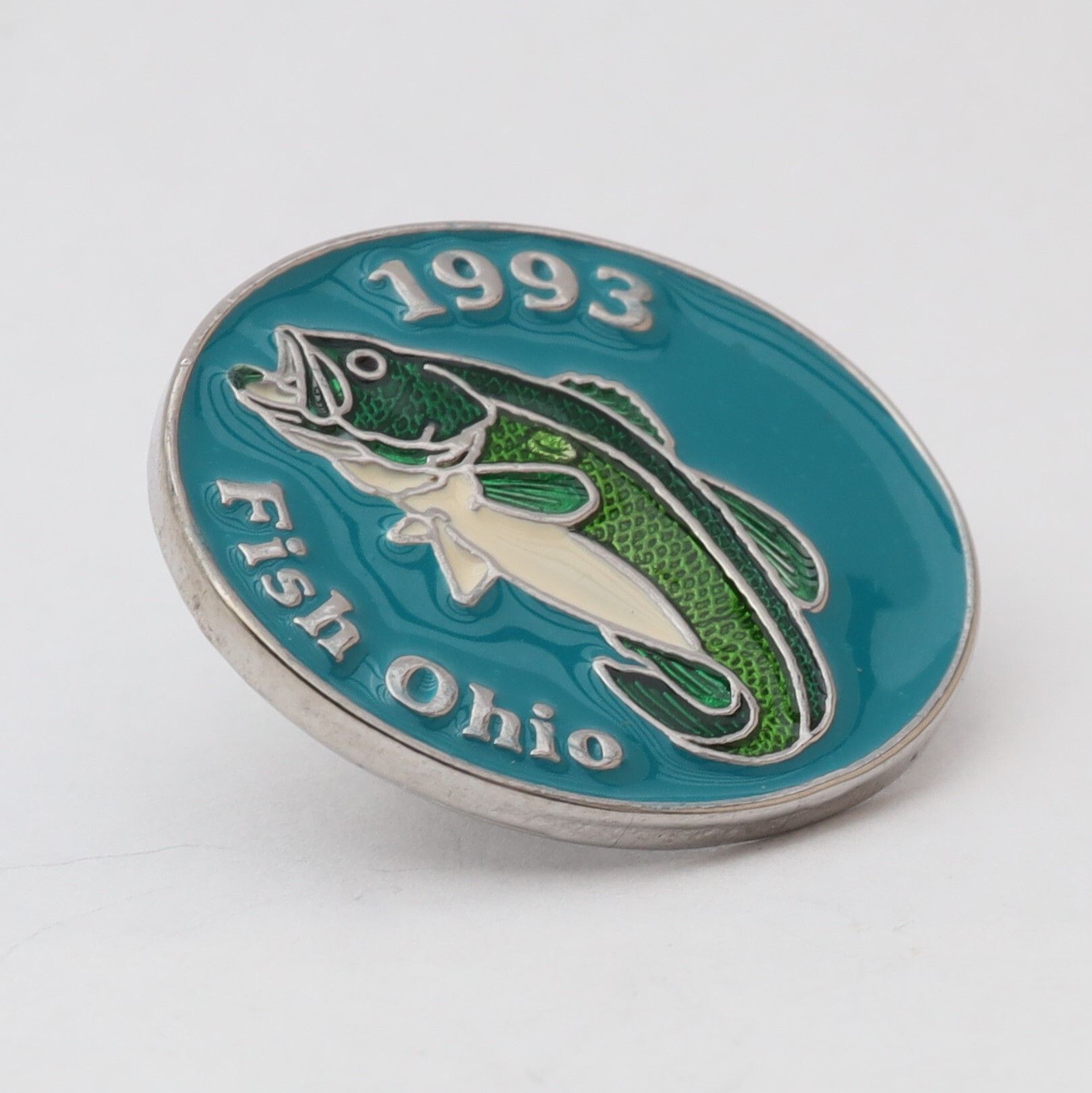 Prototype of the 1993 Fish Ohio pin featuring largemouth bass.Context