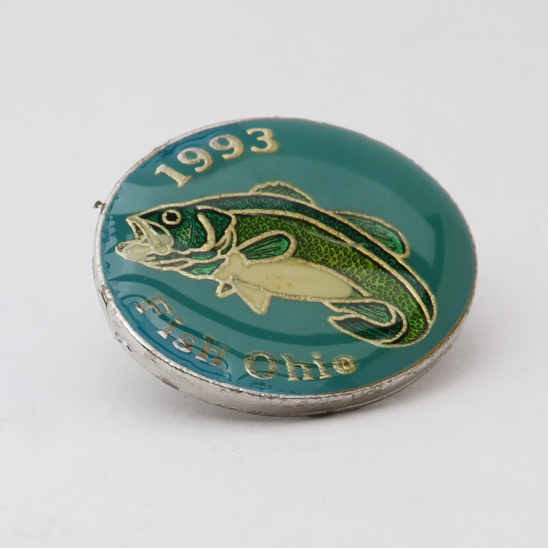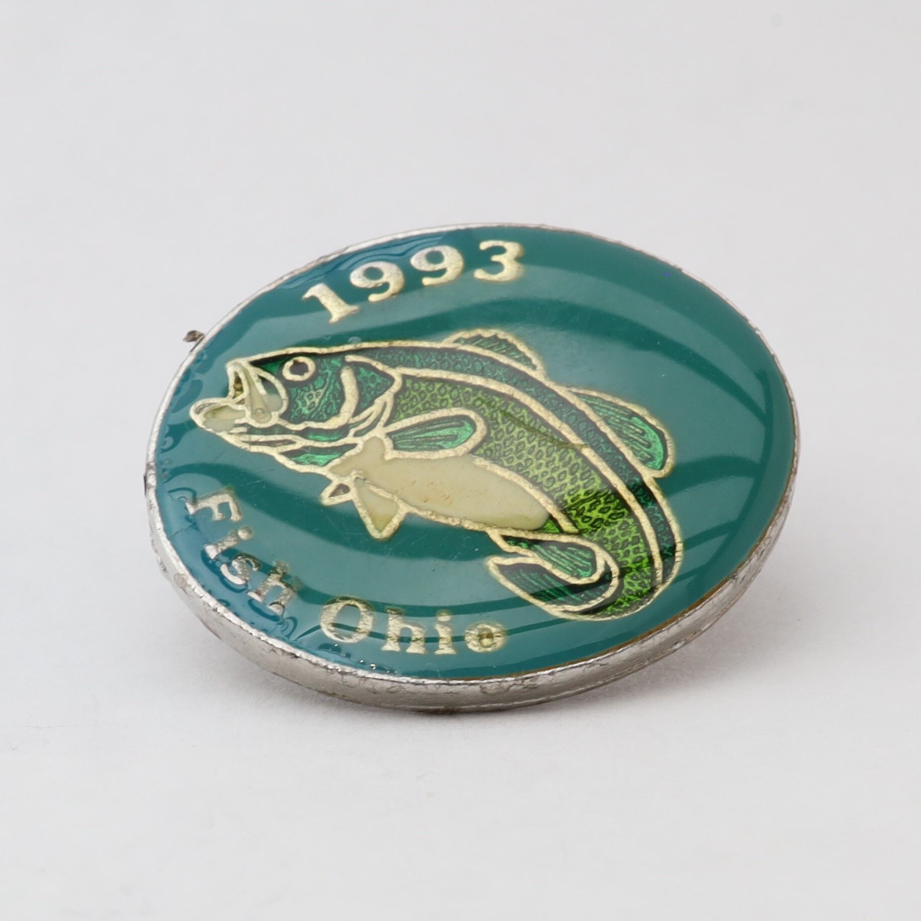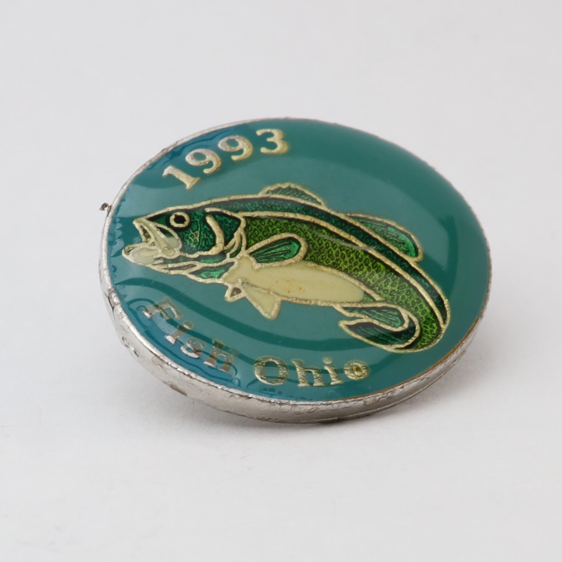 Variation of the 1993 Fish Ohio pin featuring largemouth bass.Context