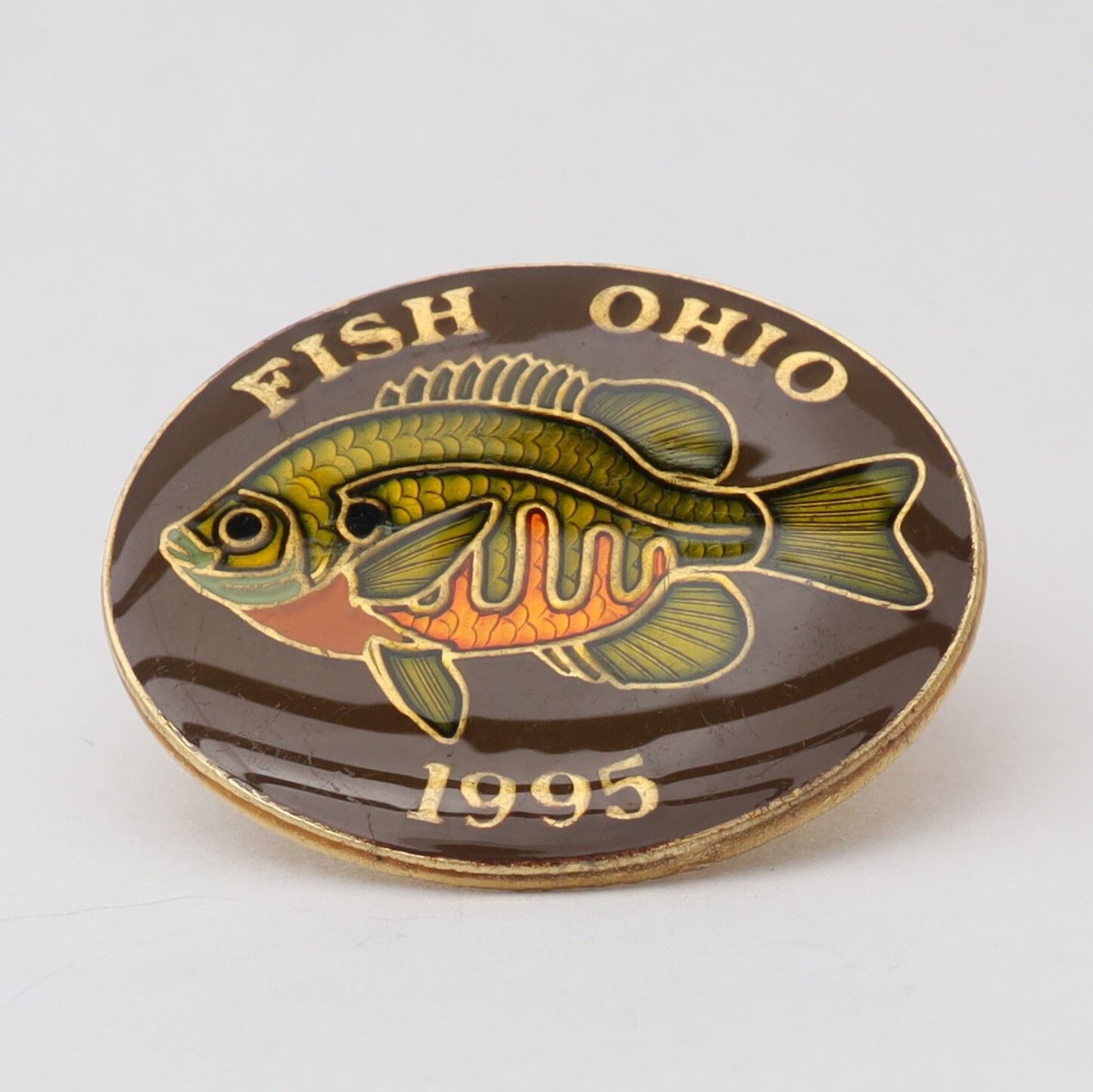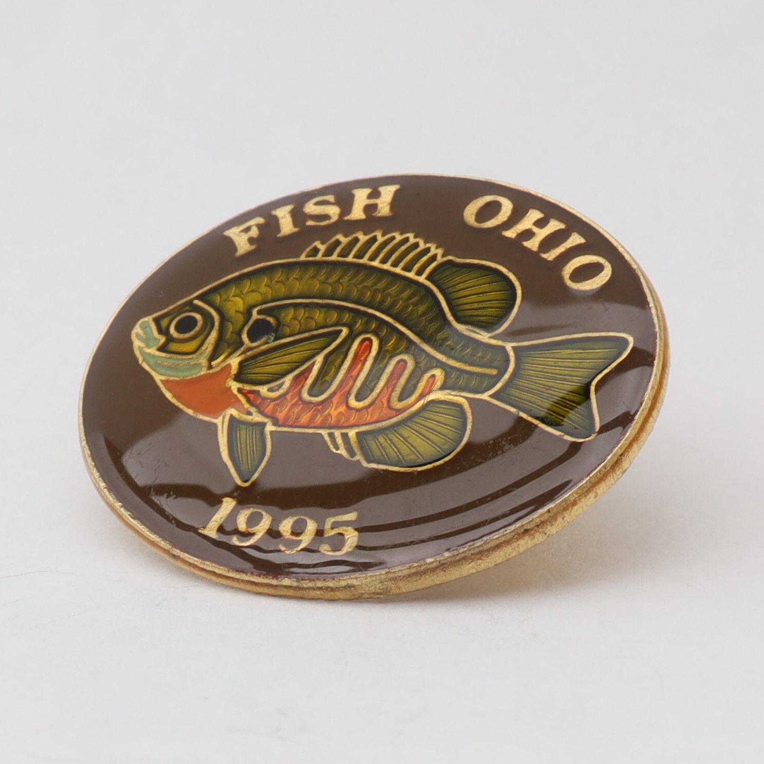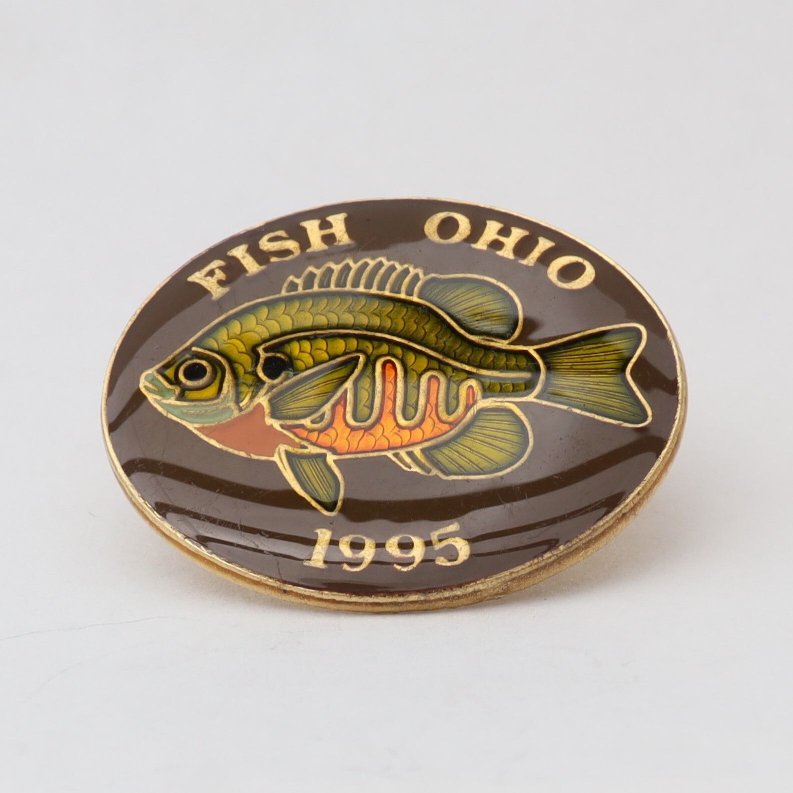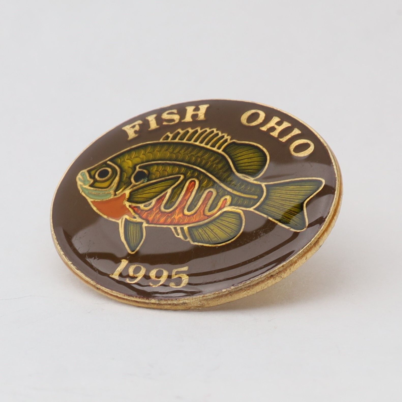 Prototype of the 1995 Fish Ohio pin featuring bluegill sunfish.Context