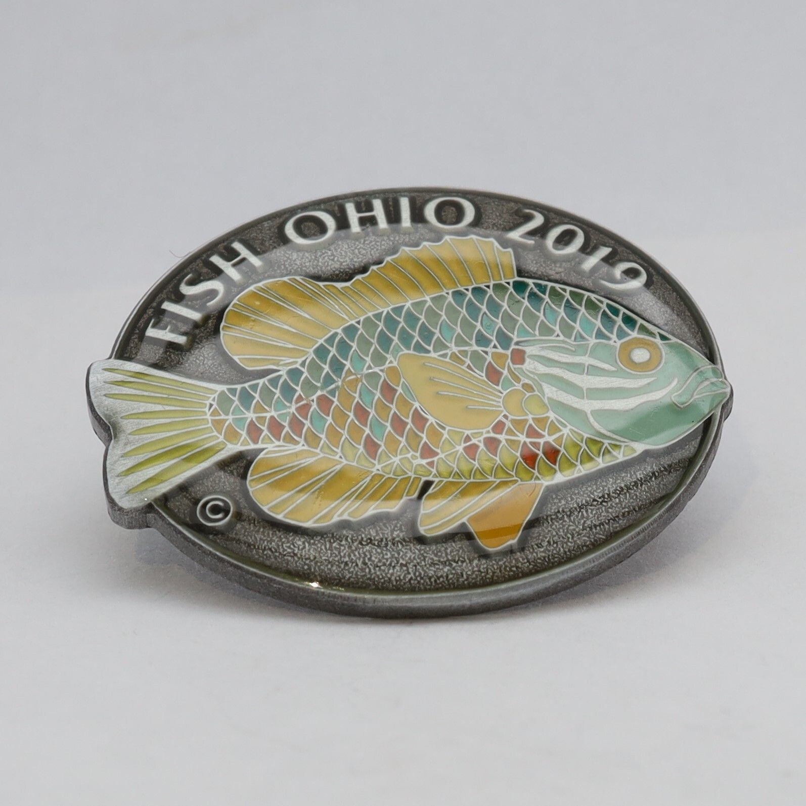 Each angler with a qualifying catch receives a collectible Fish Ohio lapel pin. Each year’s pin has a different species of fish on it, along with the year, so the pin that the angler receives won’t necessarily have the same fish on it as the qualifying fish caught. Fish must be taken by legal angling and not from pay lakes.