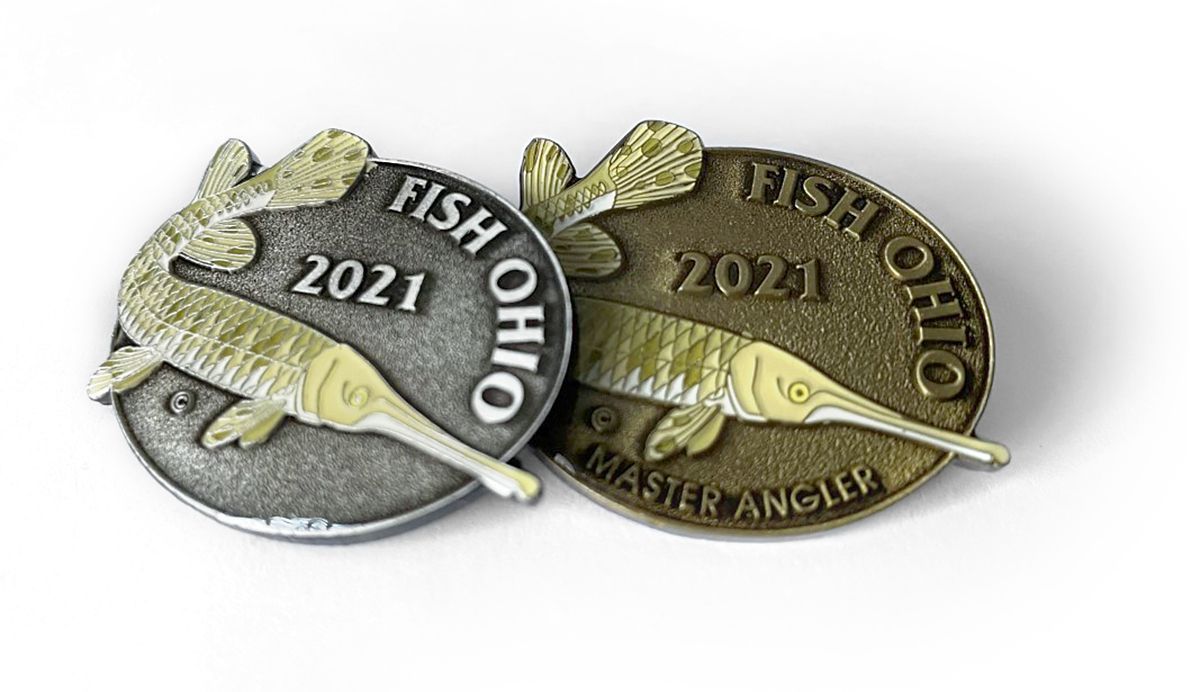 Each angler with a qualifying catch receives a collectible Fish Ohio lapel pin. Each year’s pin has a different species of fish on it, along with the year, so the pin that the angler receives won’t necessarily have the same fish on it as the qualifying fish caught. Fish must be taken by legal angling and not from pay lakes.