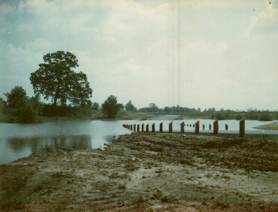 The waters of Delaware Lake have risen to cover Camp Road inside of Delaware State Park on May 31, 1968.
