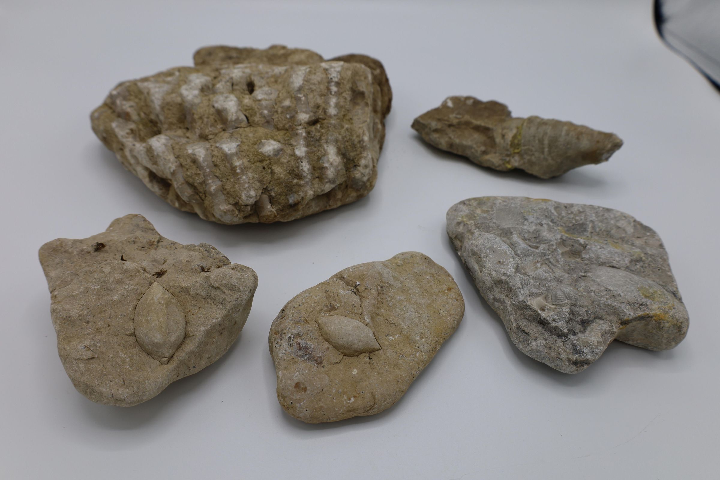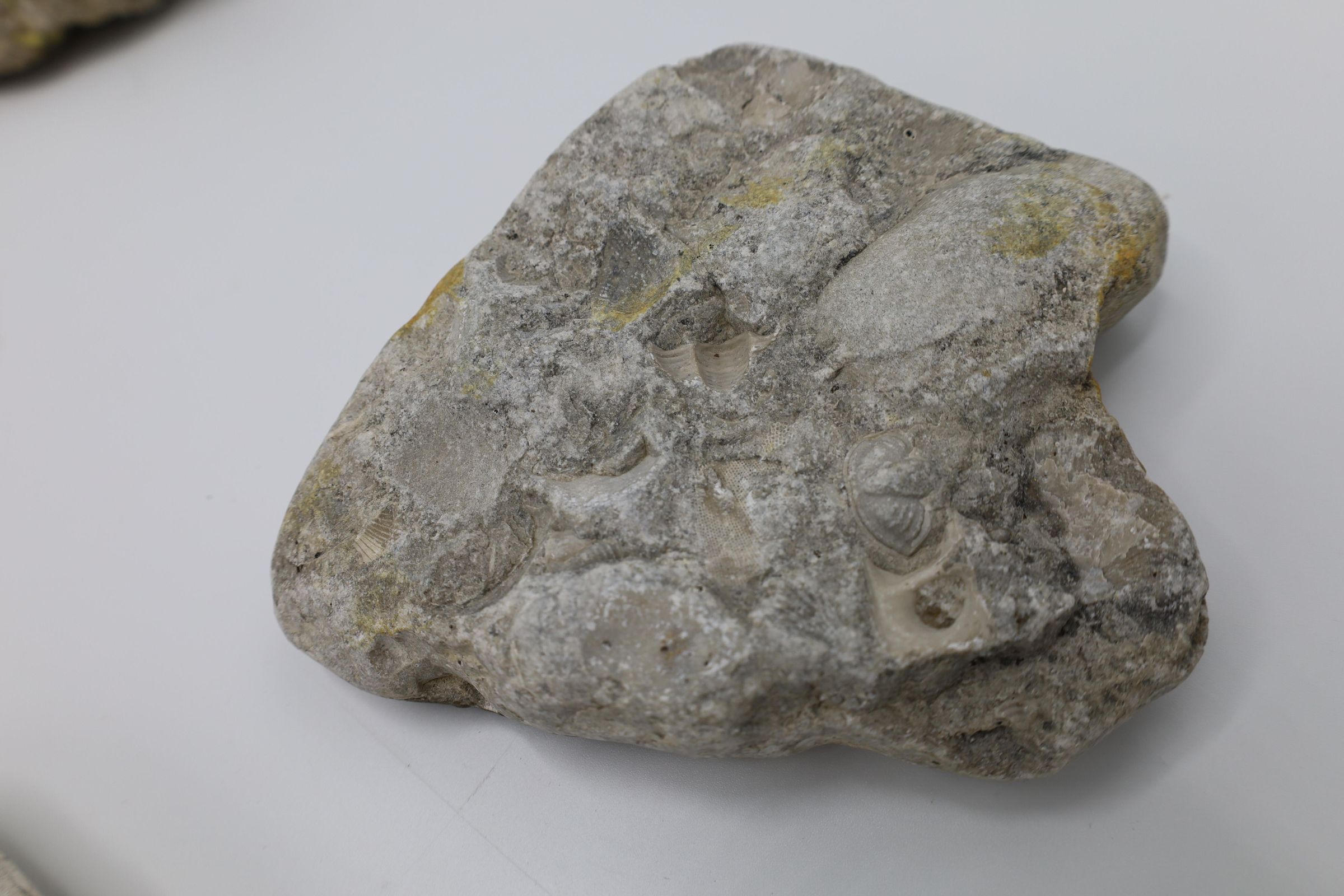 This is a fossiliferous rock containing trilobites among other organisms. The trilobite Isotelus maximus is Ohio’s official State Invertebrate Fossil.