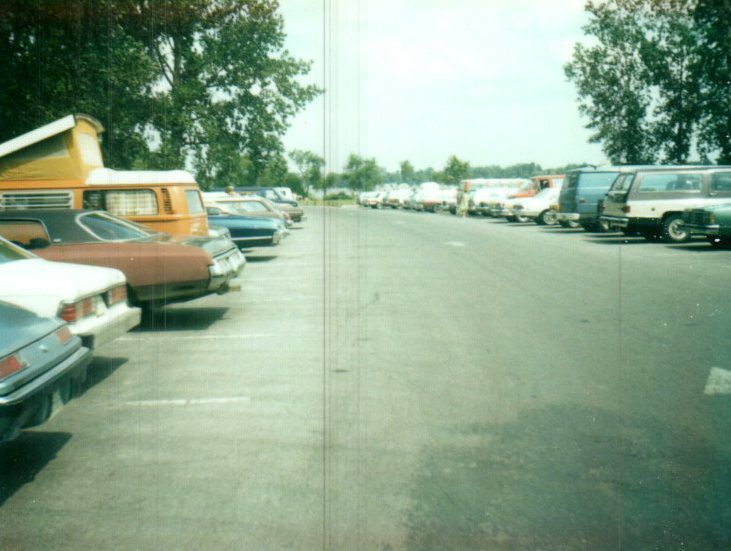 The parking lot on Fox Island is crowded on July 3, 1983. Note the orange pop-up camper bus on the right.