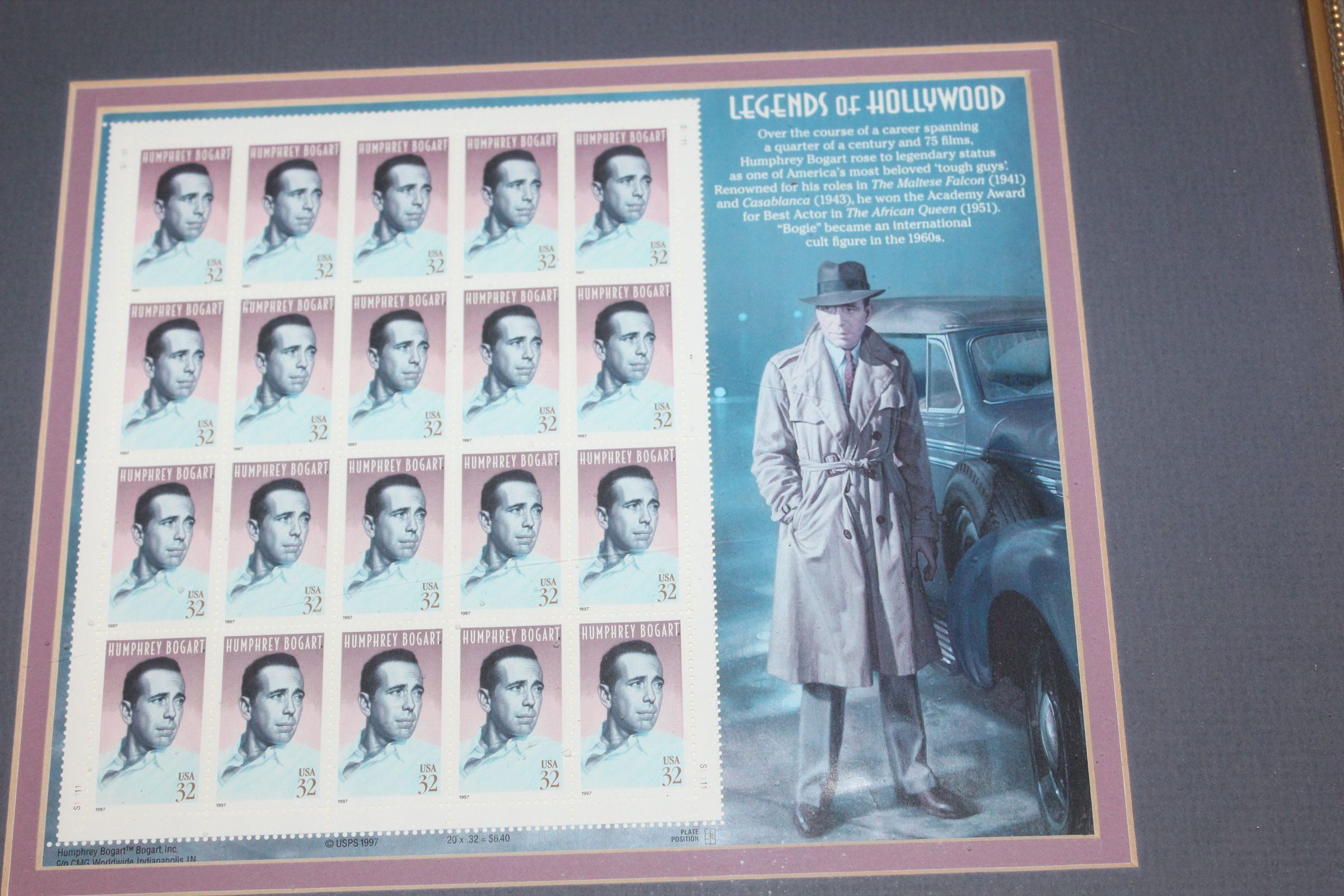 Framed Legends of Hollywood Humphrey Bogart StampsEntry/Object ID
