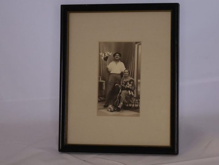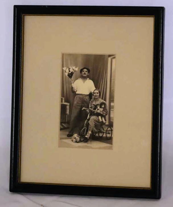 This photograph shows something of their relationship. White sits on a tricycle holding a dark haired doll while Hawkins holds a bouquet of flowers behind her. Hawkins rests his hand on White's shoulder, and both appear happy and smiling.Location