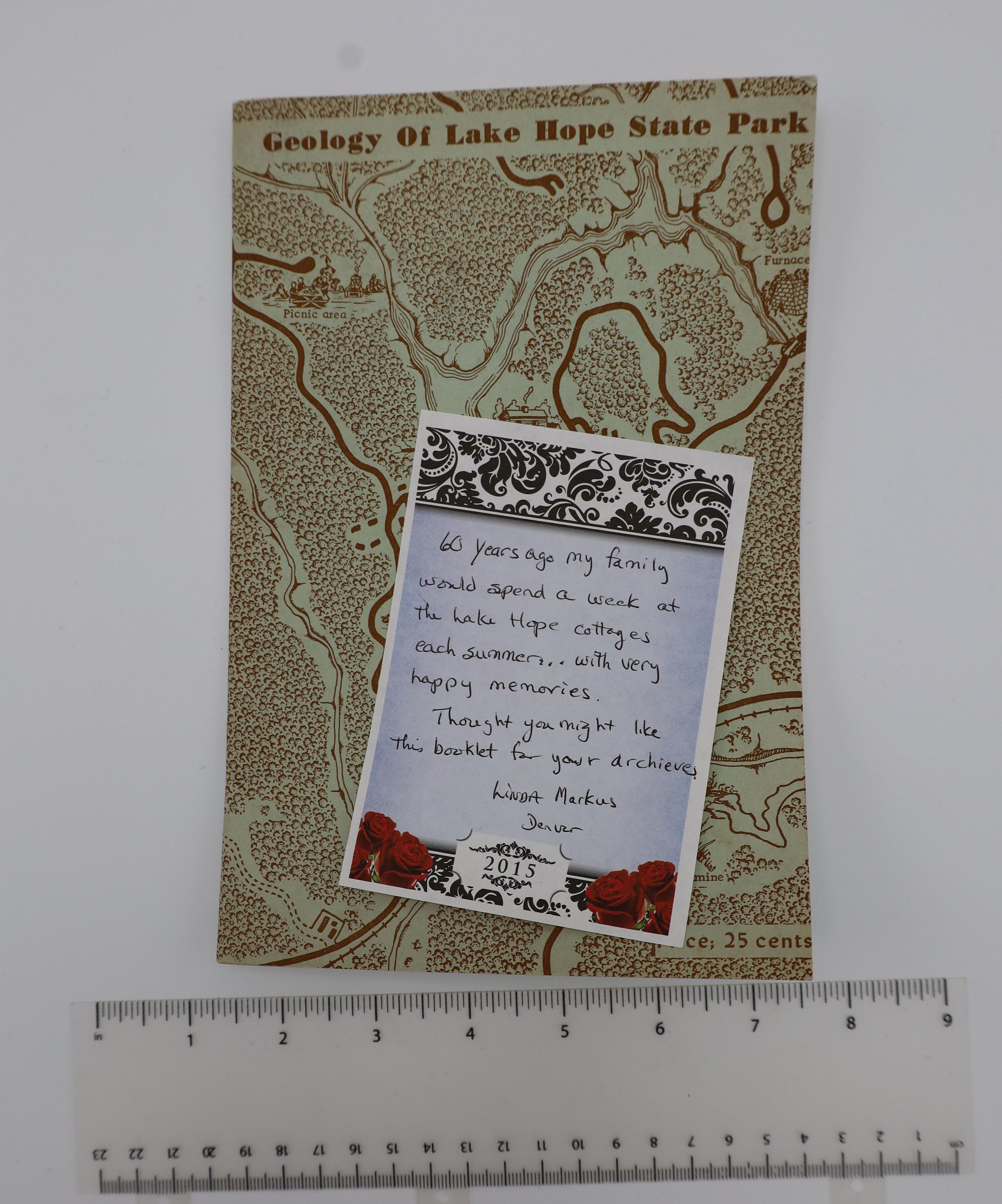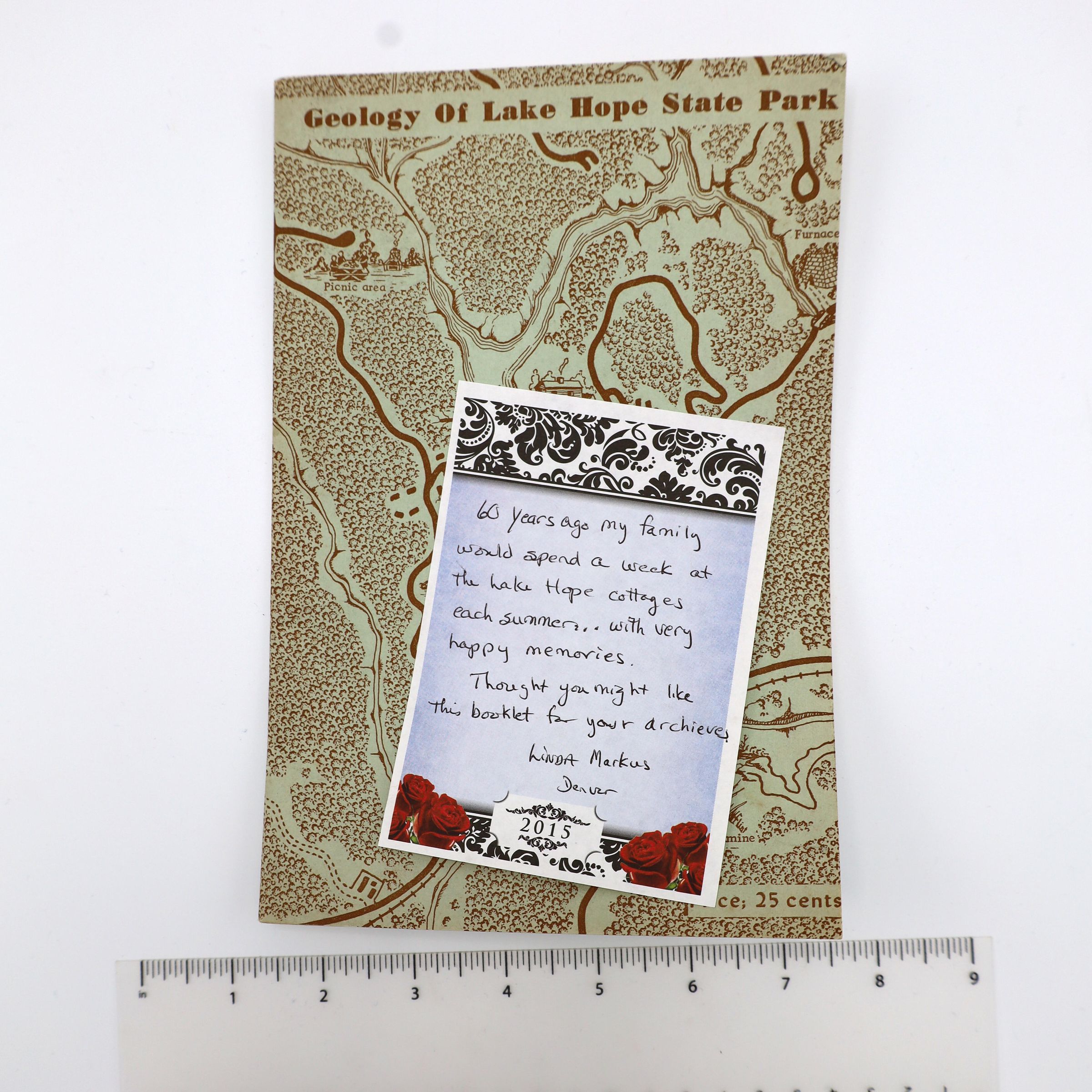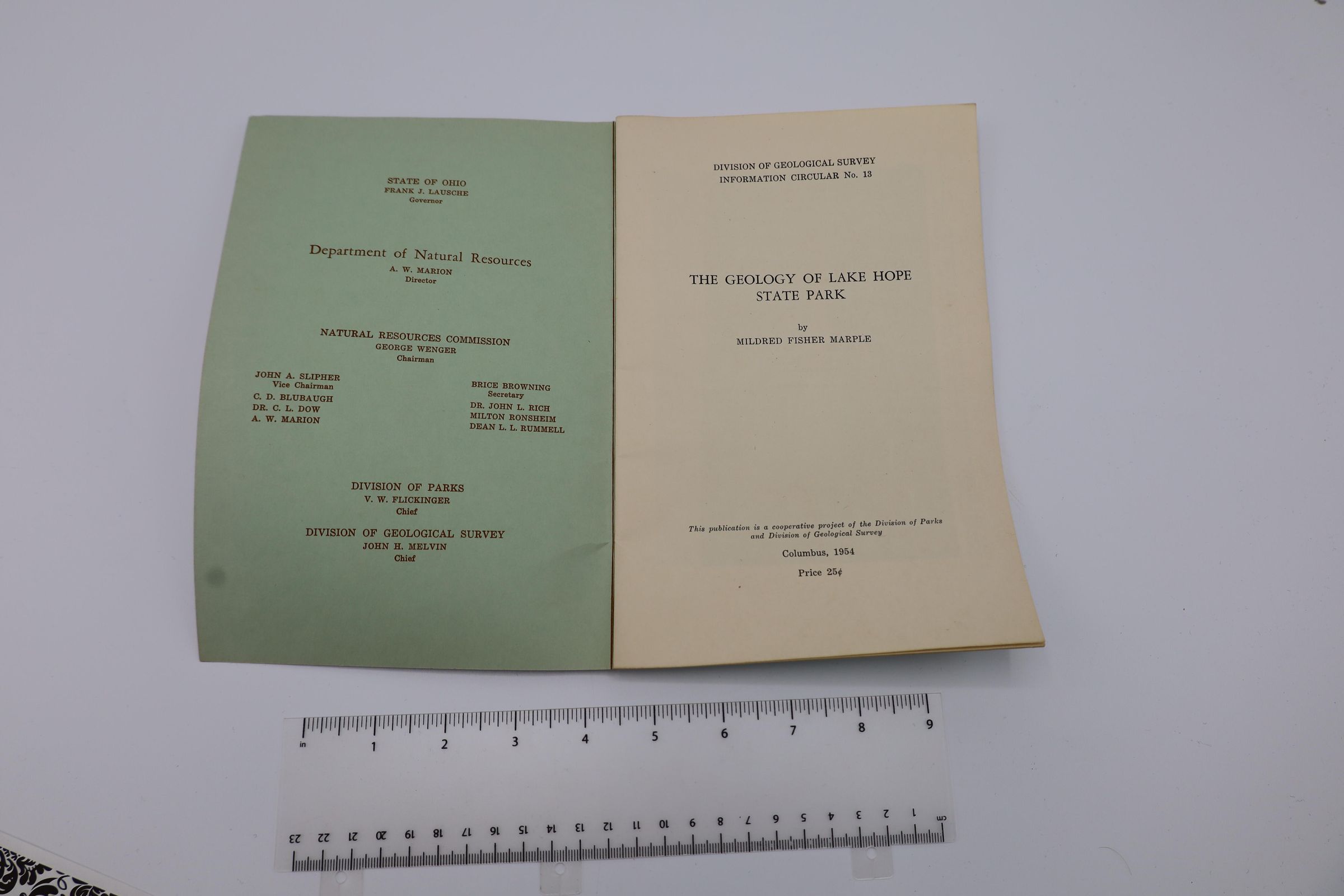 Pamphlet The Geology of Lake Hope State Park by Mildred Fisher Marple Division of Geological Survey 1954. State of Ohio Department of Natural Resources Division of Geological Survey. Information Circular No. 13. Donated by Linda Markus.