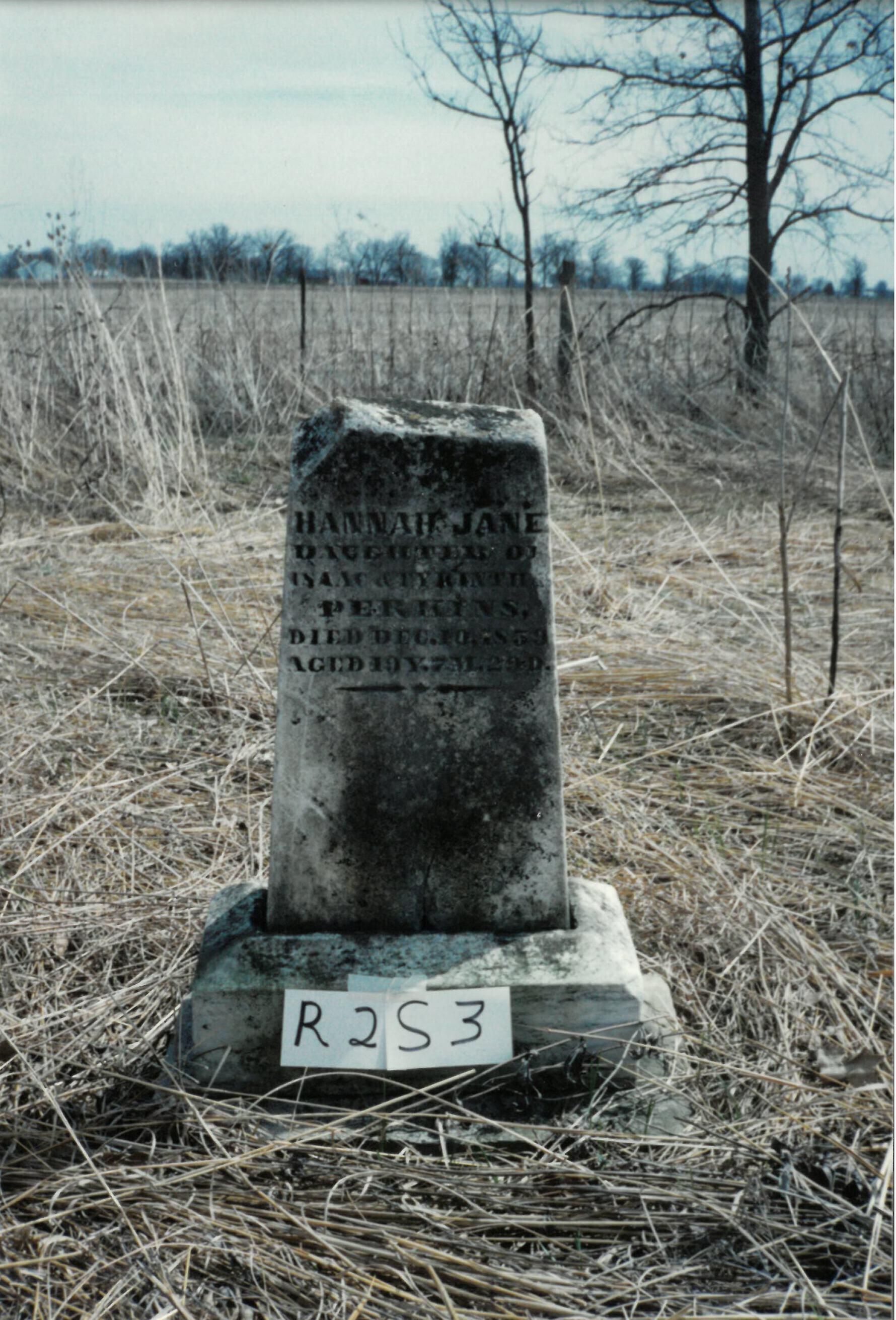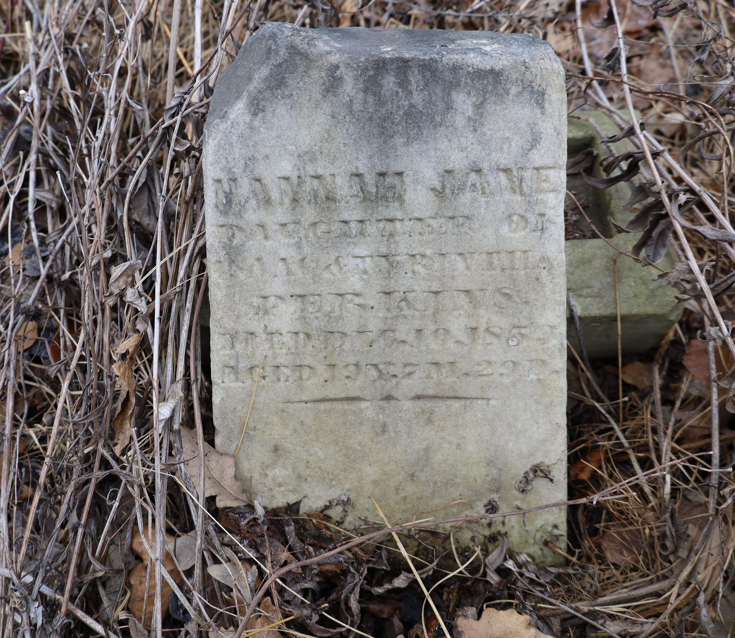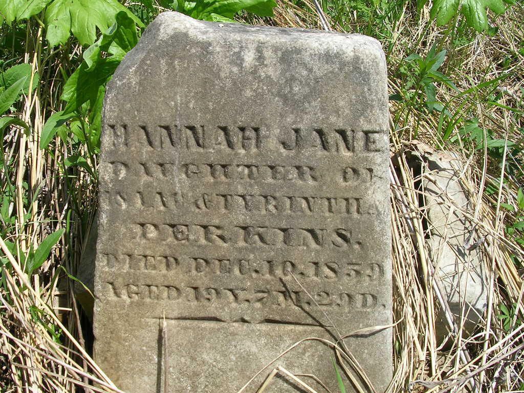 HANNAH JANE Daughter of Isaac & Tyrintha Perkins Died Dec. 10. 1859. Aged 19y. 2m. 29d.