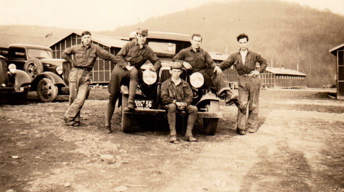 Five men from Civilian Conservation Corps (CCC) Company 503 pose for a photograph with one of the government vehicles assigned to Camp Pike. CCC Enrollees were permitted to visit local towns for entertainment on Saturday nights. Perhaps these men later drove this vehicle into the nearby town of Chillicothe.