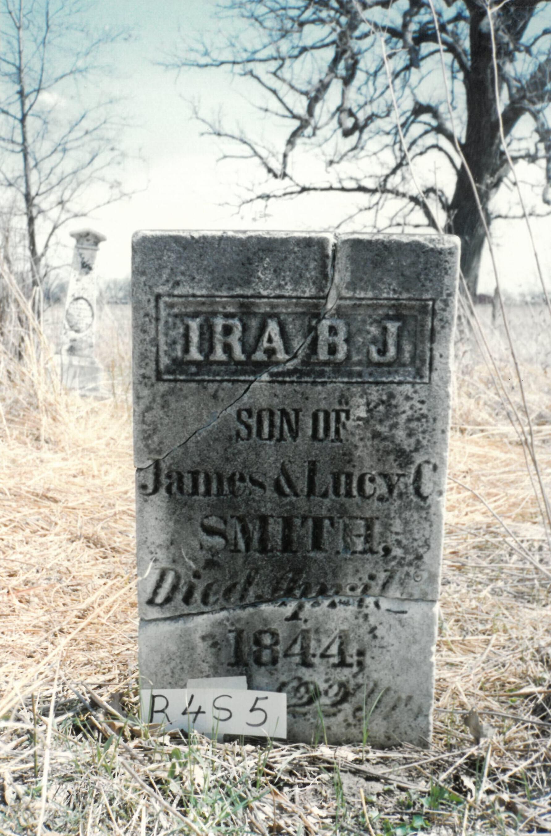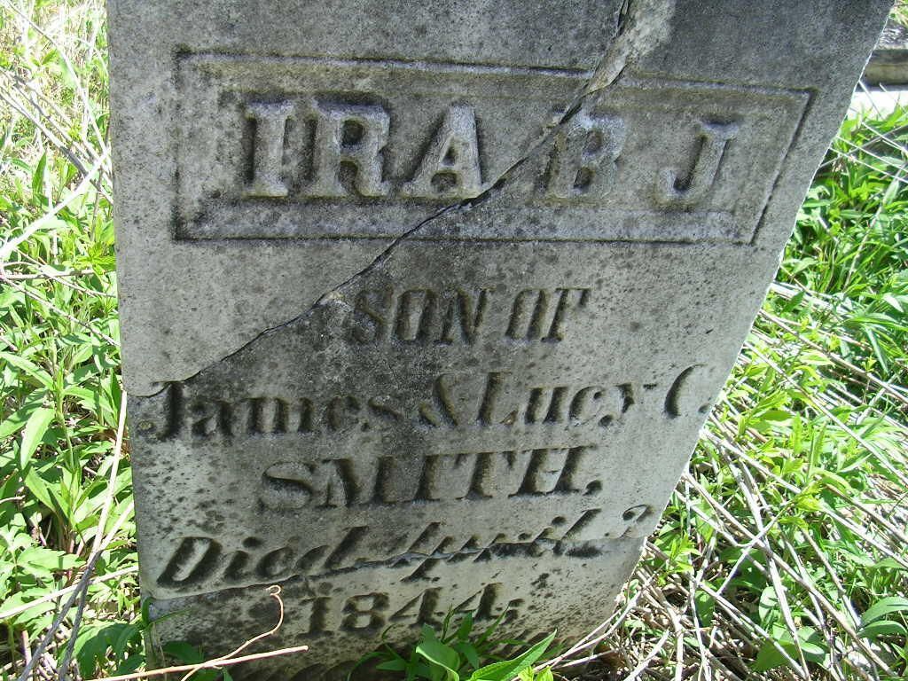 IRA B.J. Son of James & Lucy C. SMITH. Died April 3 1844 Aged 22 yrs
