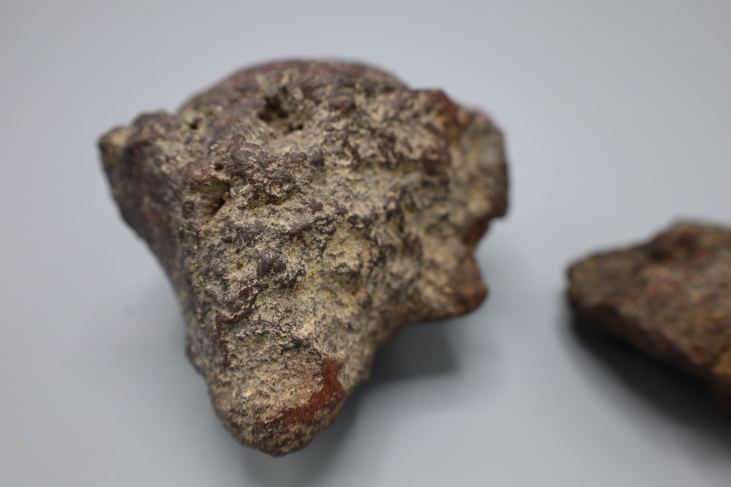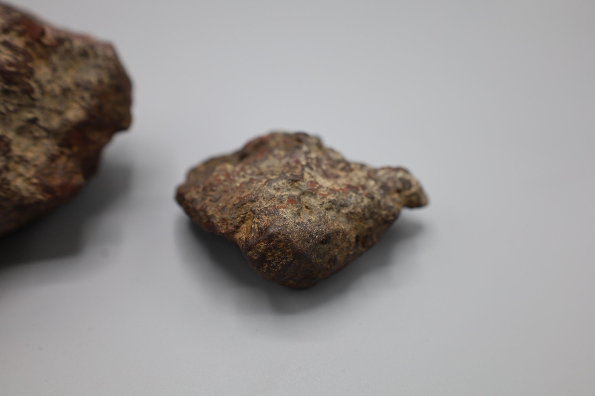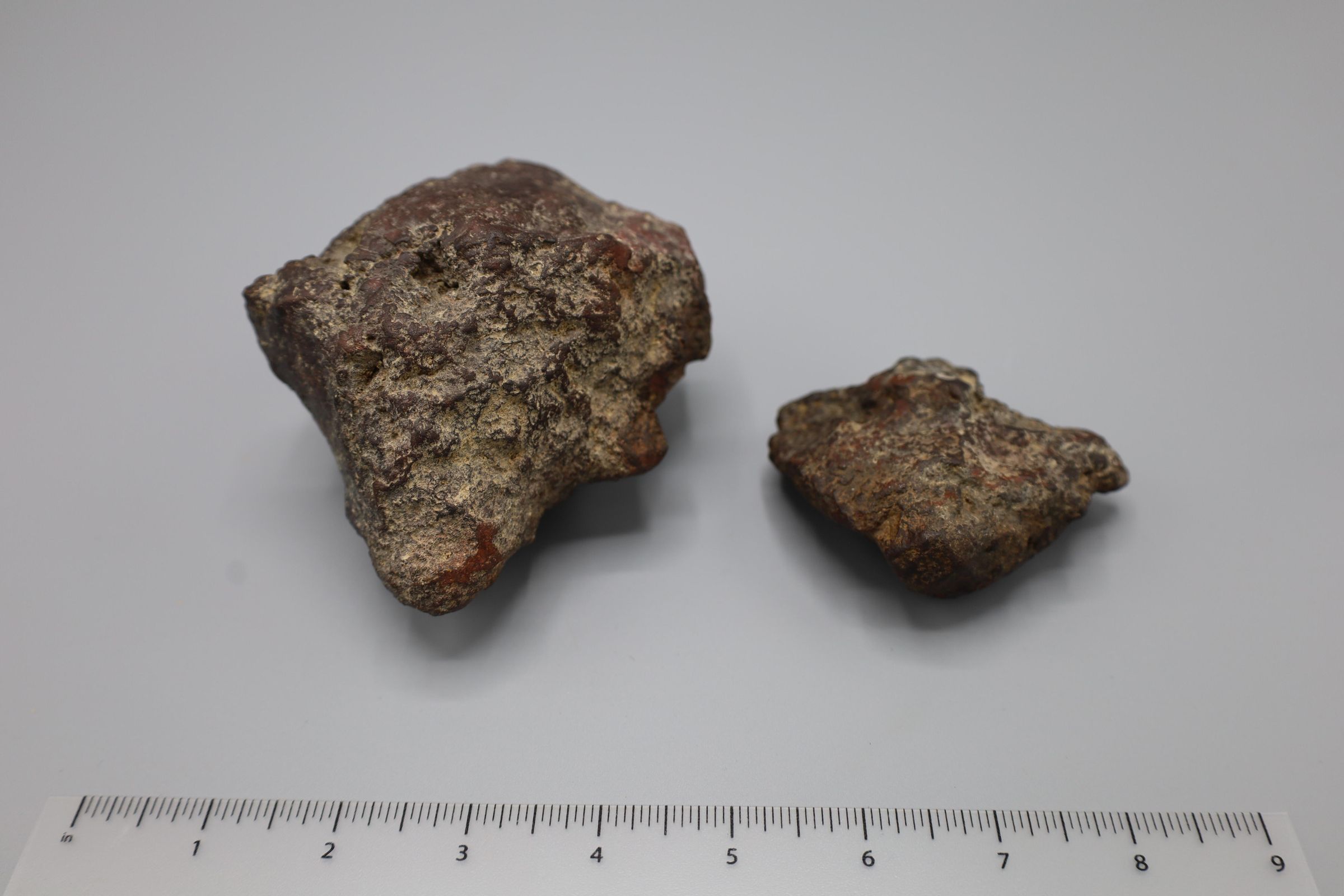 Iron Ore samples, which were found locally. Iron ore is any rock or mineral from which metallic iron can be extracted and are usually rich in iron oxides. Iron is smelted to become pig iron, which is used in the manufacture of steel.Context