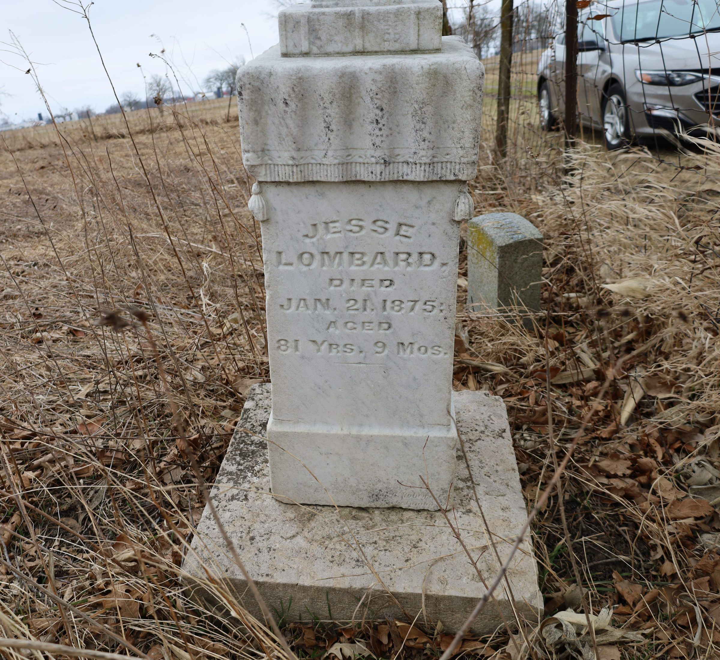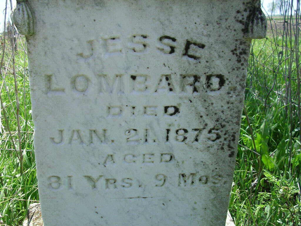 JESSE LOMBARD Died Jan 21. 1875. Aged 81 Yrs. 9 Mos.