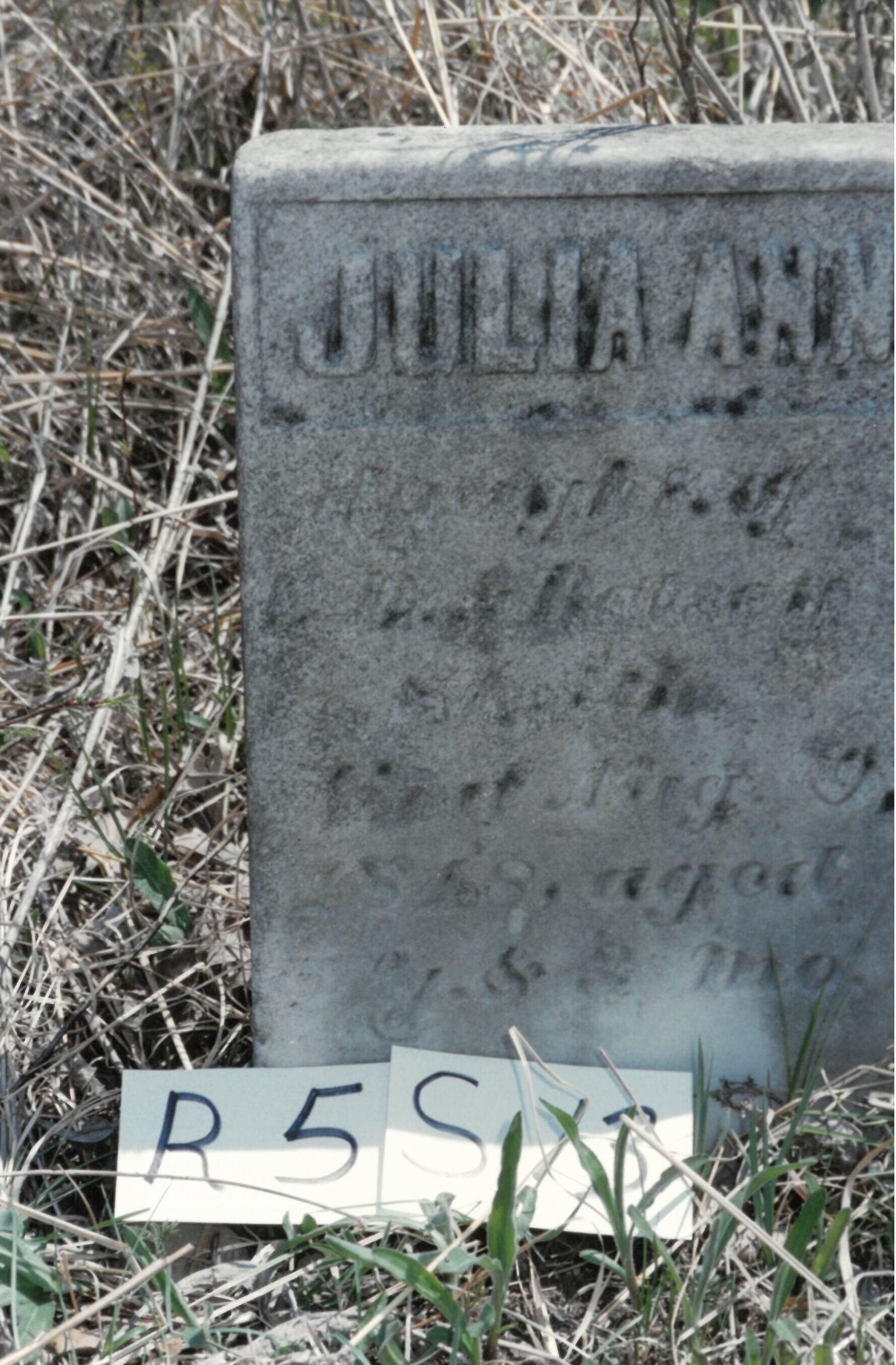 JULIA ANN Daughter of E.D. and Betsey Smith Died Aug. 9 1848, aged 5 yrs. & 8 mo.