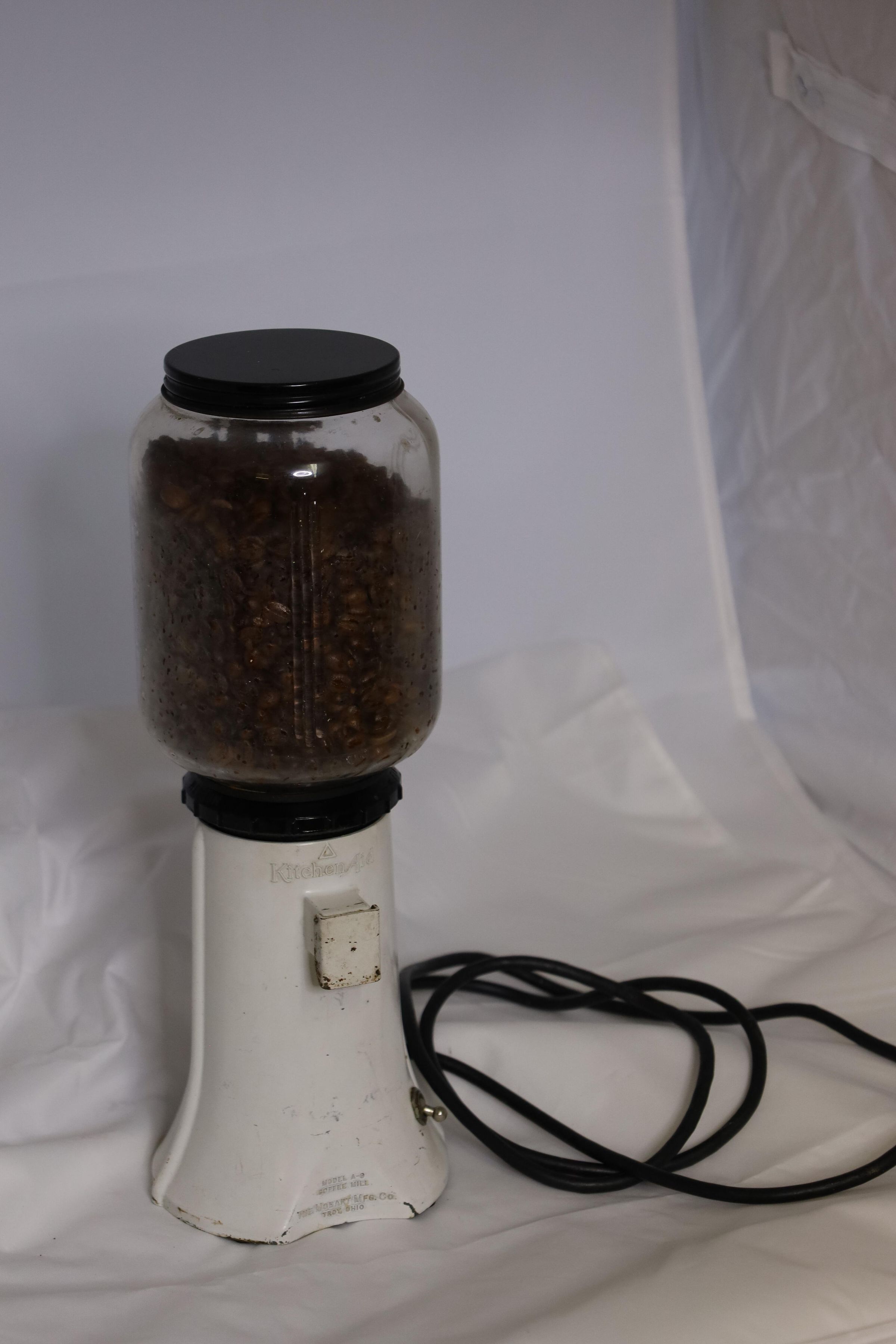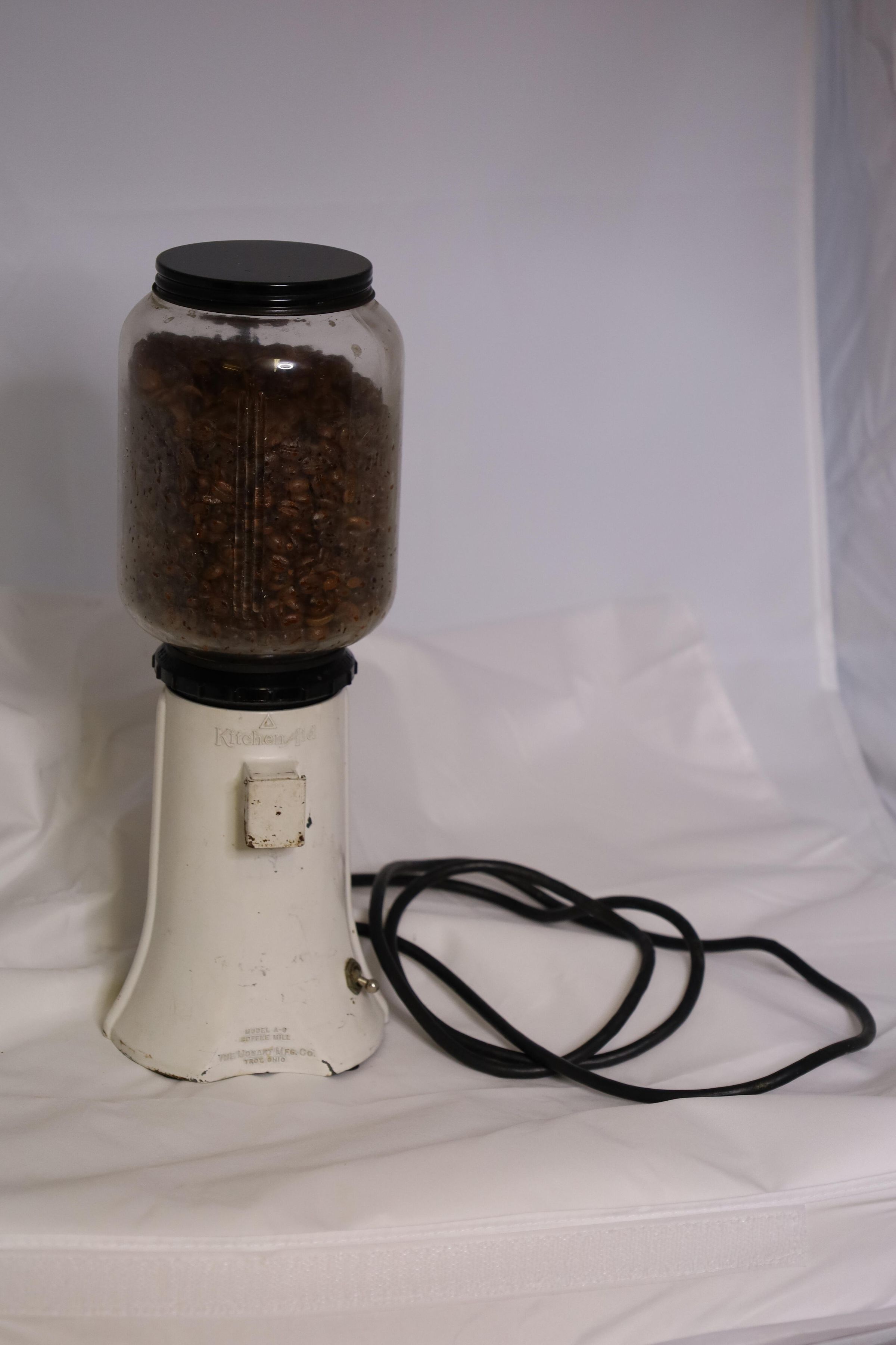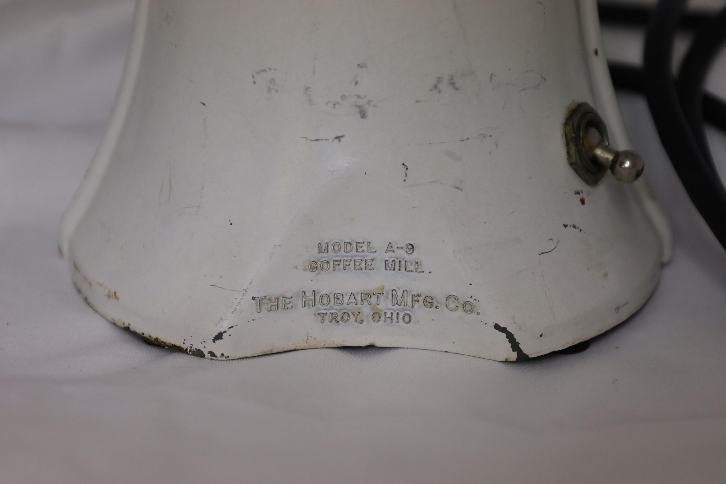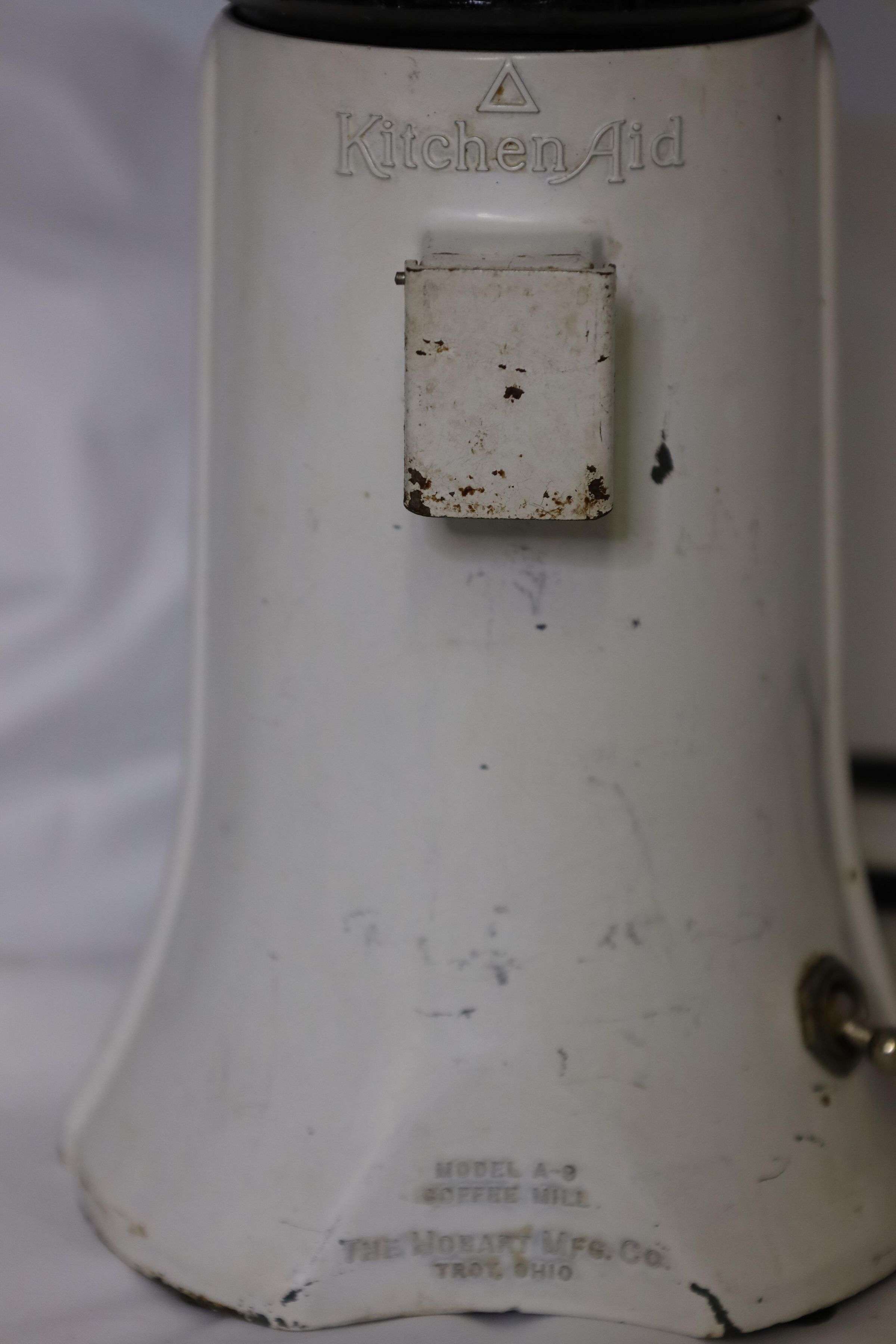 Discontinued in 1947, Hobart Manufacturing Company manufactured the KitchenAid Model A-9 coffee mill in Troy, Ohio. KitchenAid mills were the height of the market in the 1930s and 1940s. The A-10, a similar model to this one, is considered the first home coffee mill on the market.Location