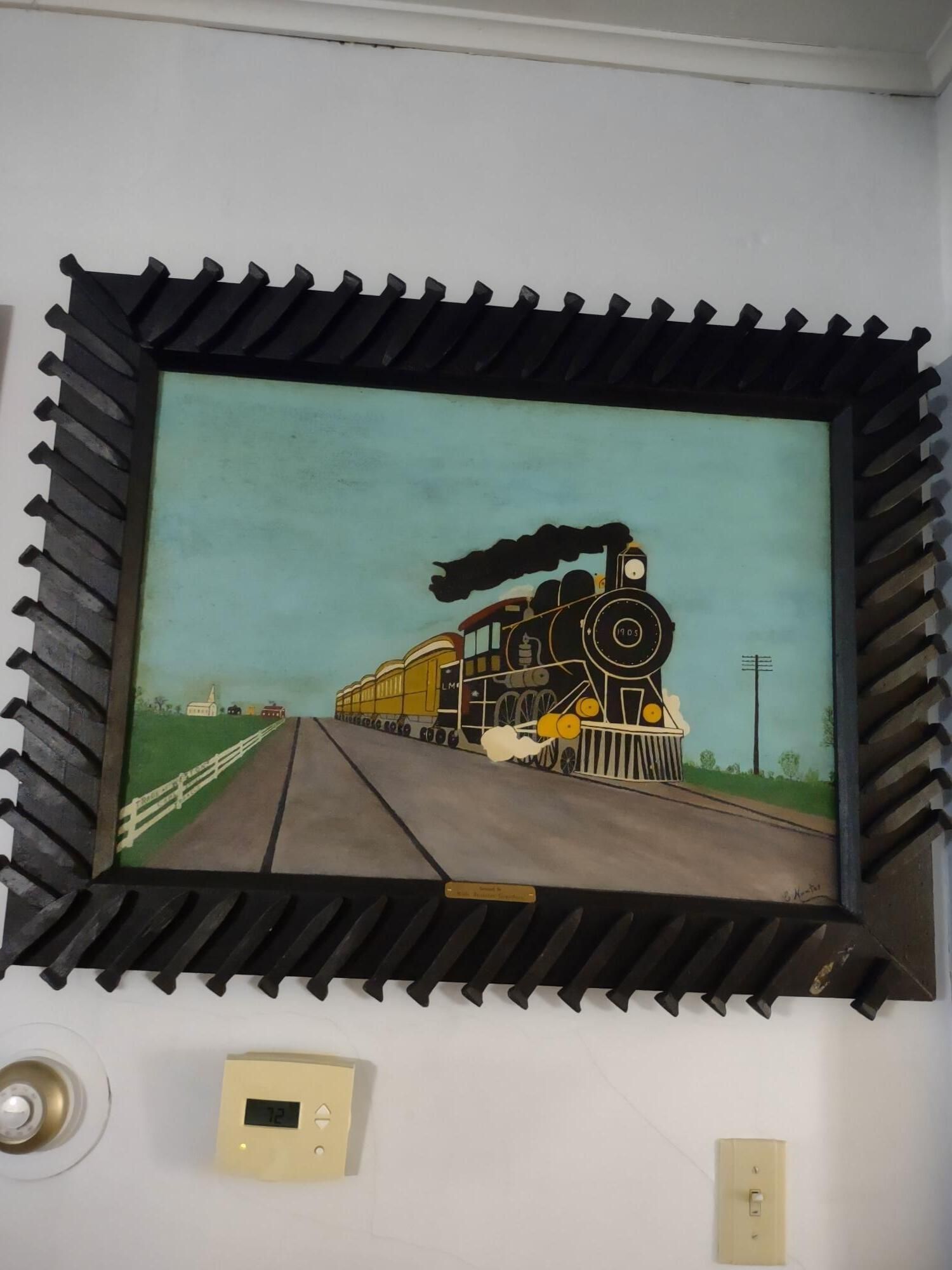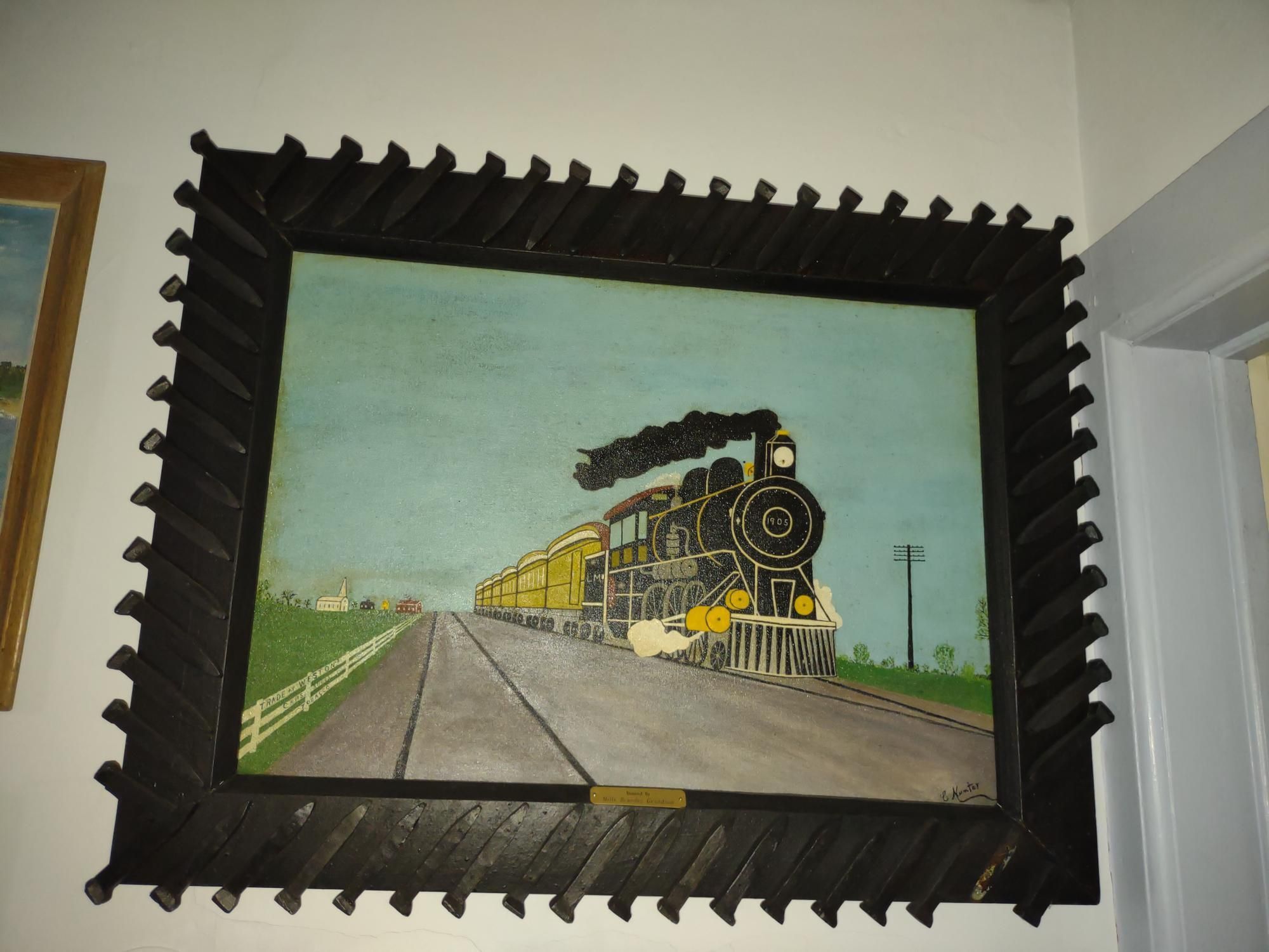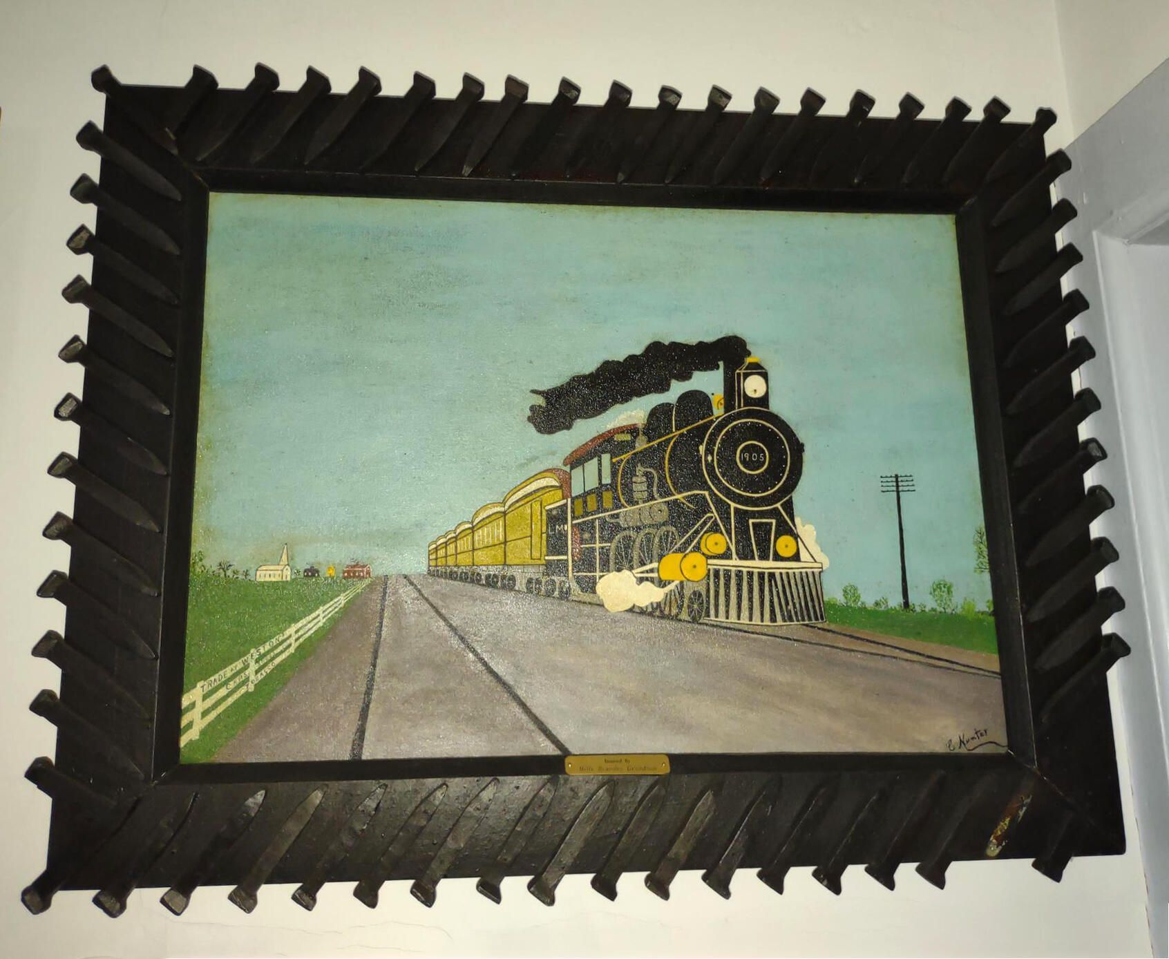 This is a painting of the Lakeside and Marblehead railroad train by Charles Hunter. It was completed circa 1905. The local railroad, constructed in the 1880s, was used to transport limestone from the Marblehead quarries. It was one of the shortest railroad lines in the U.S, with only seven miles in length.