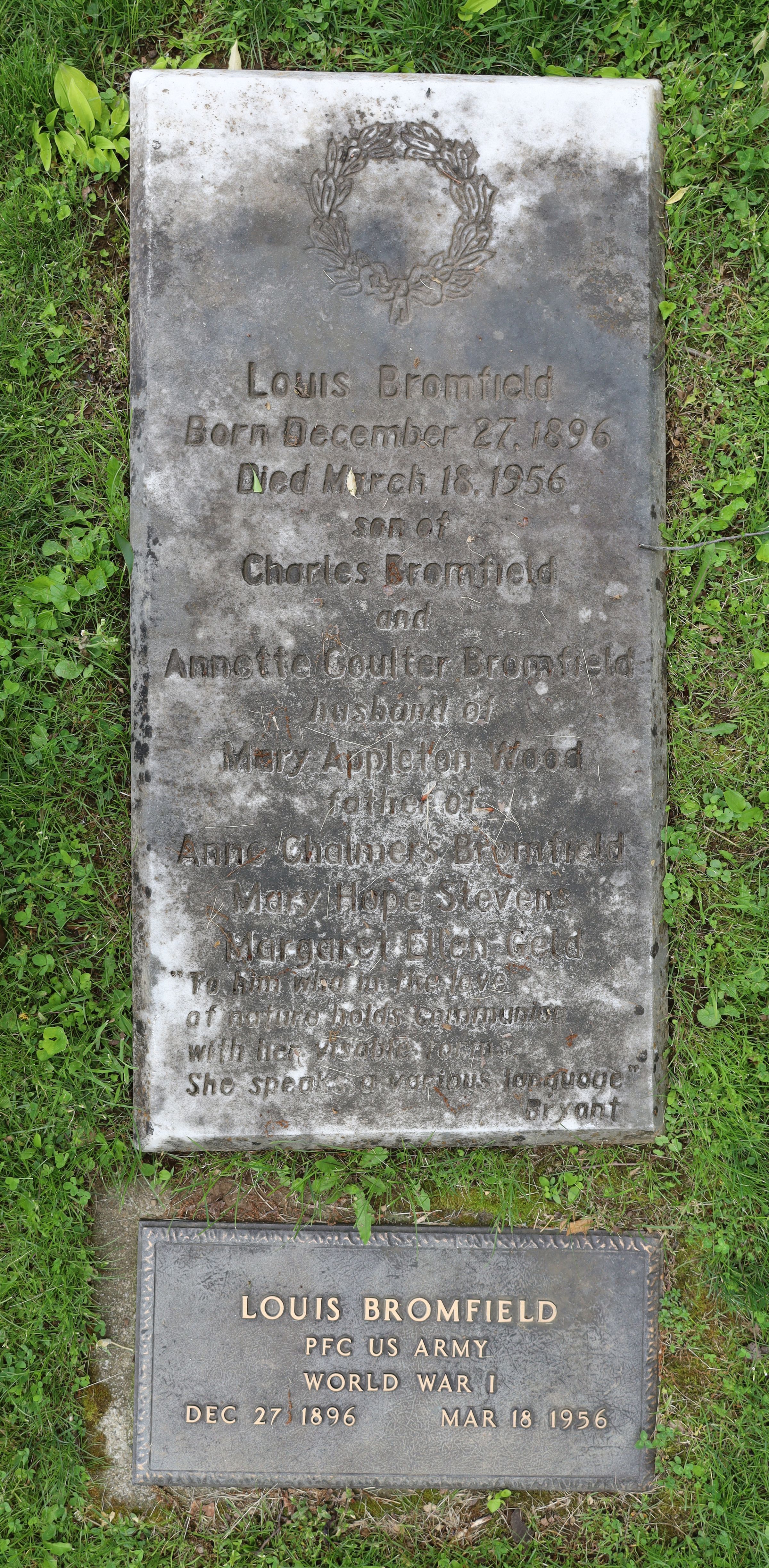 Louis Bromfield was born in Mansfield, Ohio on December 27th, 1896. Louis was studying scientific agriculture at Cornell University when he returned home to help his father Charles run the family farm. Eventually, they lost that farm, and Louis returned to college with journalism as his new major. Louis left college again at the start of World War I and spent much of his time driving an ambulance in France.