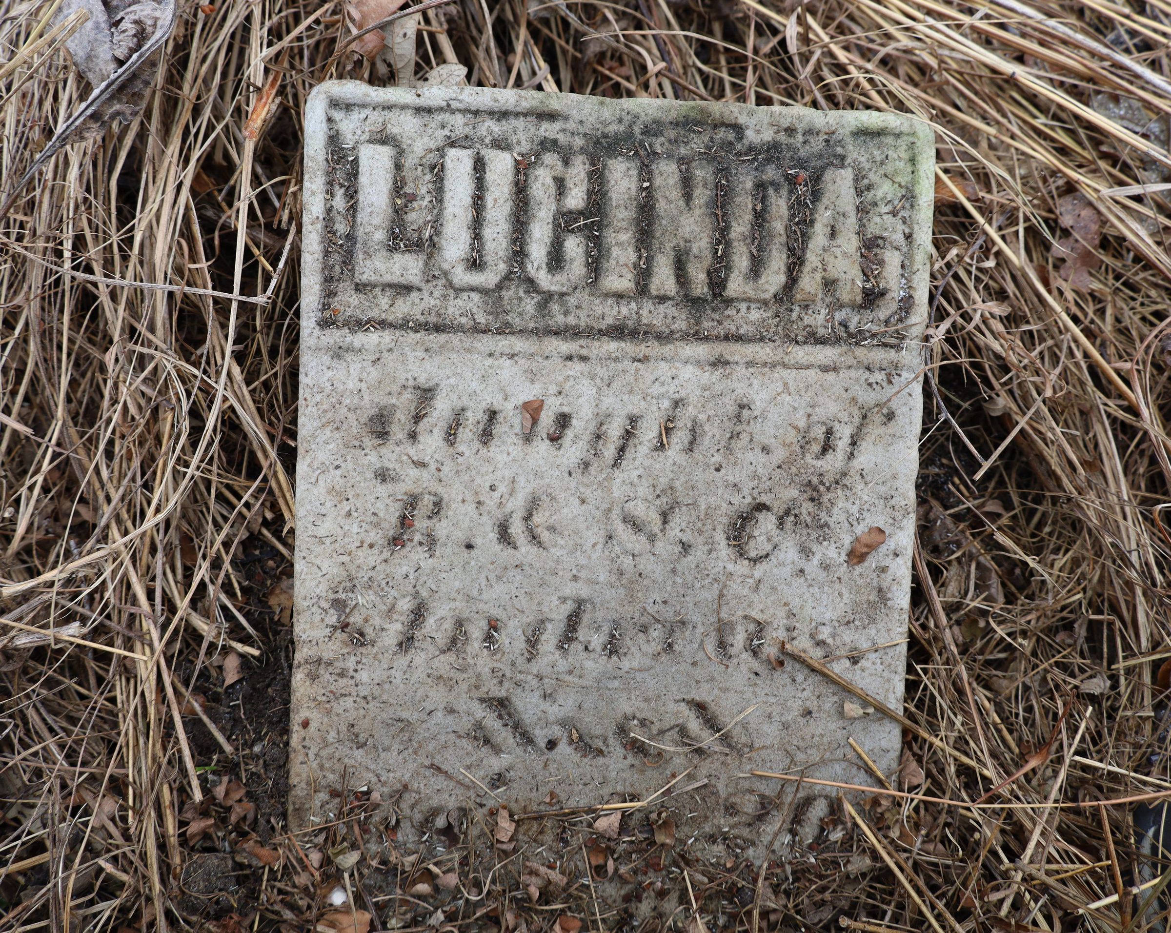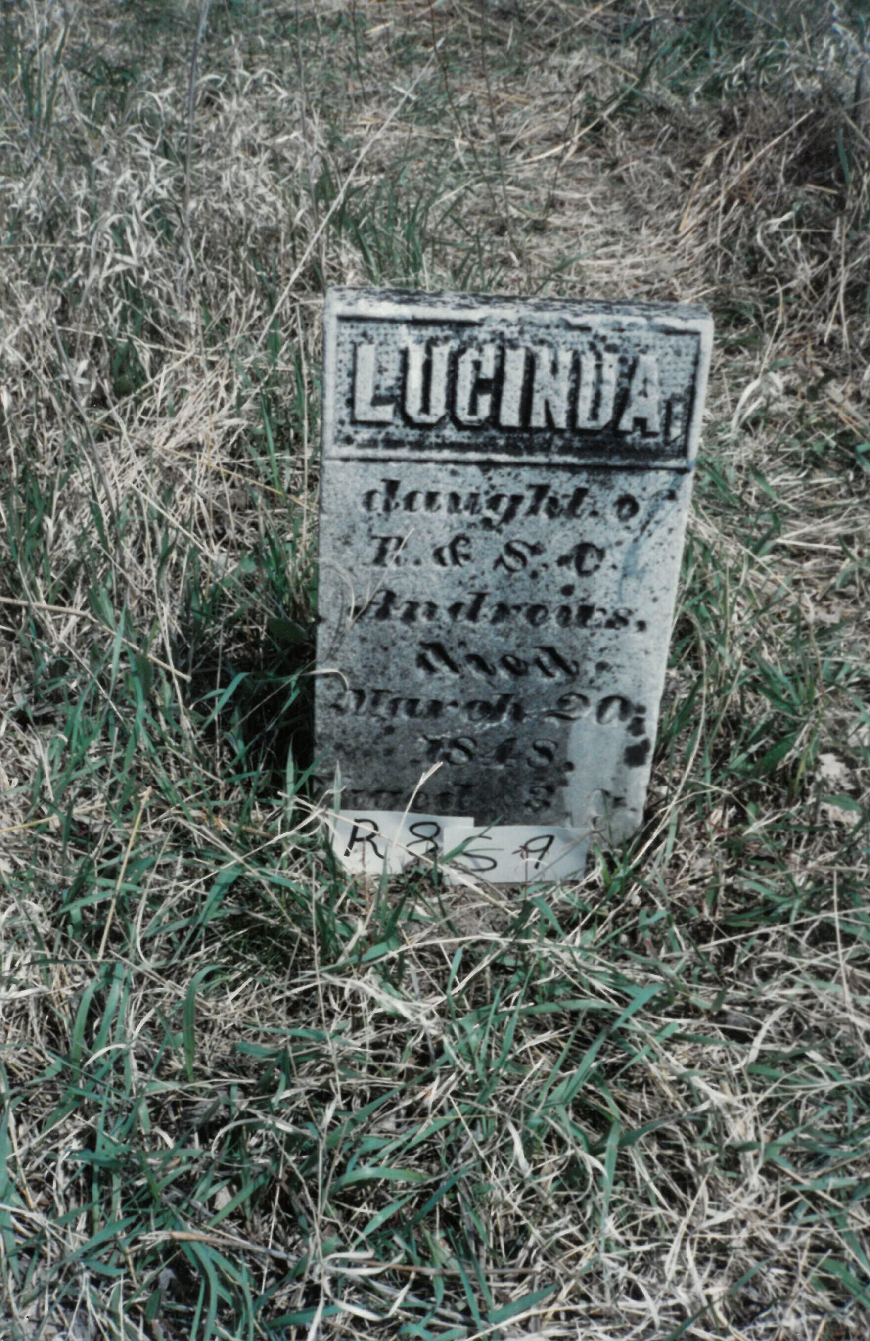 LUCINDA daughter of R. & S.O. Andrews died March 20, 1848 Aged 3 y. 2 d.