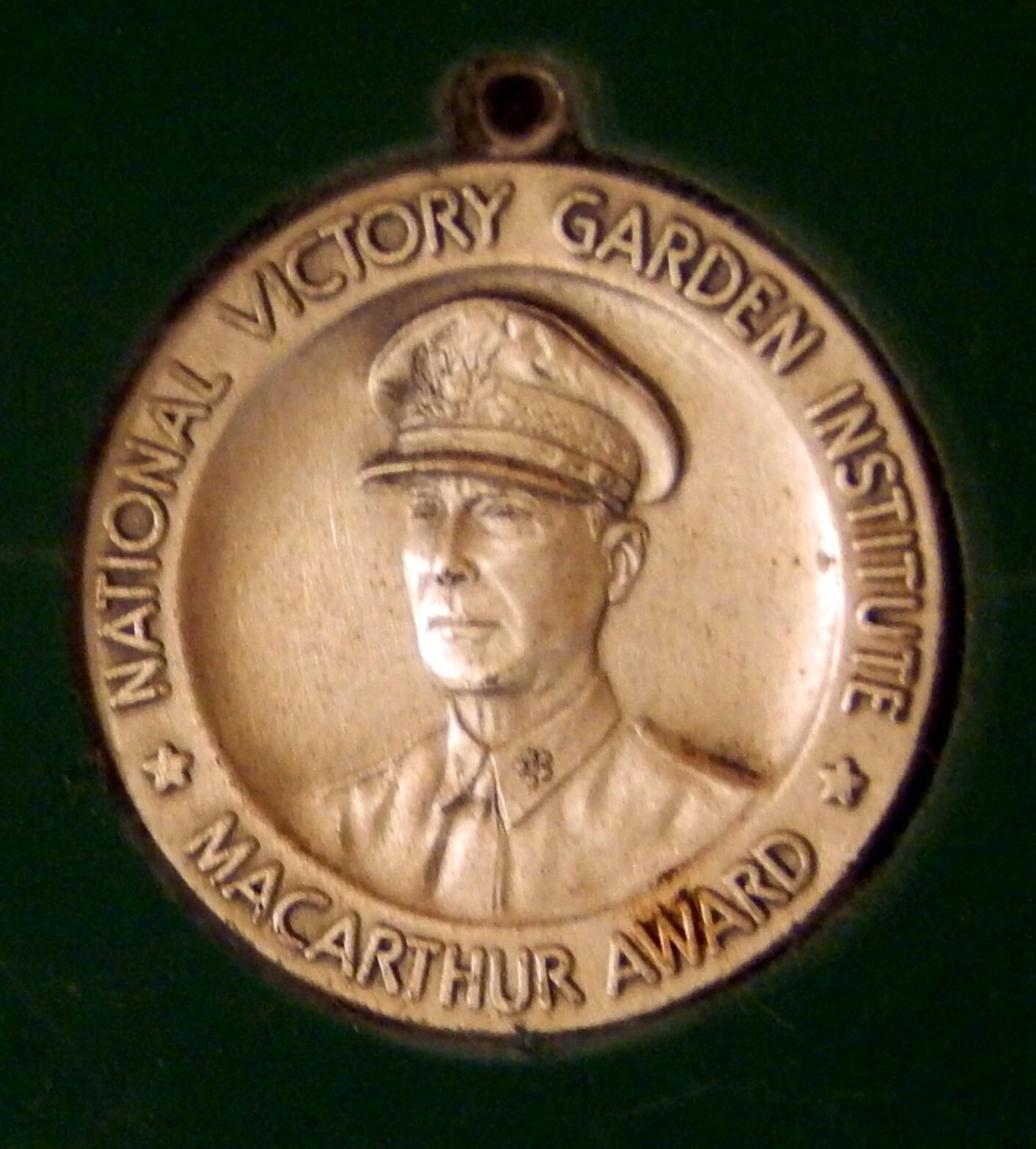 During World War II, the War Food Administration resurrected the idea of Victory Gardens. Planting such gardens by civilians would increase the availability of vegetables and free resources for the war effort. The National Victory Garden Institute was founded in 1943 to aid in promoting the need for Victory Gardens. In 1945, the Institute presented the MacArthur Award to individuals and groups for “Outstanding Achievement in the War Food Program.”