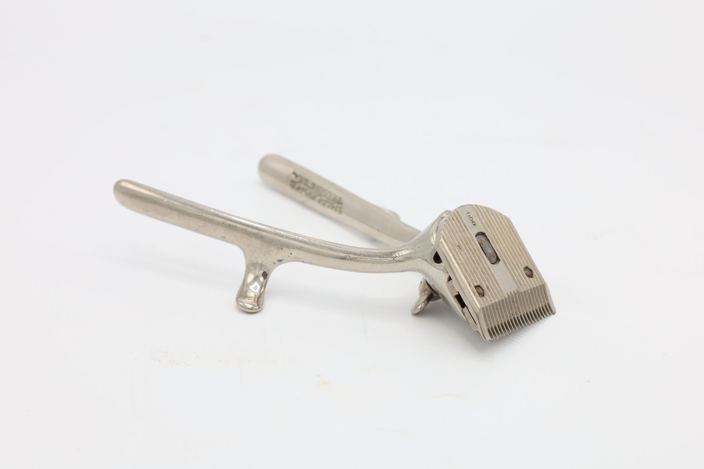 These silver manual hair clippers were manufactured in the 19th century by the Shapleigh Co in St. Louis.