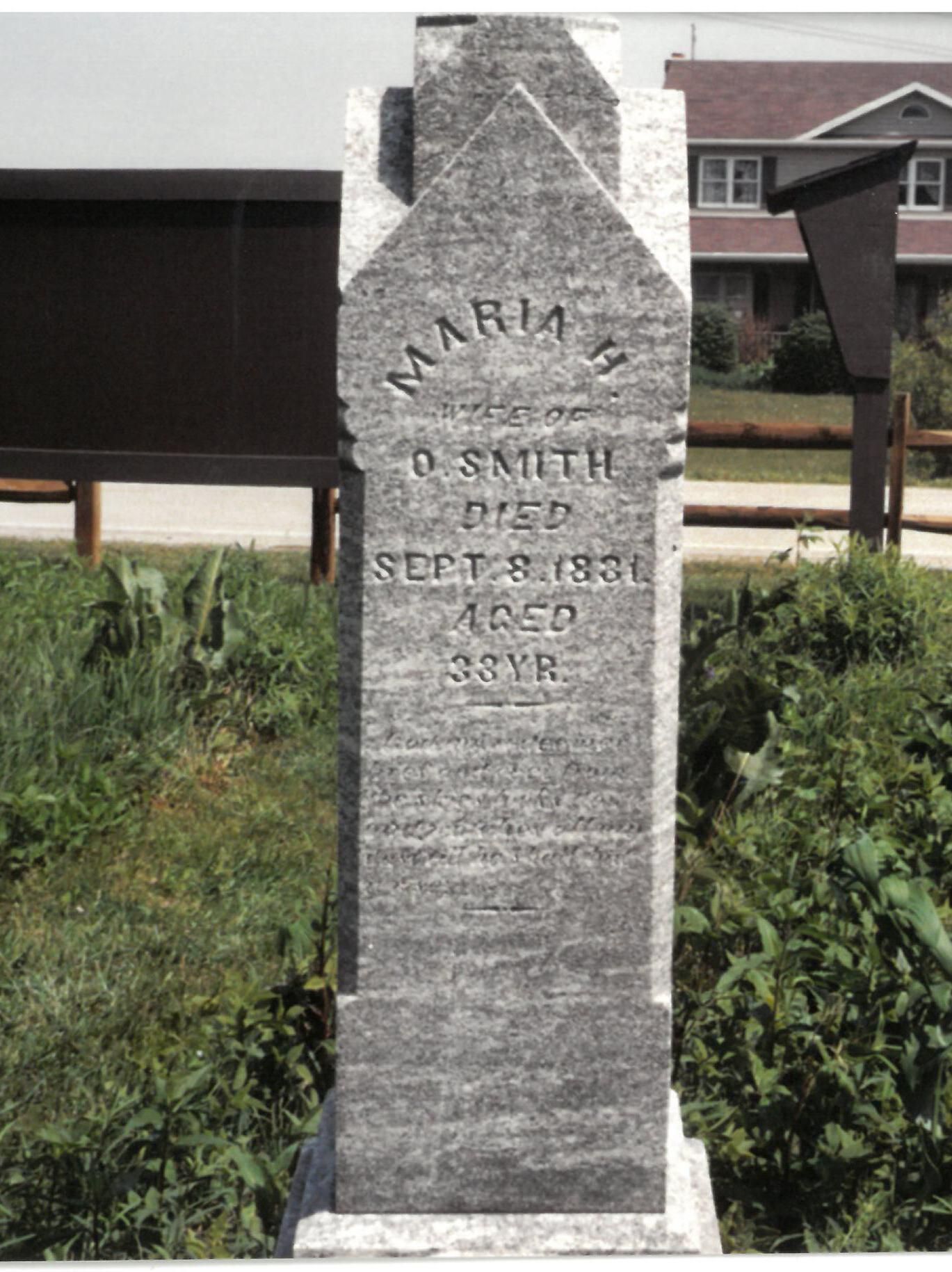 MARIA H. Wife Of O. Smith Died Sept 8. 1831 Aged 33 YR