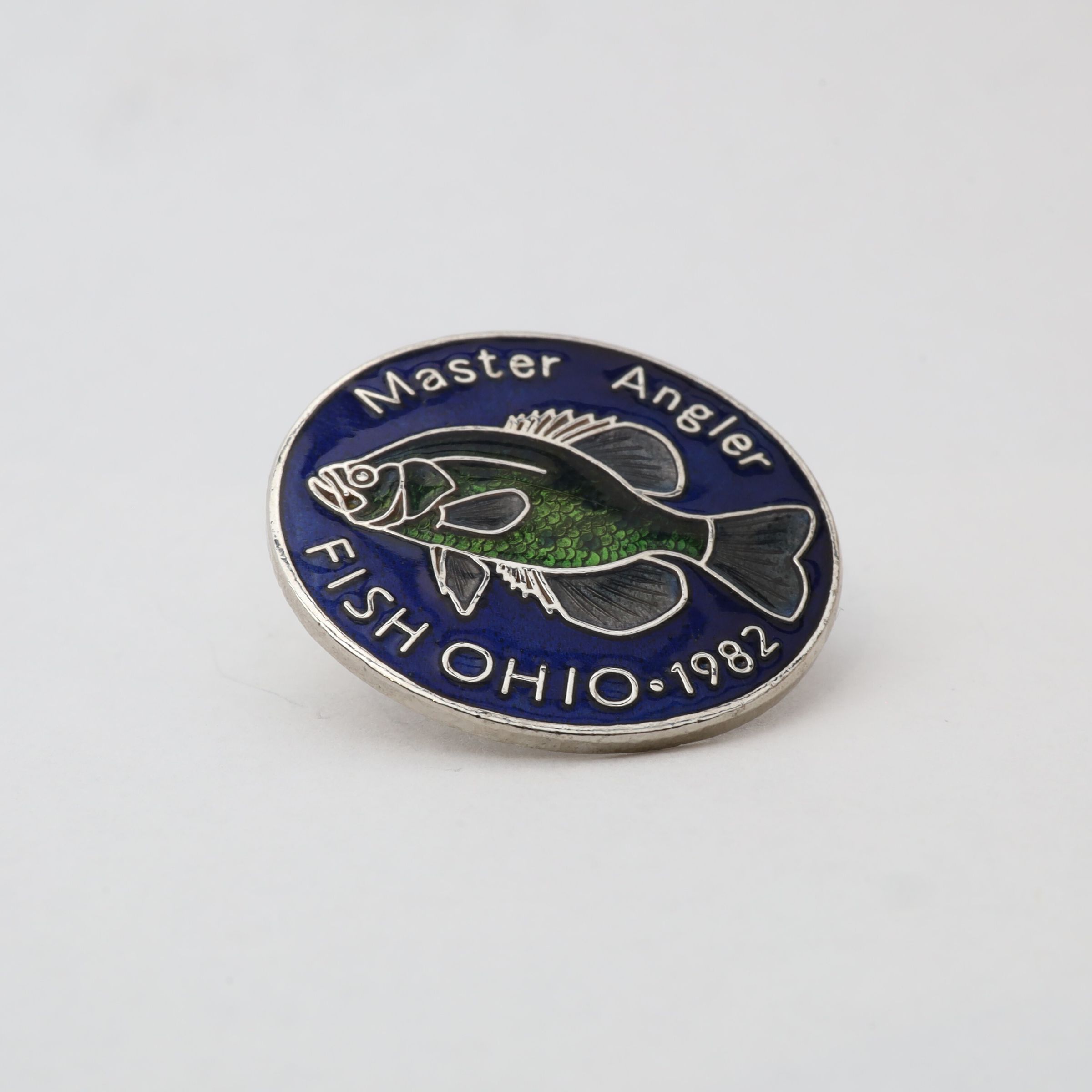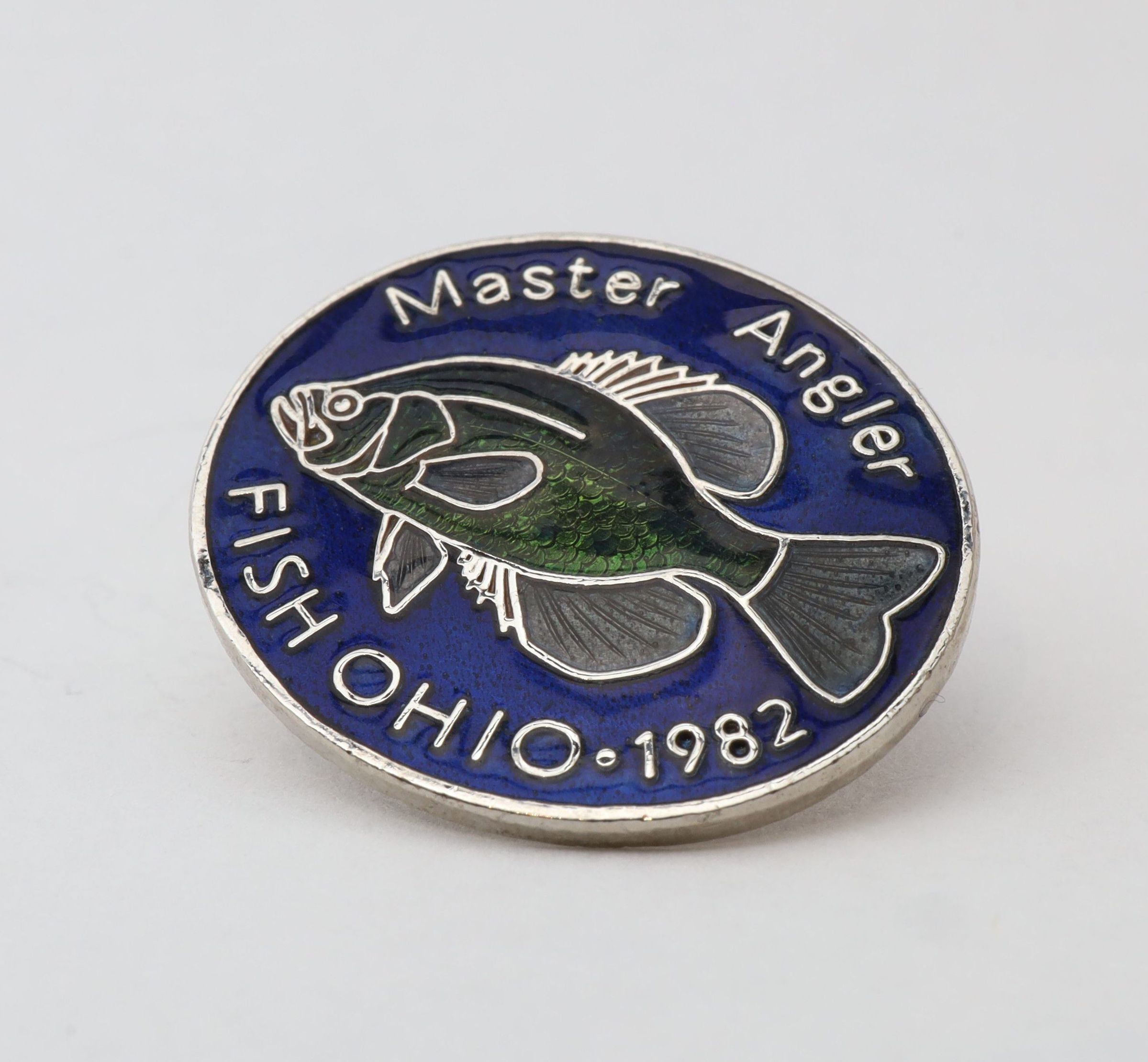 This crappie is slightly different than the one on the 1982 Fish Ohio pin. Master Angler has been stamped on top of the pin. Later Master Angler pins will be gold.Use