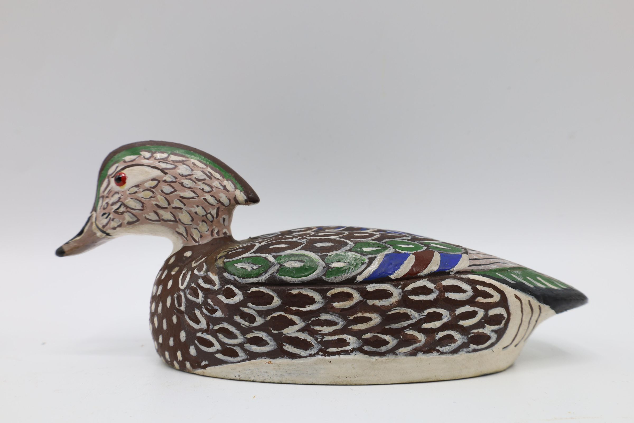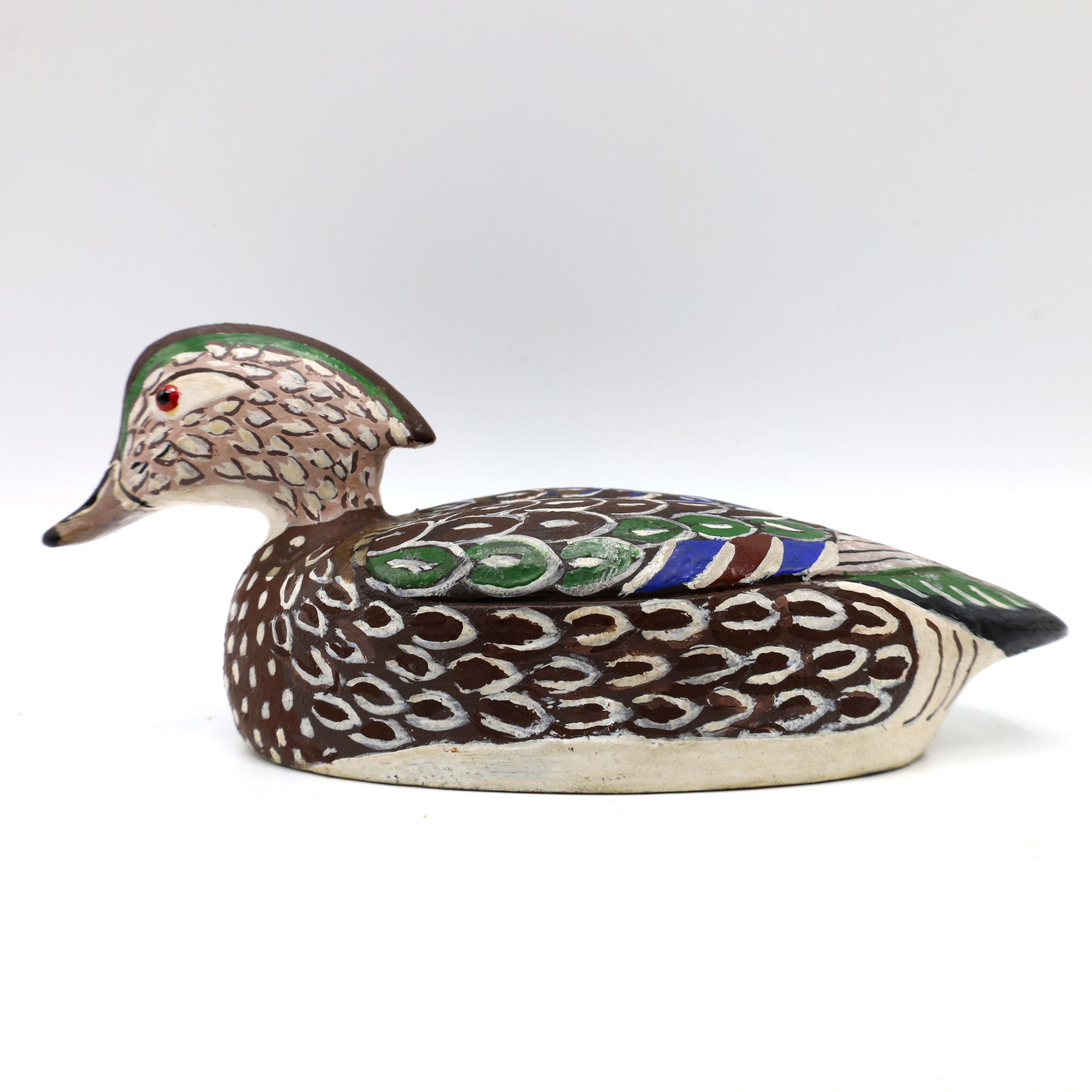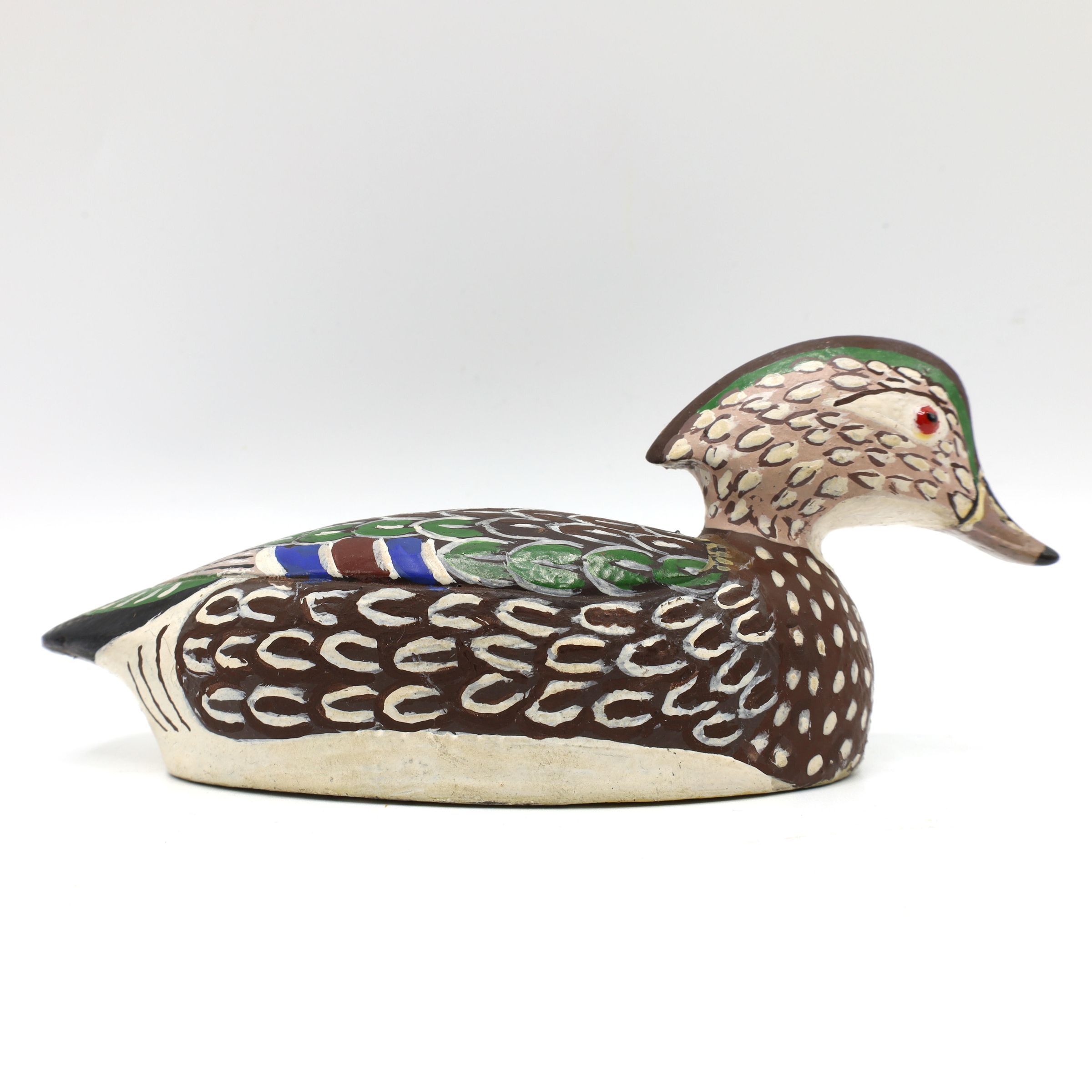 Jack Rider carved and handpainted this detailed Wood Duck hen. The details of the recreation of the feathers and coloring show the extent of Rider's well-deserved skills as a famous decoy carver.Context