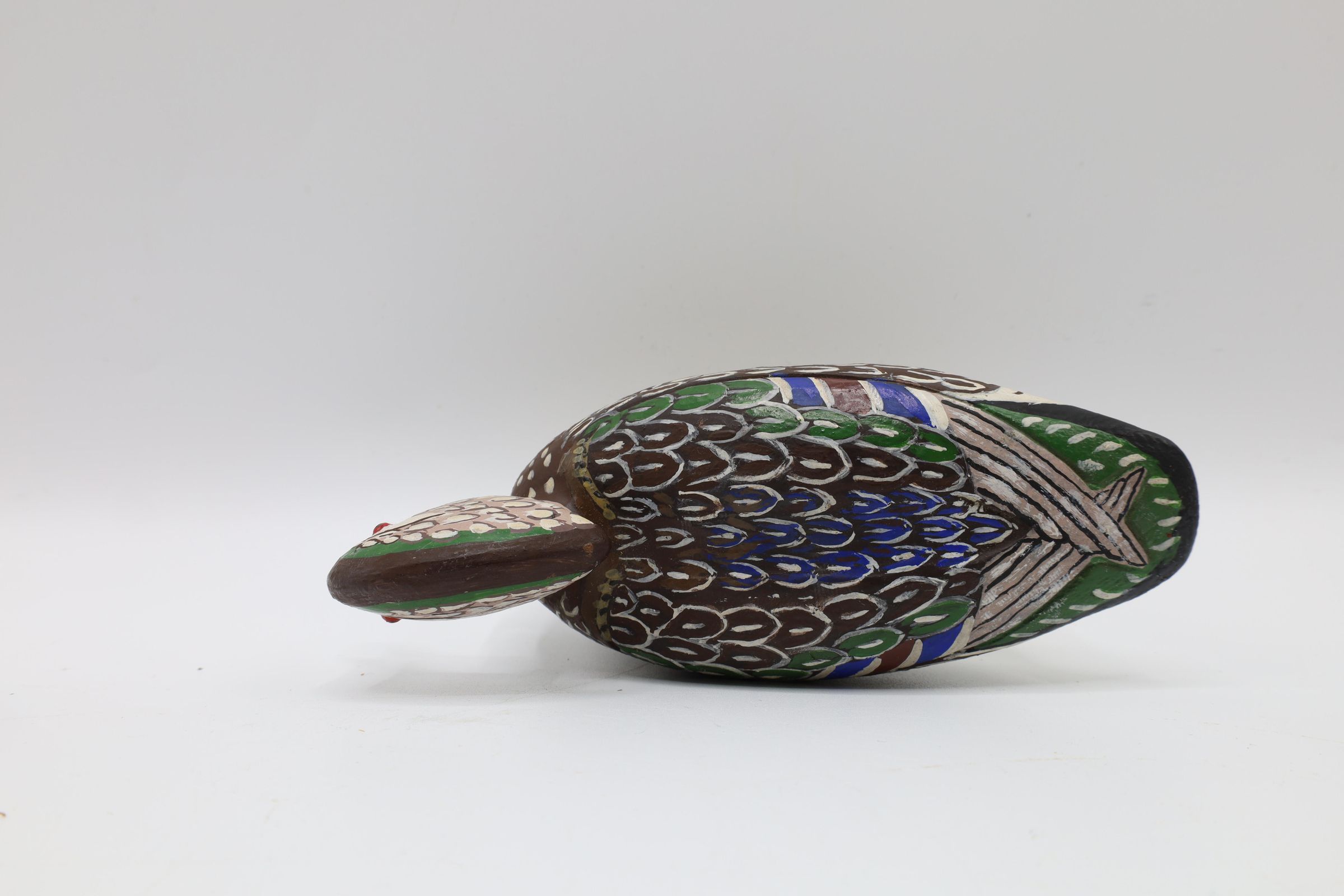 Many decoy carvers also carved miniature waterfowl. These miniatures use the same skill sets as the larger decoys but are purely artistic as they serve no hunting purposes. They are a common addition to the decoy carvers’ range. Because they are ornamental, carvers sometimes use much more elaborate detail in the waterfowl painting. In addition, their smaller size makes them especially attractive to collectors.