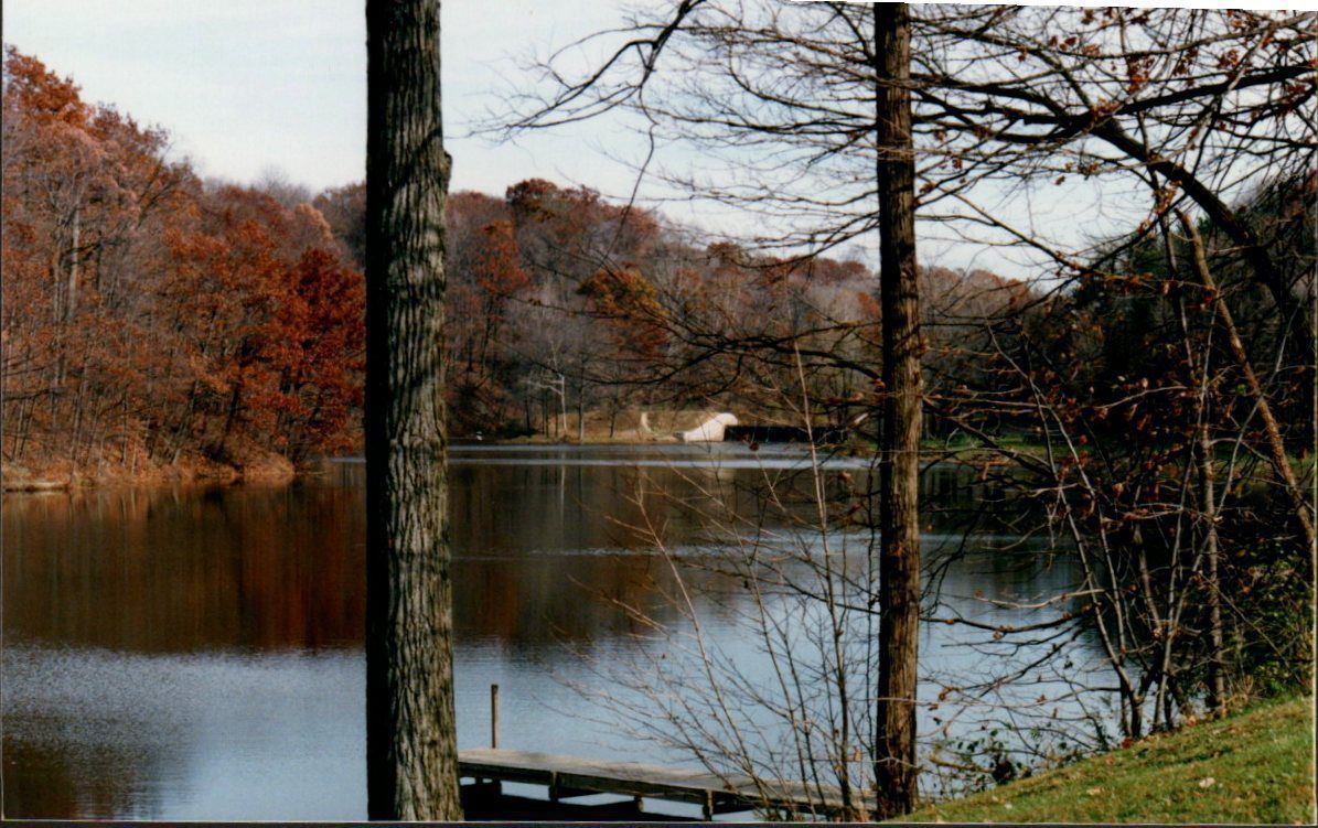 The trees surrounding Mount Gilead Lake struggle to hang onto their leaves as late autumn weather descends over Mt. Gilead State Park.